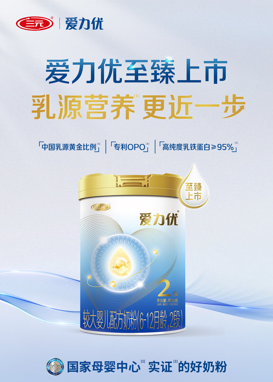 三元 A2奶源 爱力优至臻较大婴儿配方奶粉2段(6-12个月)800g/罐