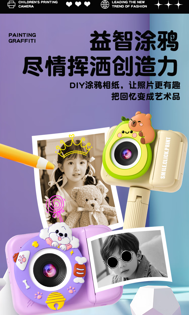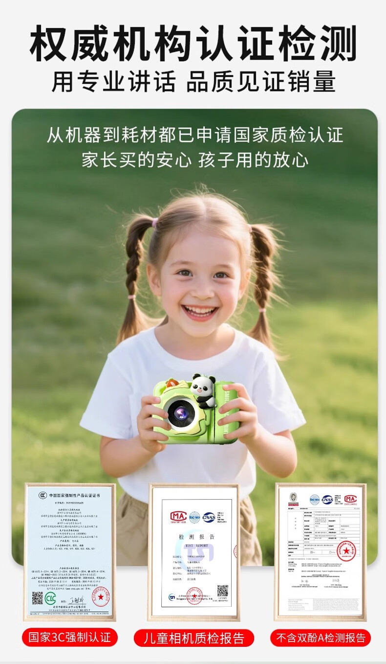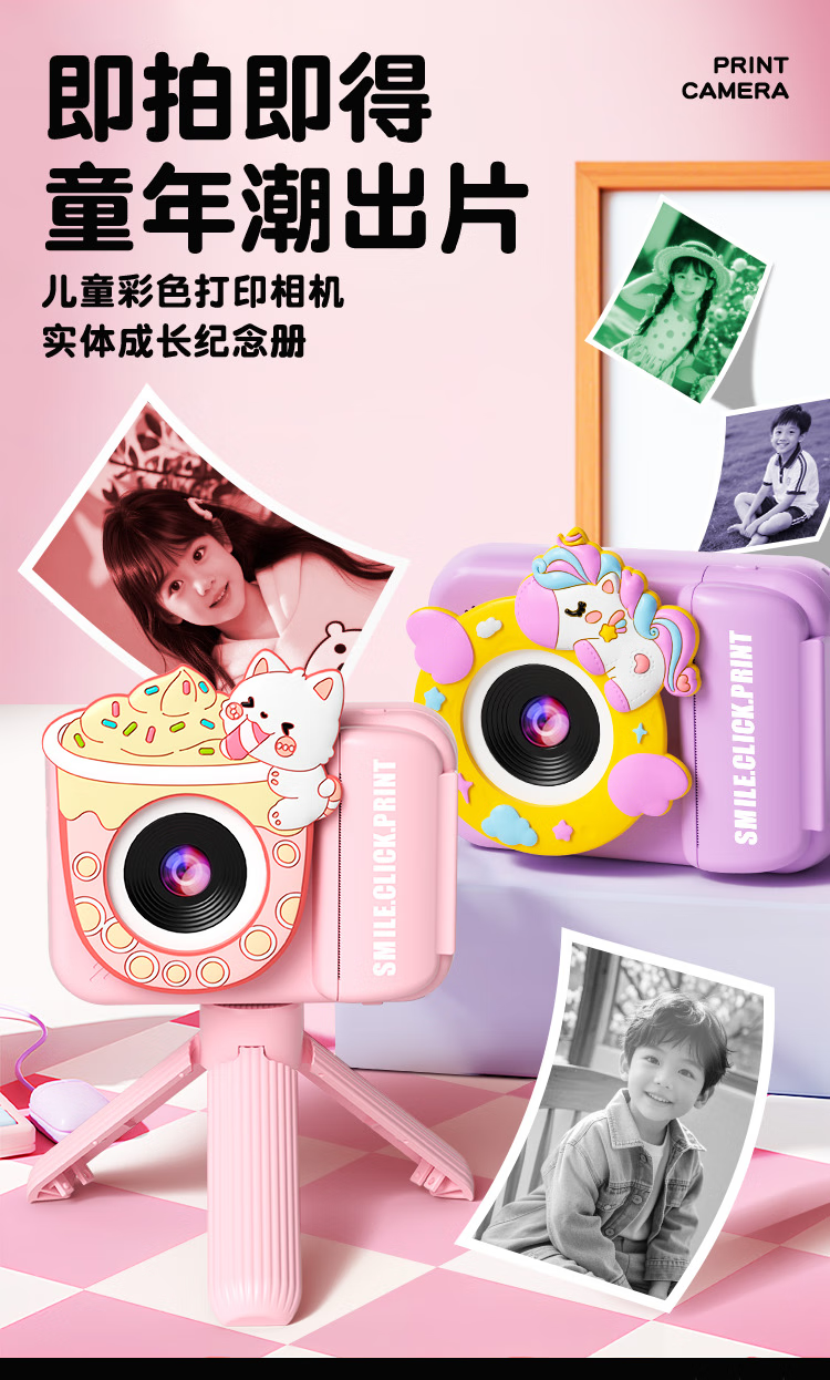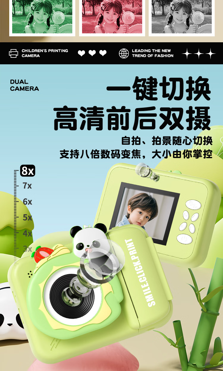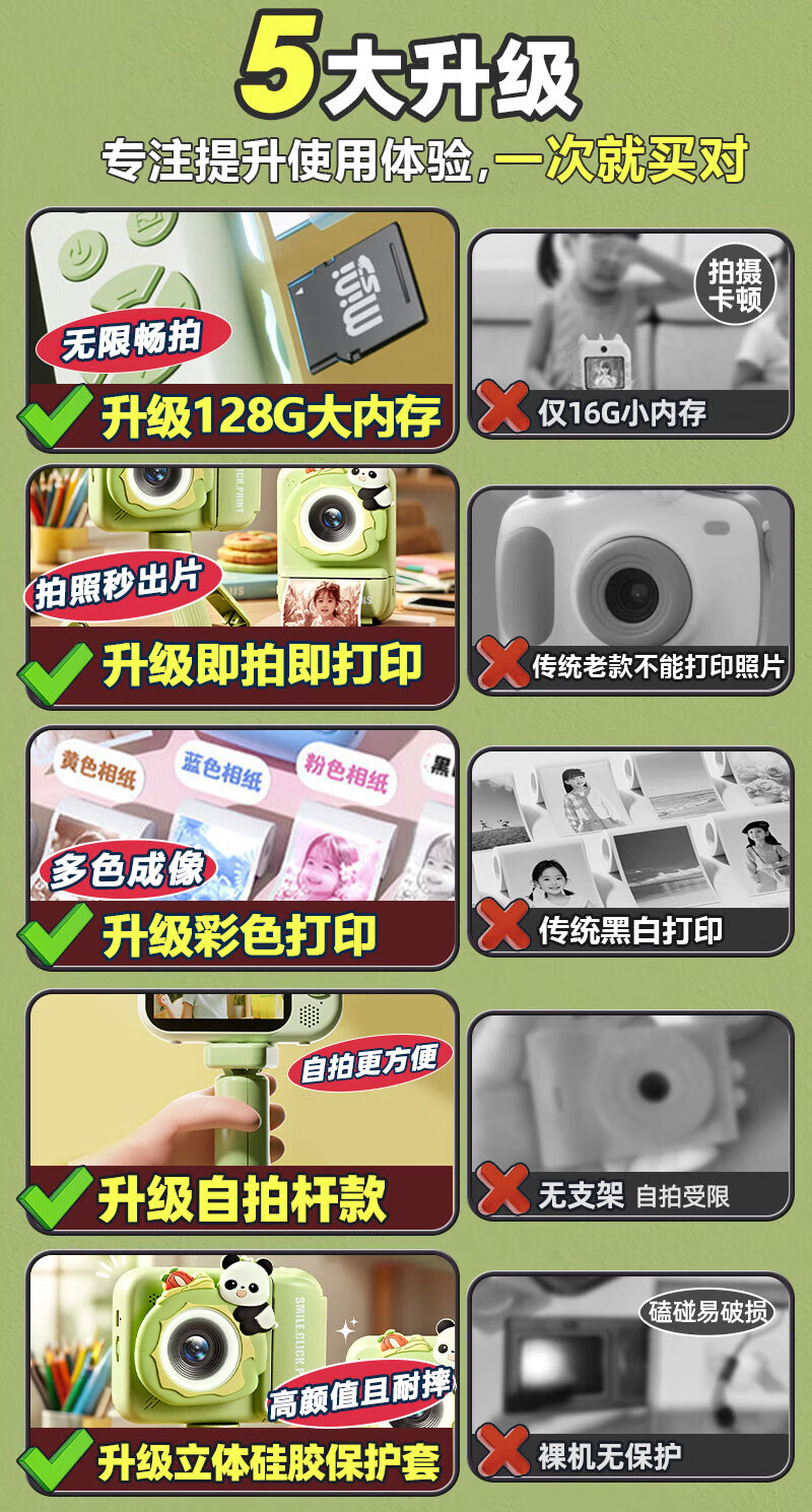 积虎拍立得儿童照相机3-6岁女孩生日礼物7-14岁彩色打印可直接出照片 大熊猫【送128G+5卷彩色相纸】 高清数码相机玩具男童女童礼物