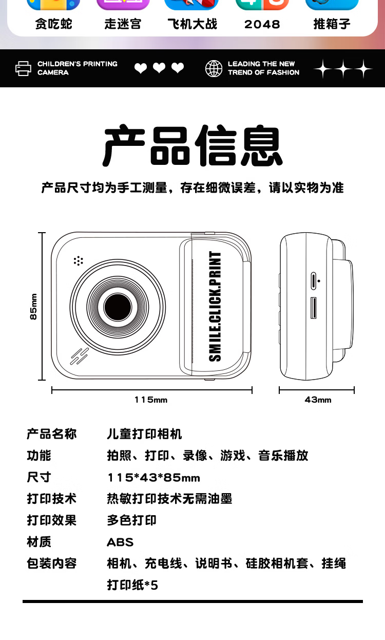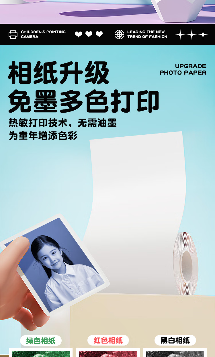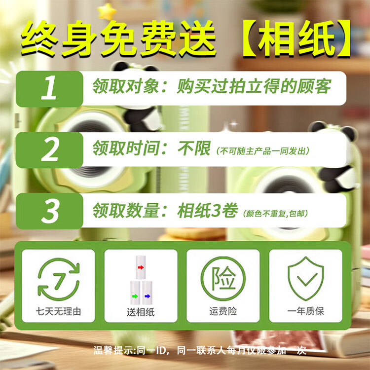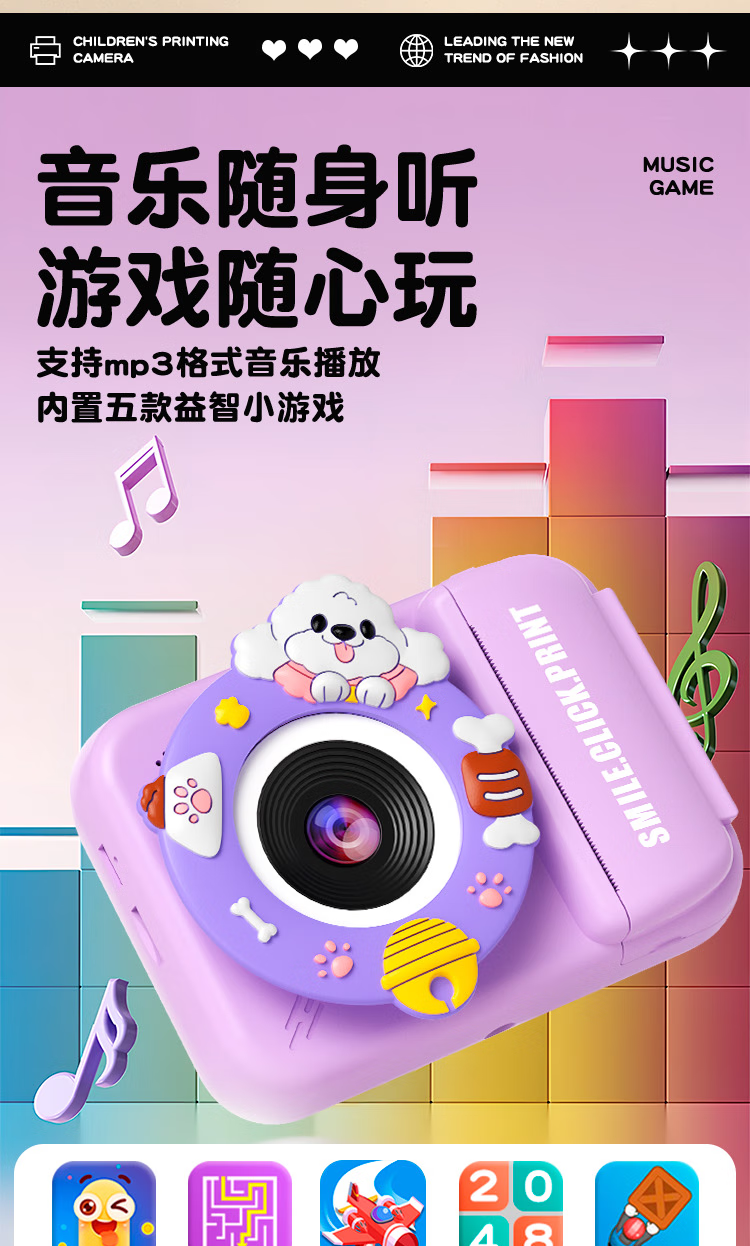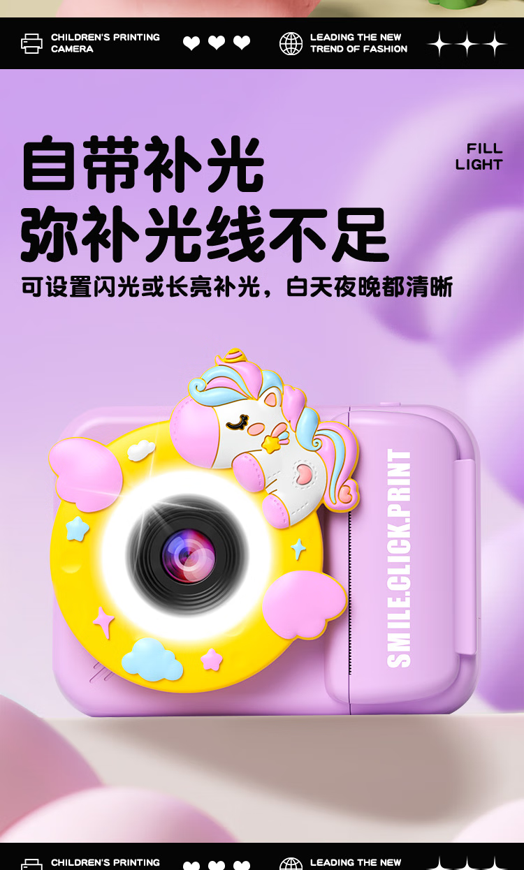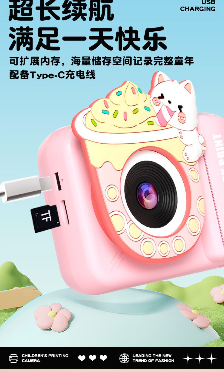 积虎拍立得儿童照相机3-6岁女孩生日礼物7-14岁彩色打印可直接出照片 大熊猫【送128G+5卷彩色相纸】 高清数码相机玩具男童女童礼物