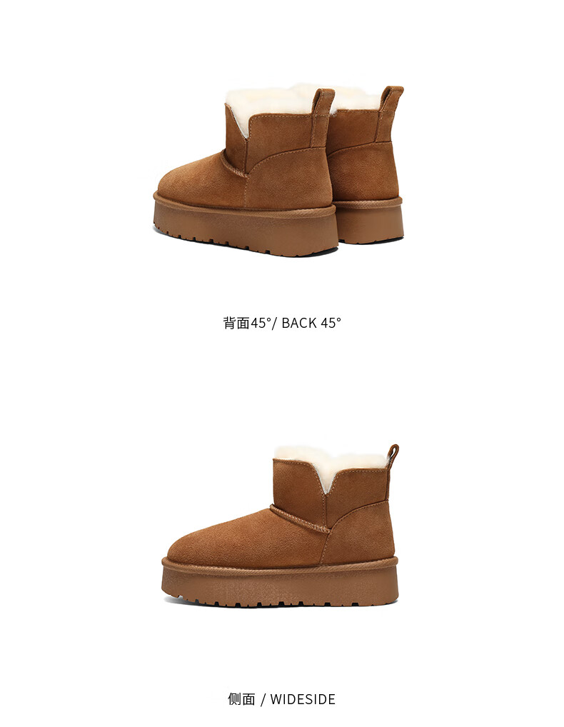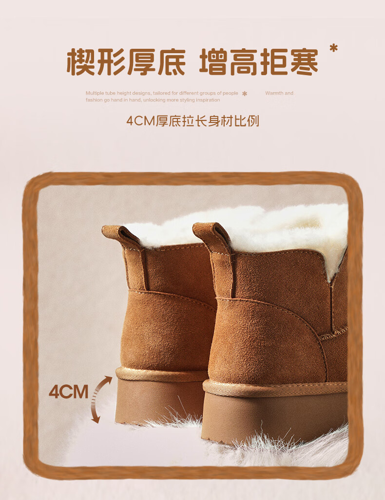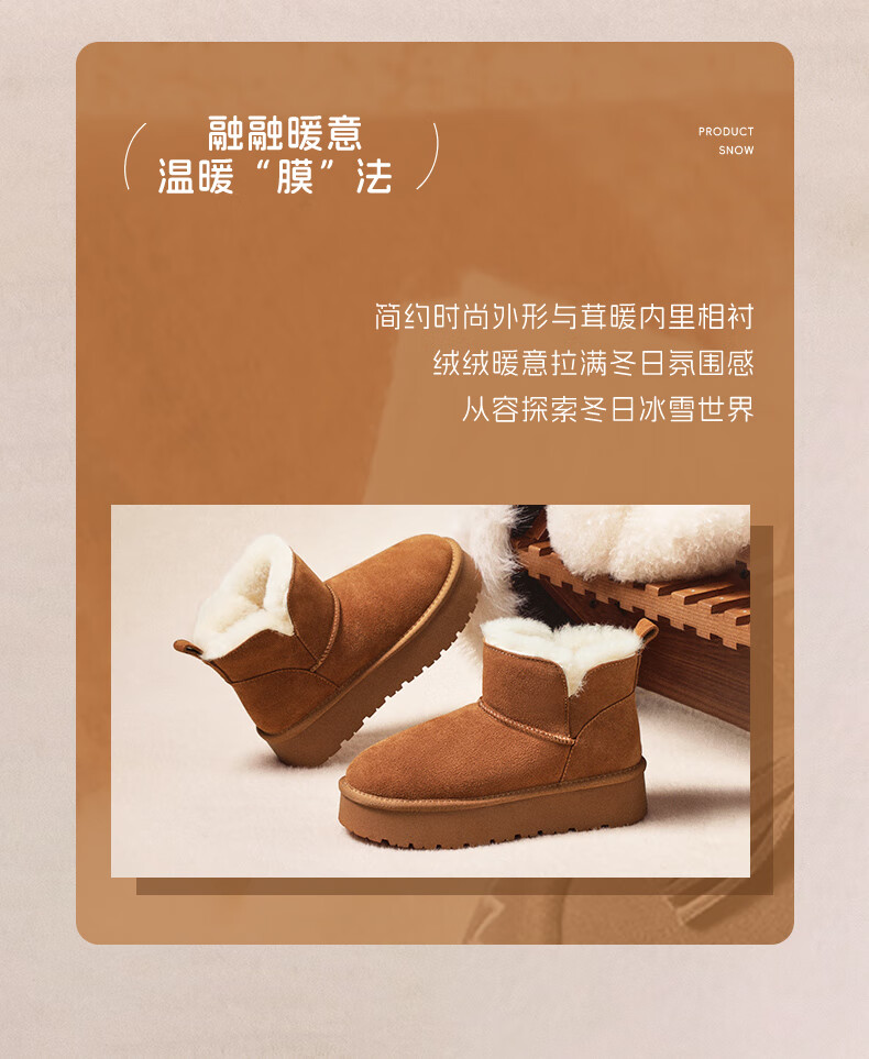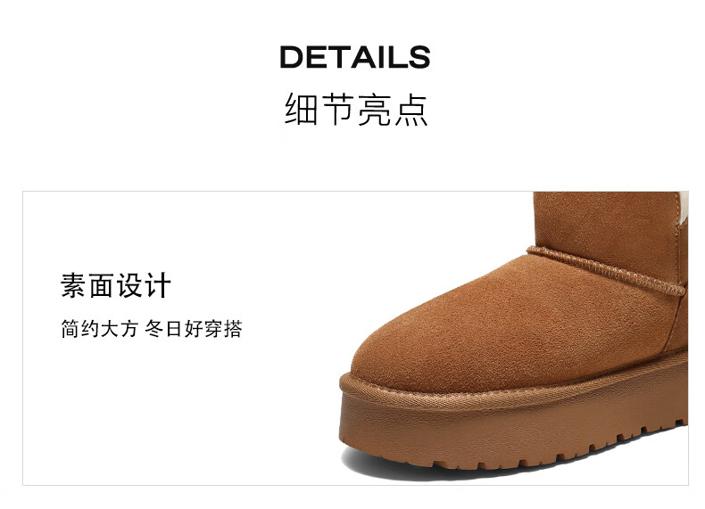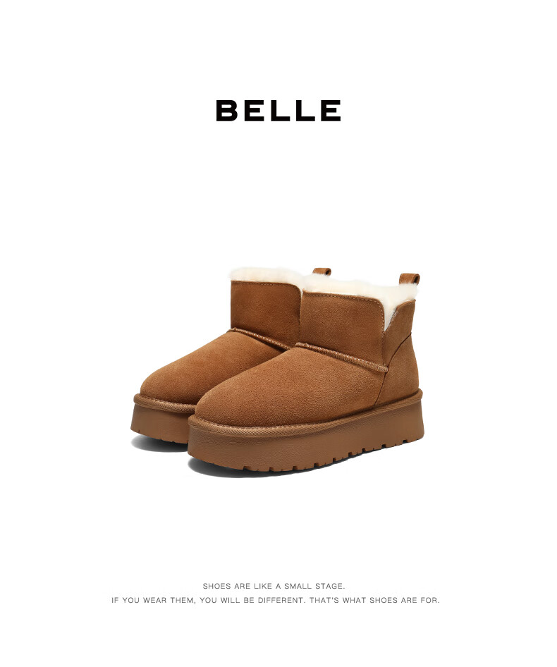 百丽慵懒百搭厚底雪地靴女靴子25冬新增高加绒短靴JD016DD5 可可栗 37