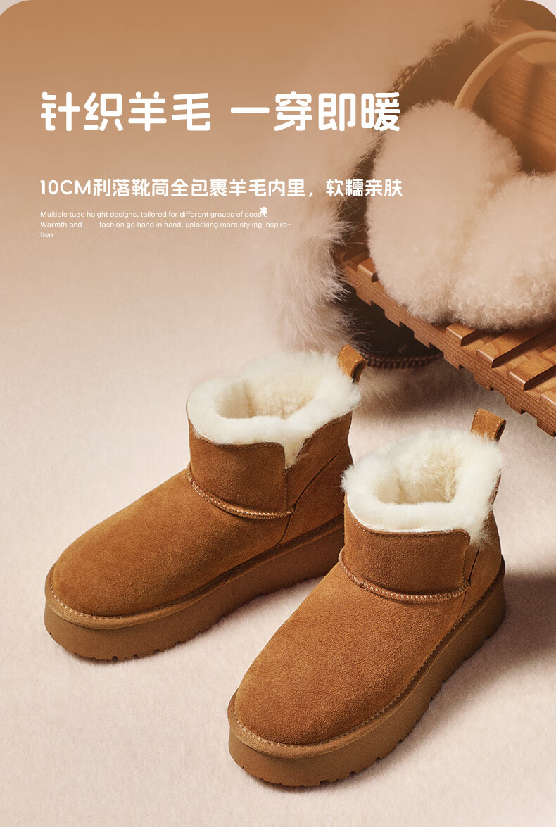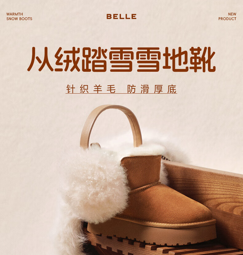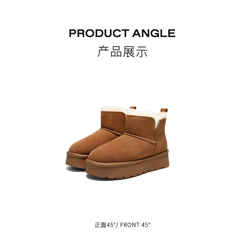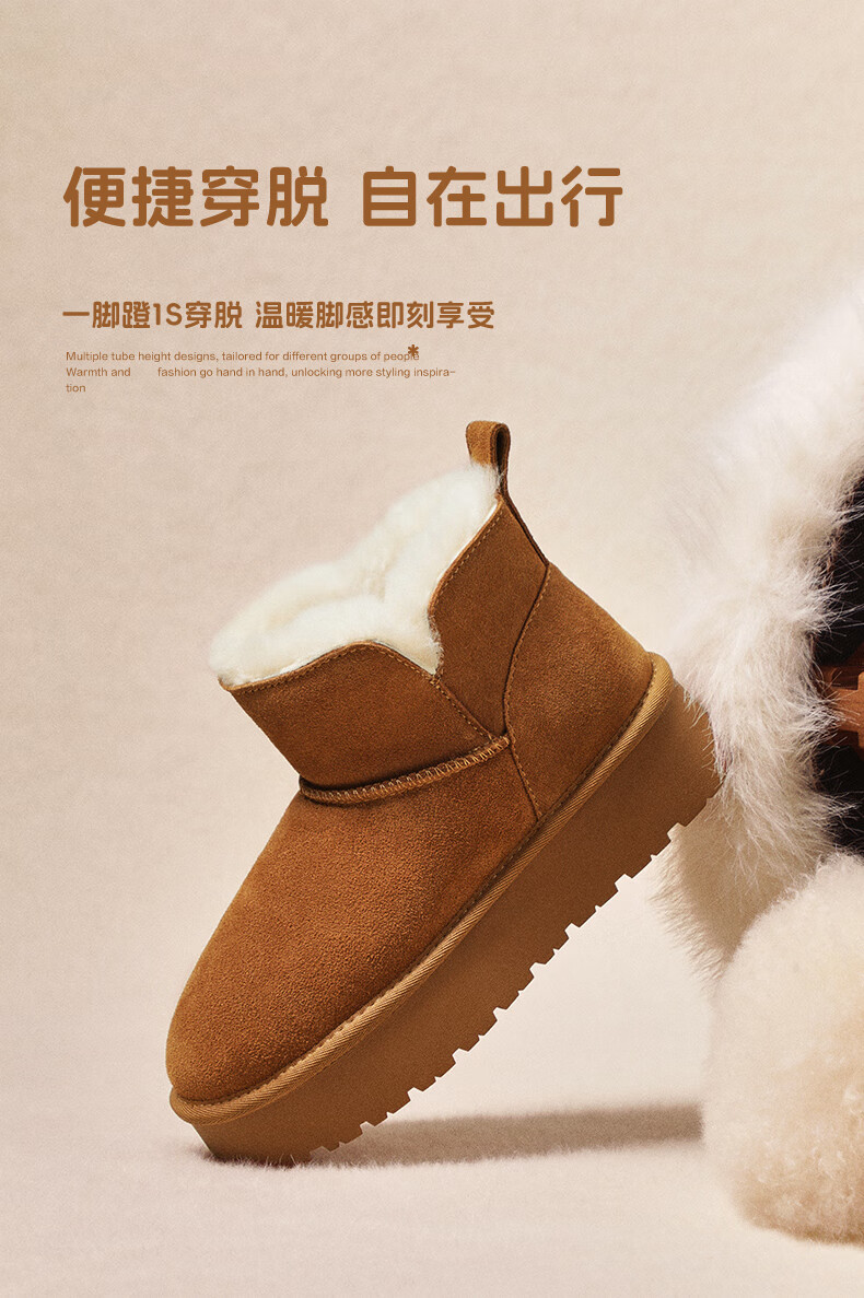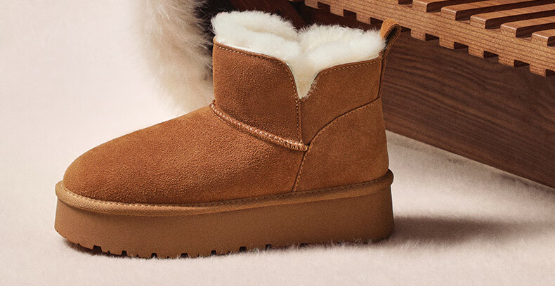百丽慵懒百搭厚底雪地靴女靴子25冬新增高加绒短靴JD016DD5 可可栗 37