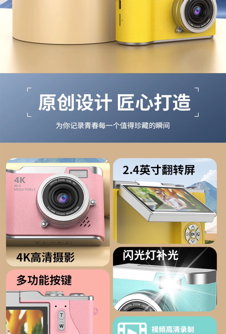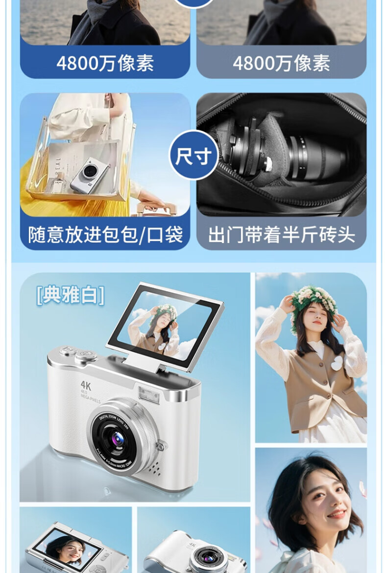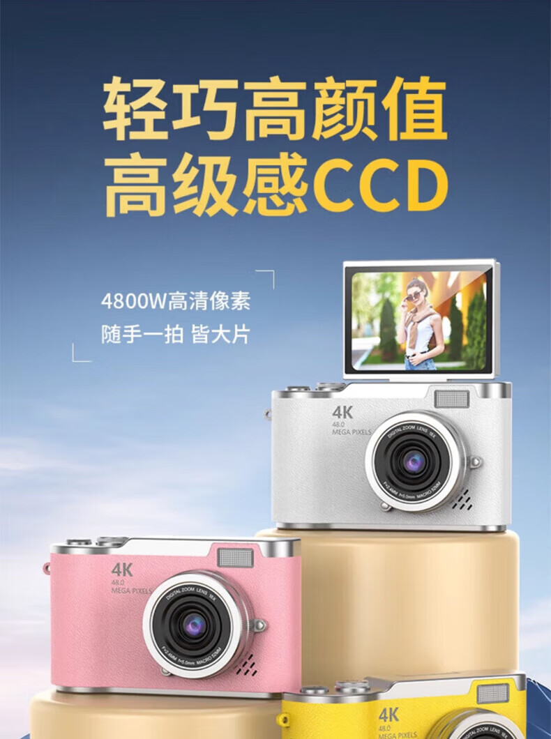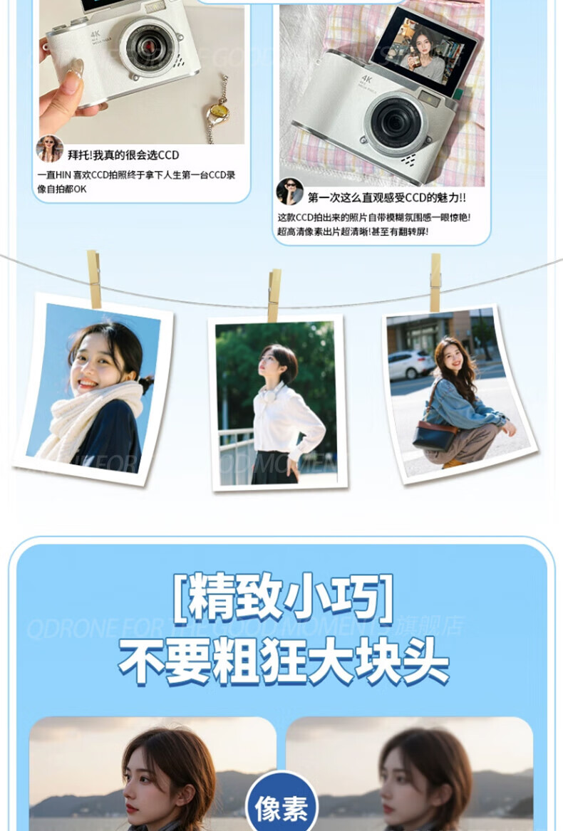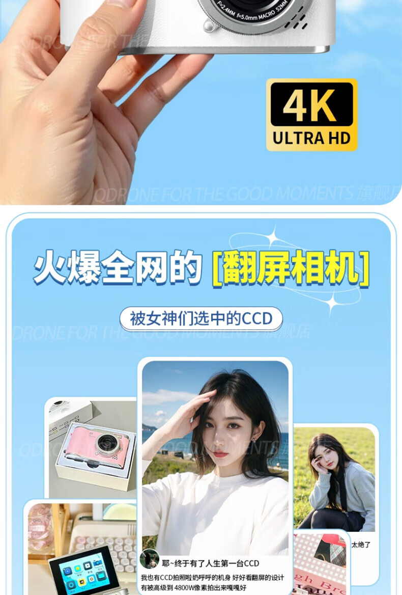 qdrone For the Good Momentsccd照相机数码相机学生党ccd相机可传手机儿童女孩生日礼物圣诞12 翻转大屏【128G+可传手机+防抖+补光灯+精美礼盒】 自动对焦CCD7-10-14-18实用初高中生旅游专用拍摄