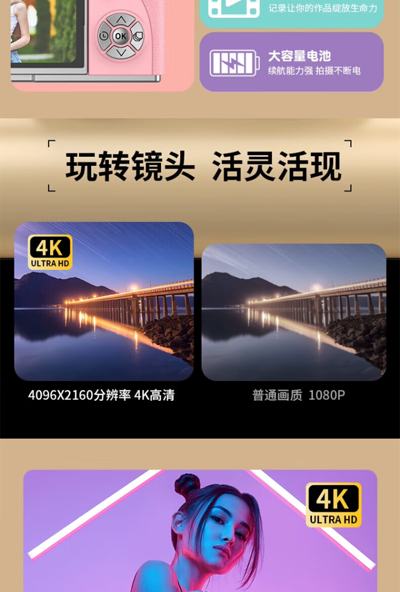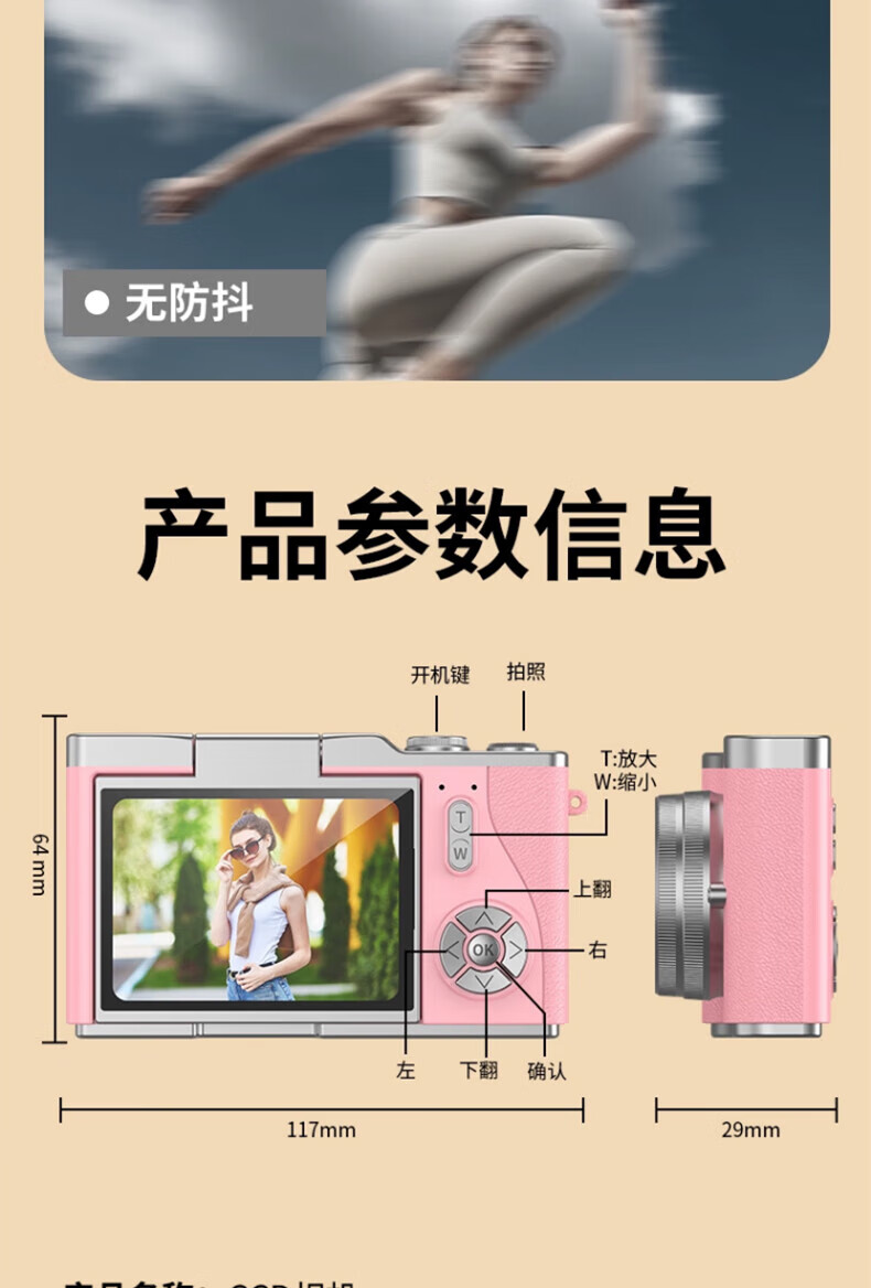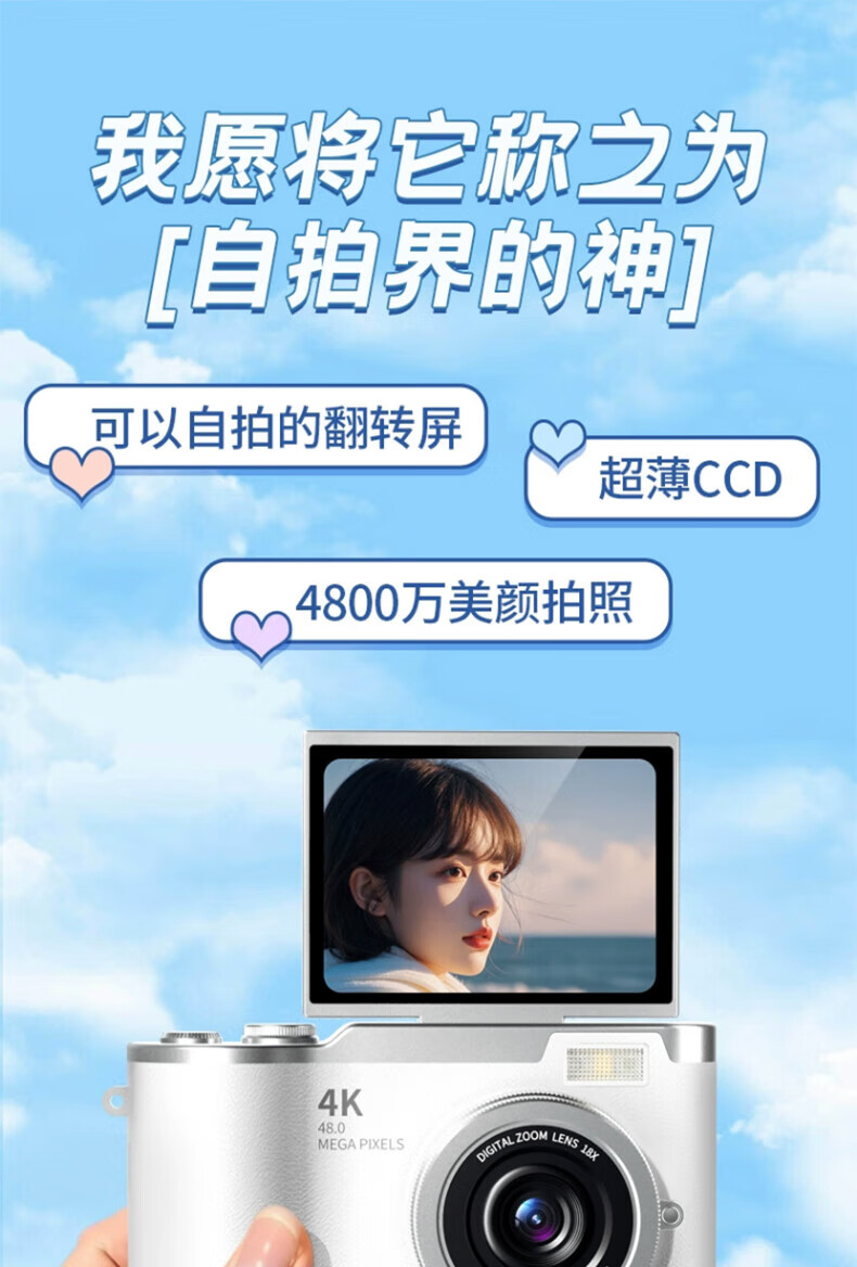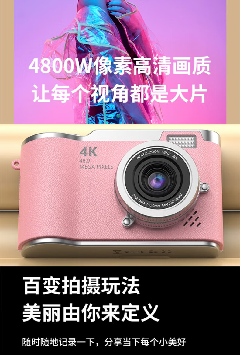 qdrone For the Good Momentsccd照相机数码相机学生党ccd相机可传手机儿童女孩生日礼物圣诞12 翻转大屏【128G+可传手机+防抖+补光灯+精美礼盒】 自动对焦CCD7-10-14-18实用初高中生旅游专用拍摄