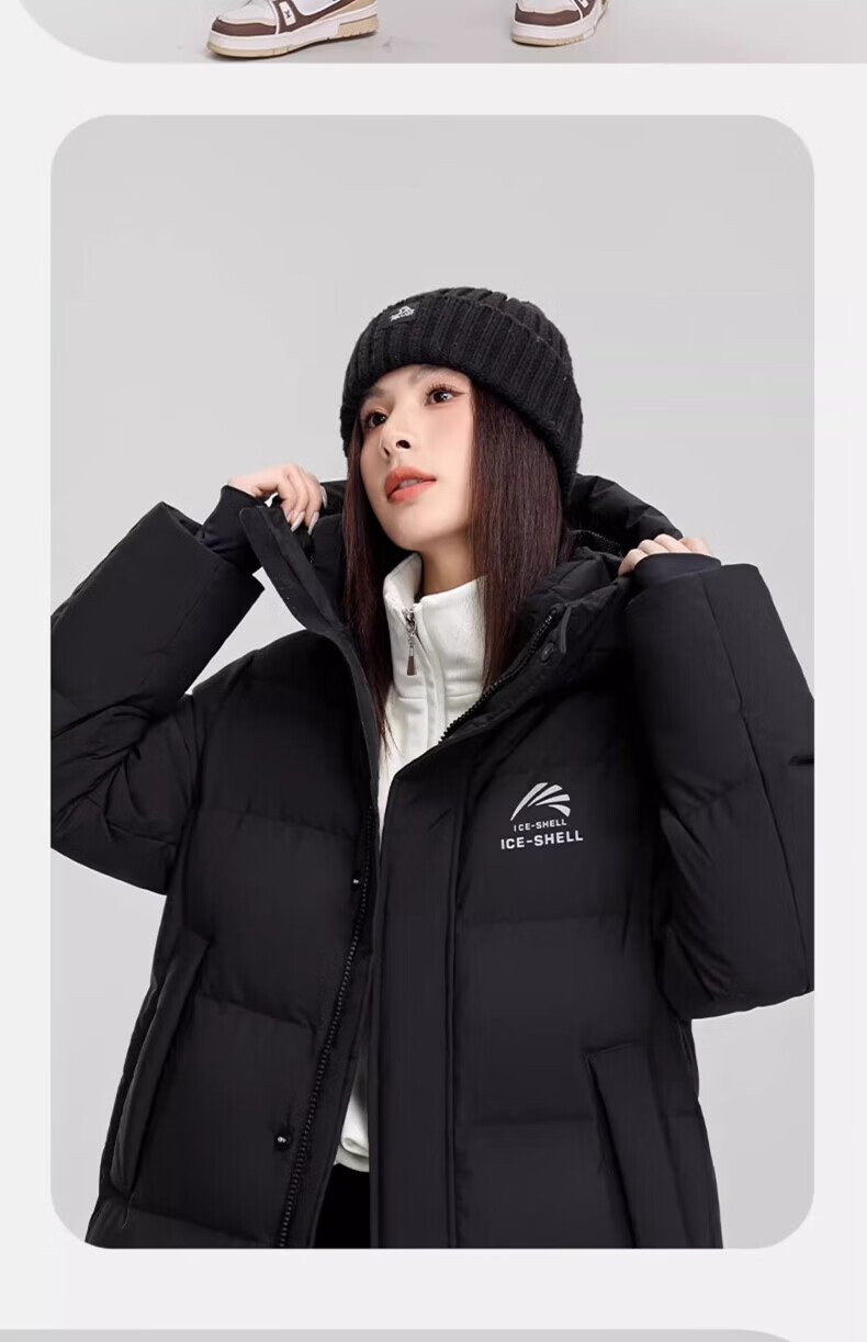 鸭鸭王一博同款轻壳系列羽绒服女短款2025冬季新款简约保暖轻薄外套HY 黑色 2XL