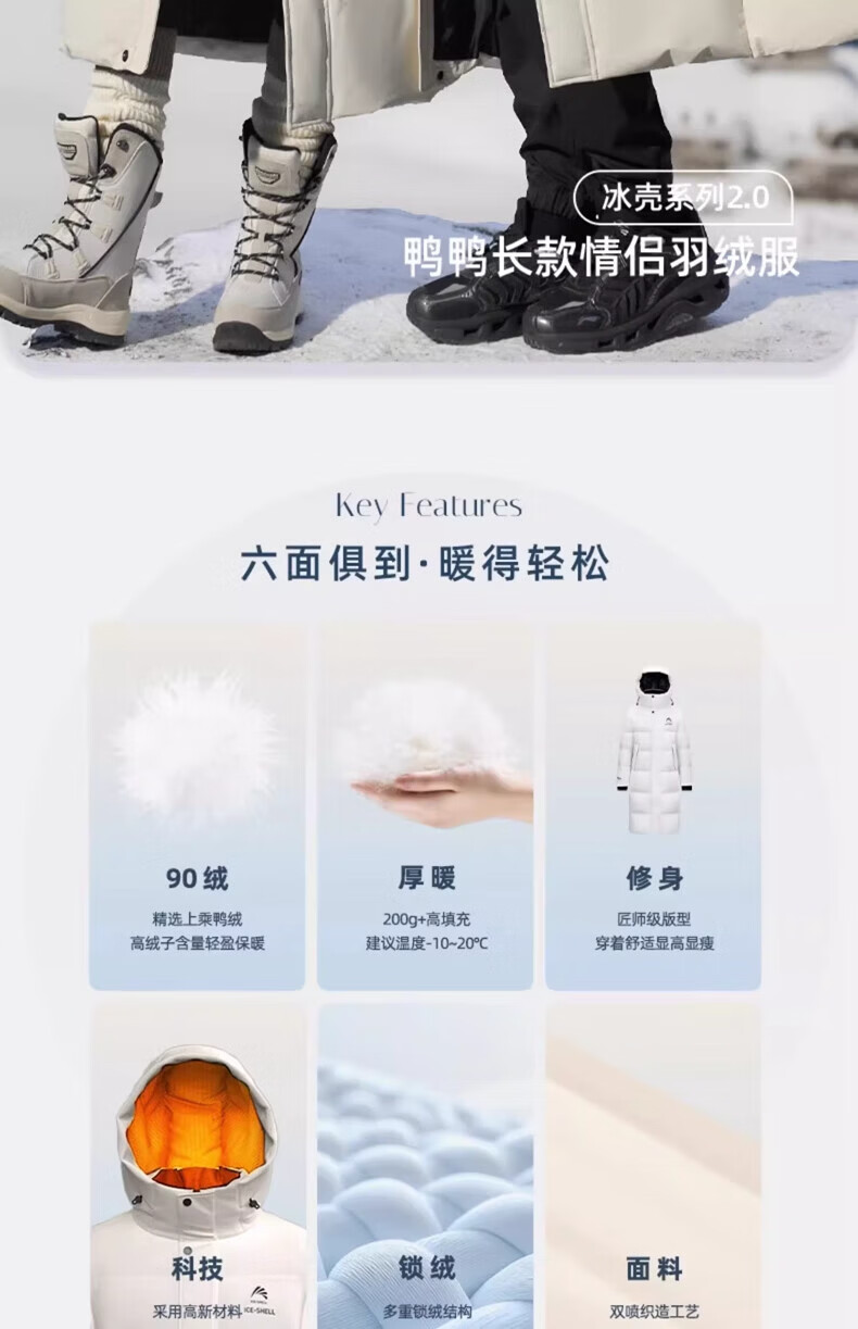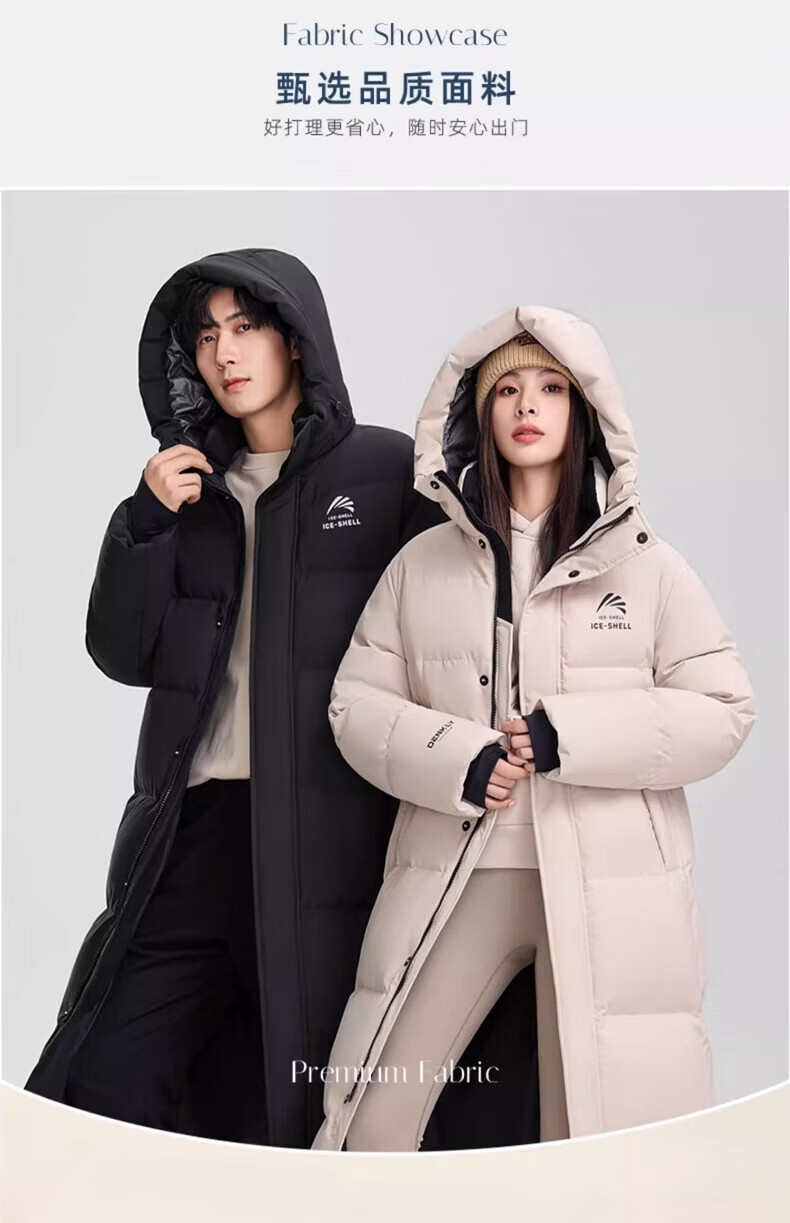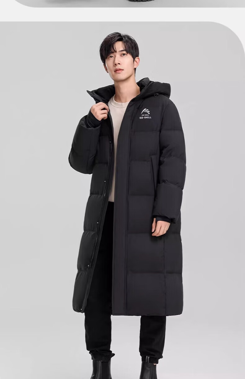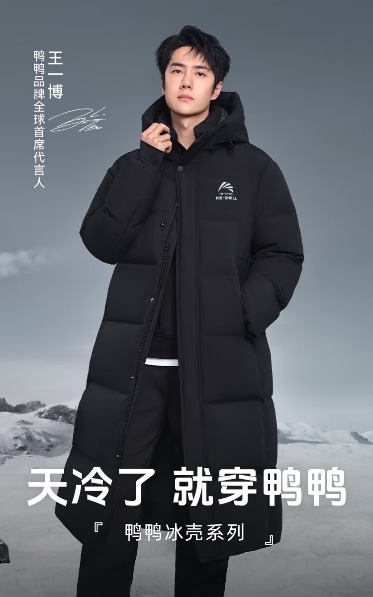 鸭鸭(YAYA)王一博同款冰壳系列户外极寒羽绒服男士新款长款情侣加厚女外套 青光黑色【现货速发】 XL /180充绒273克