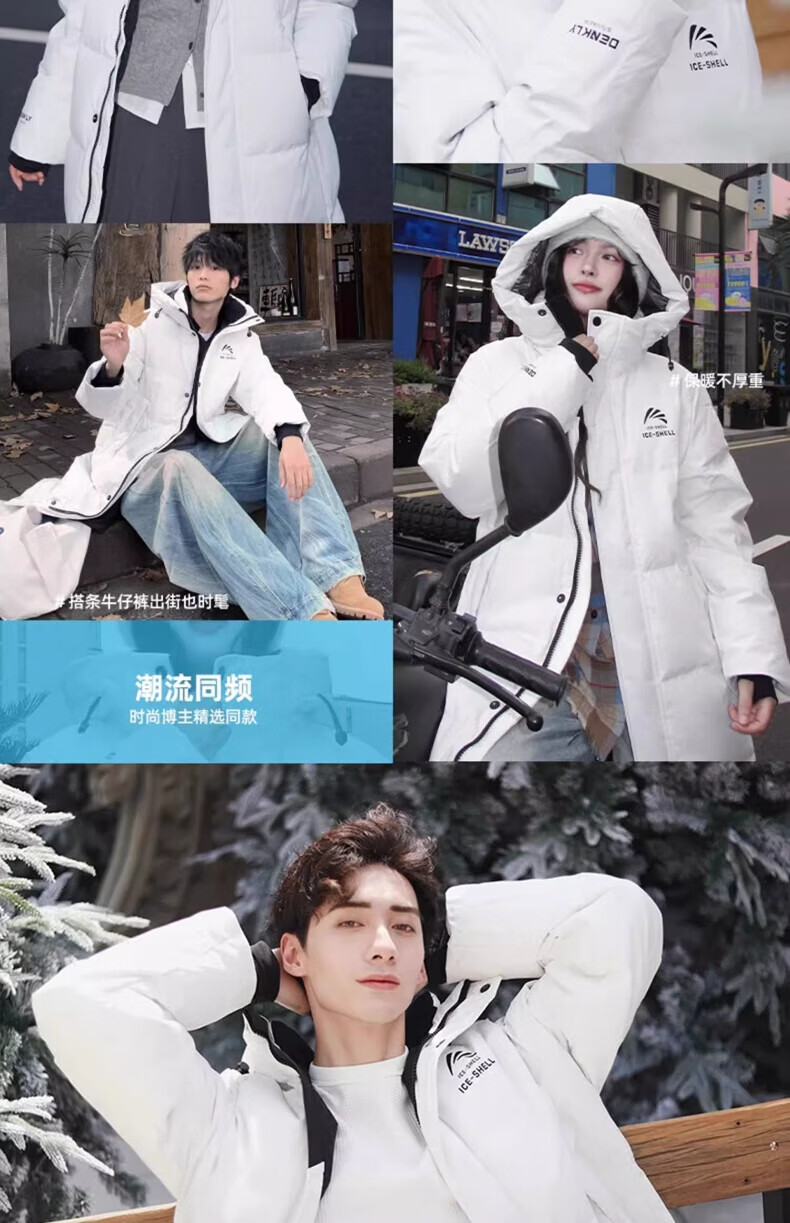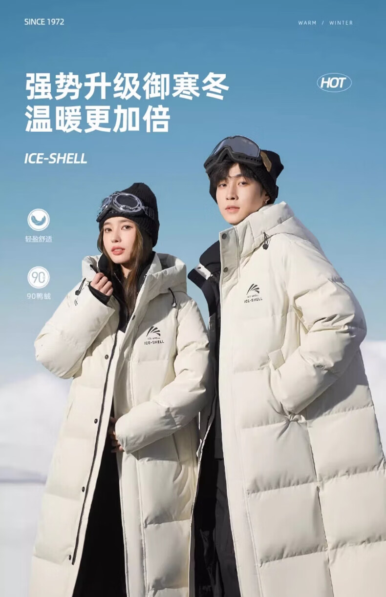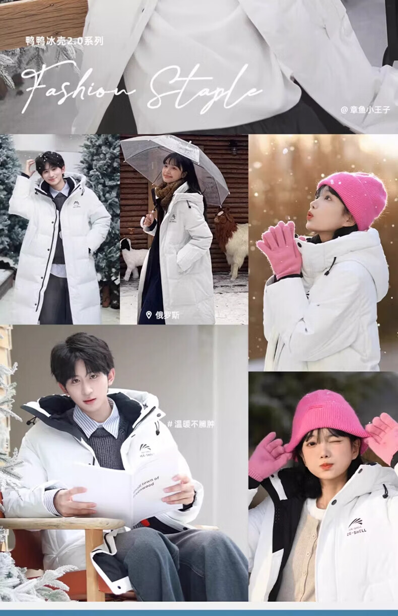 鸭鸭(YAYA)王一博同款冰壳系列户外极寒羽绒服男士新款长款情侣加厚女外套 青光黑色【现货速发】 XL /180充绒273克