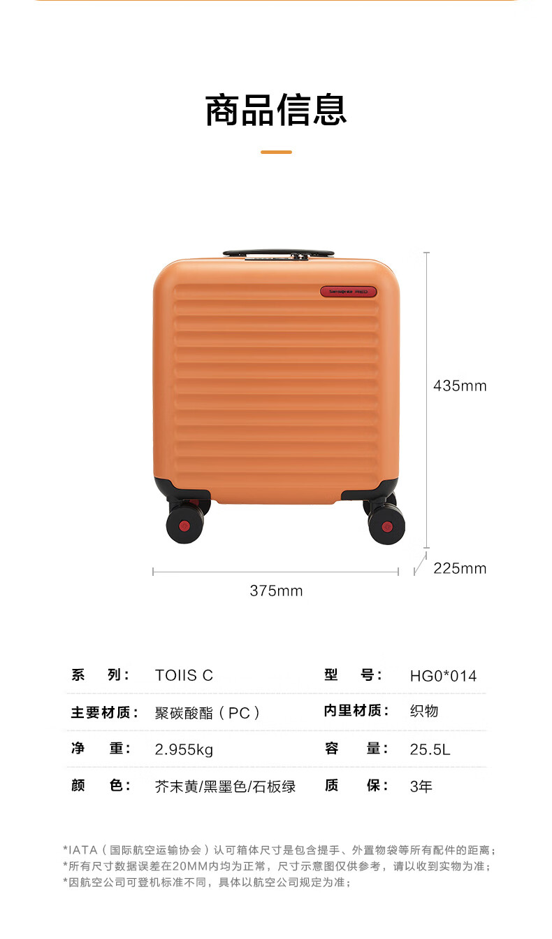 新秀丽(Samsonite)行李箱16英寸拉杆箱便携旅行箱包HG0芥末黄密码登机箱