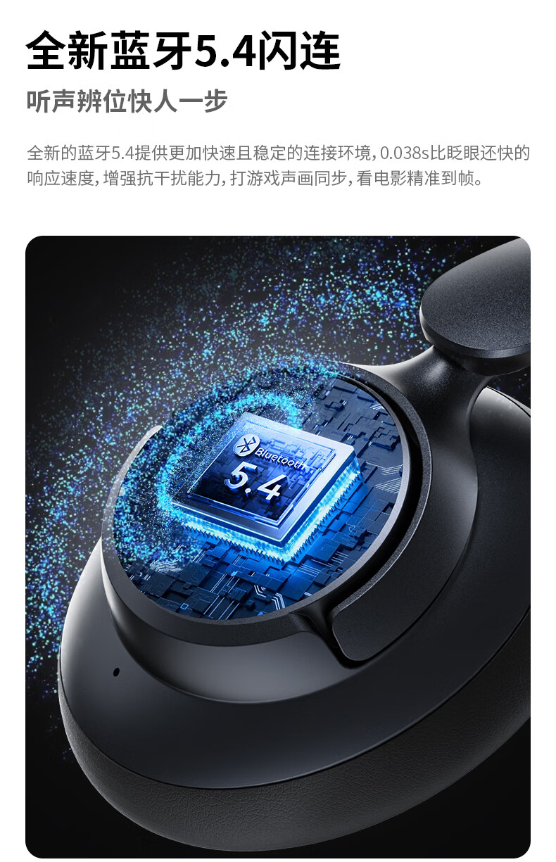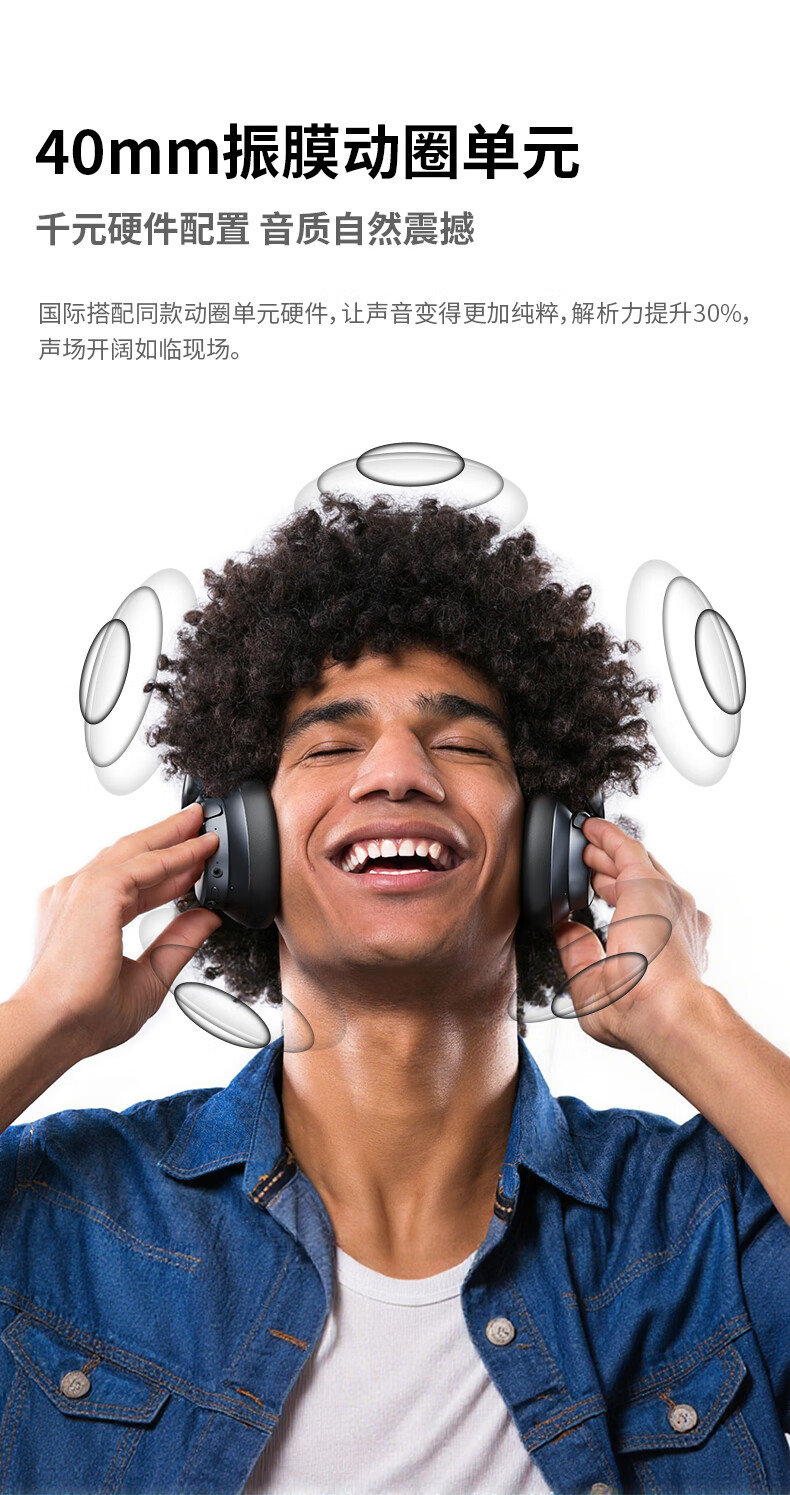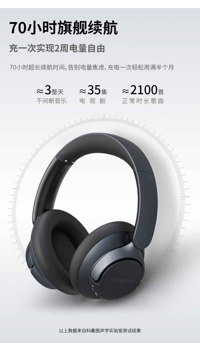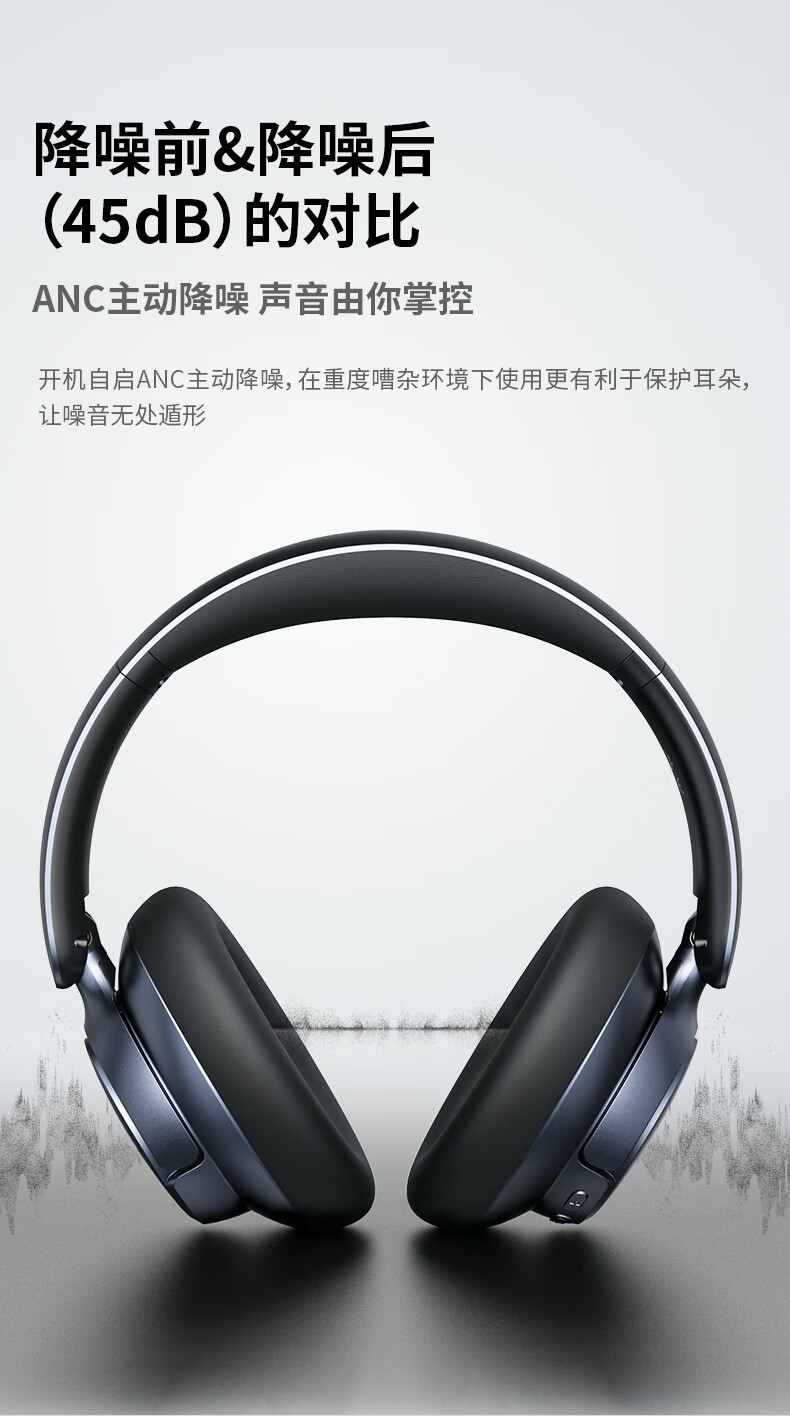 科曼图Kemantu头戴式耳机主动降噪 蓝牙耳机无线音质支持有线游戏电竞耳机低延迟男女情侣款2025 典雅黑