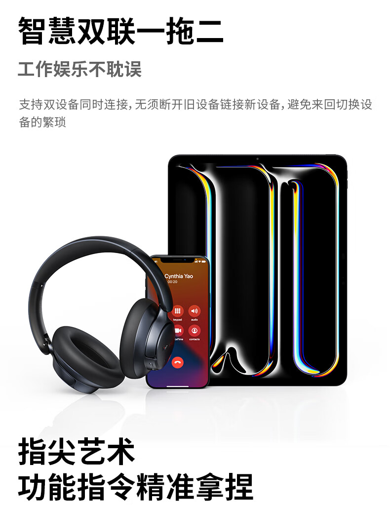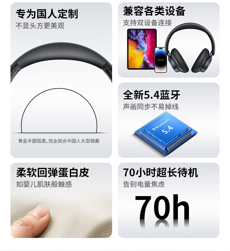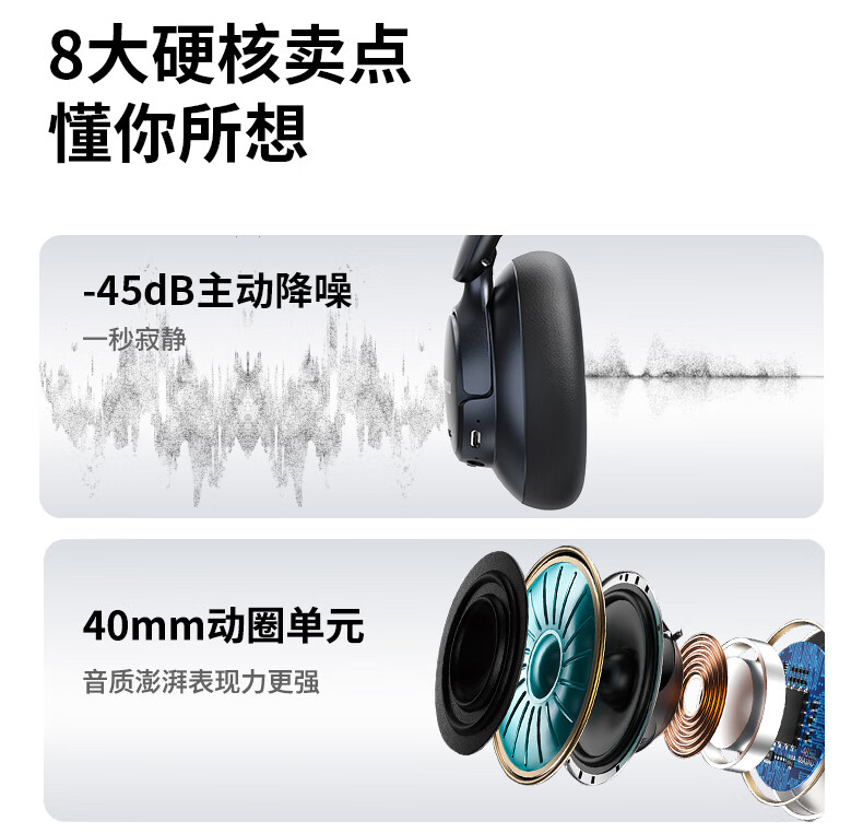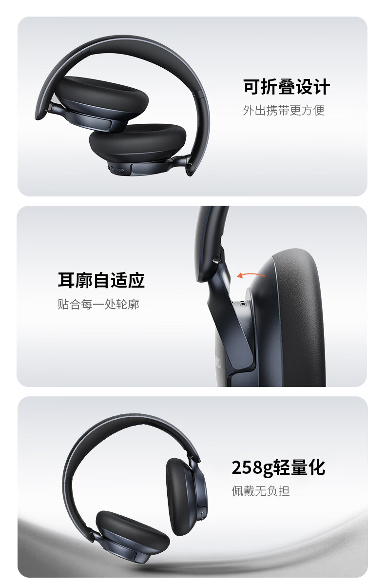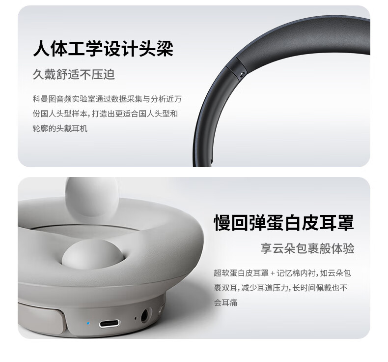 科曼图Kemantu头戴式耳机主动降噪 蓝牙耳机无线音质支持有线游戏电竞耳机低延迟男女情侣款2025 典雅黑