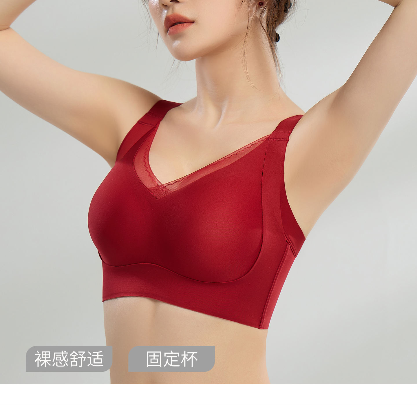 aidai无痕内衣女安可拉红无钢圈软支撑提拉上托聚拢薄款透气美背文胸 浅紫色 75B (ABC通杯)=M码