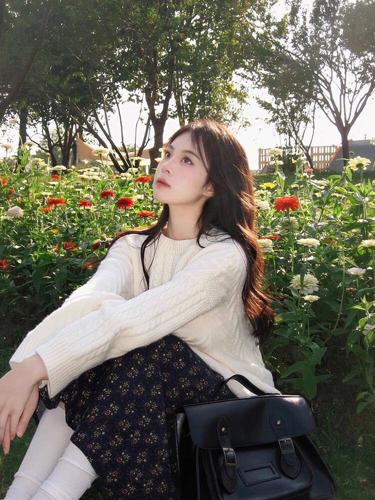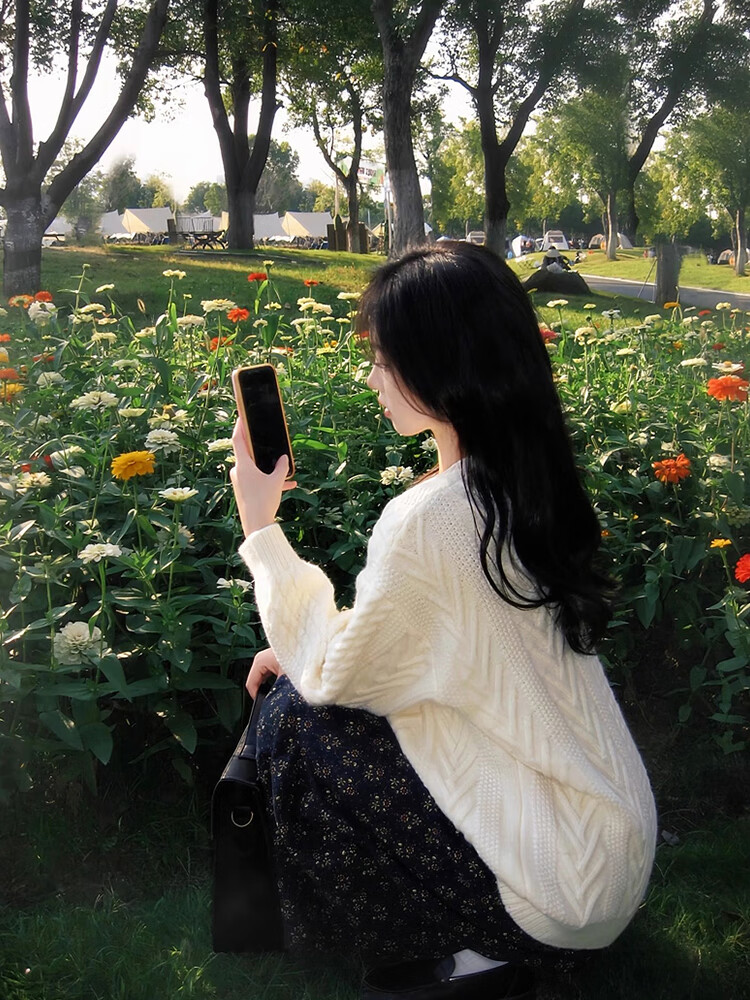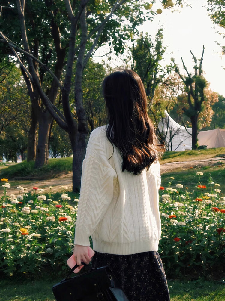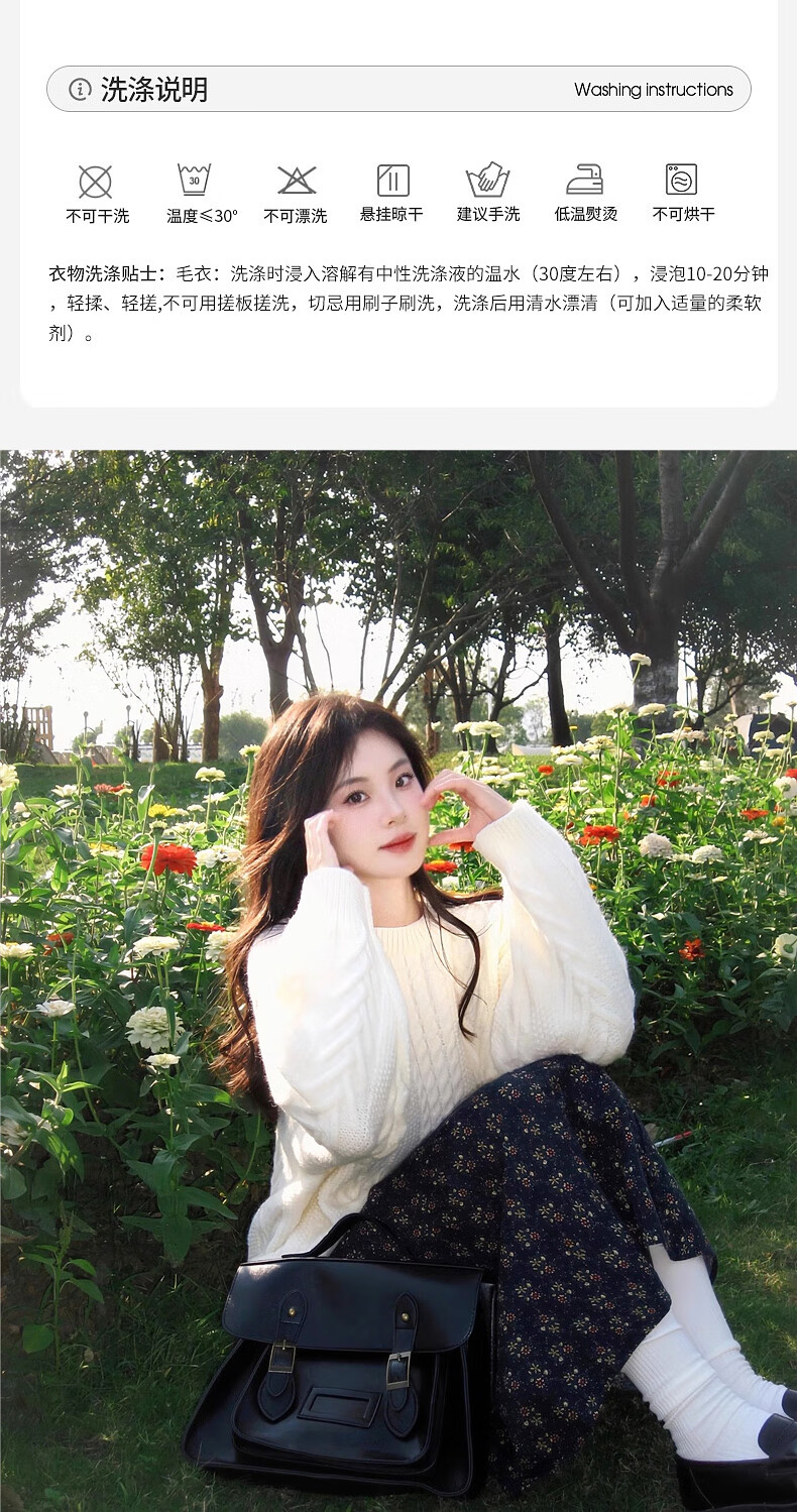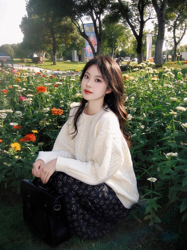 翊尚美毛衣女秋冬新款2025年小个子宽松慵懒风针织衫内搭高级感套头上衣 米白色 【不显臃肿抗起球】 均码 【推荐80-140斤】
