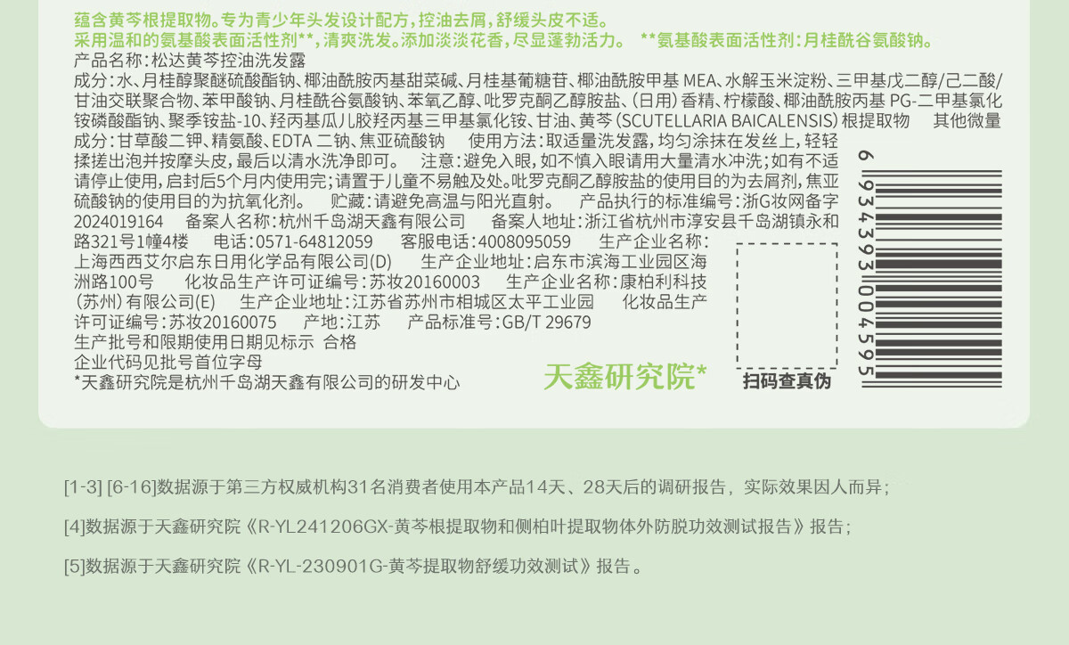 松达青少年洗发水学生党青春期男女孩控油去屑温和黄芩洗发露 【源头控油】黄芩洗发水380ml