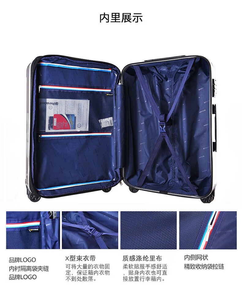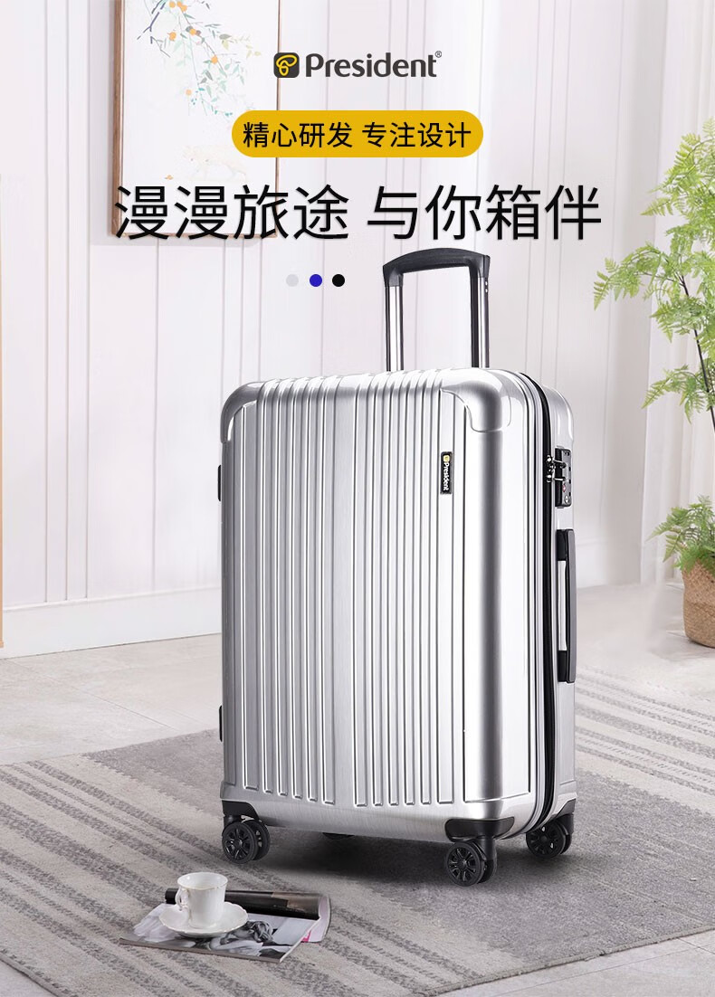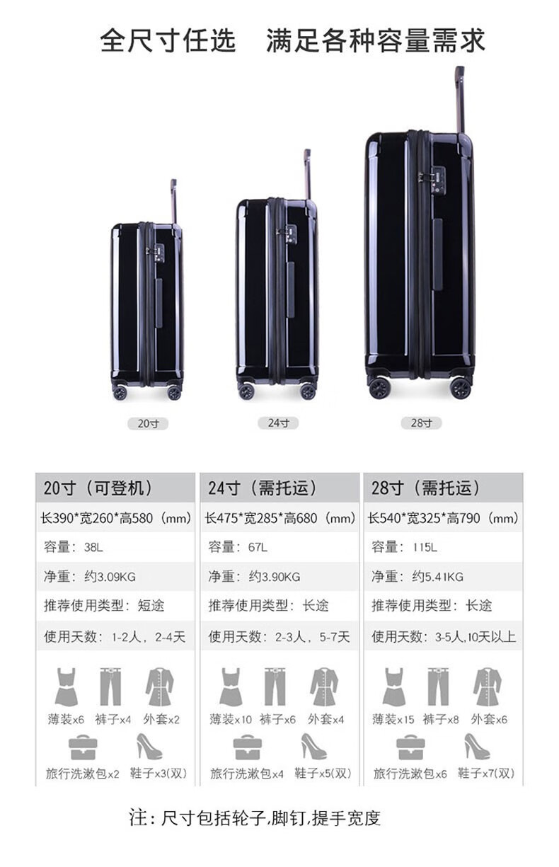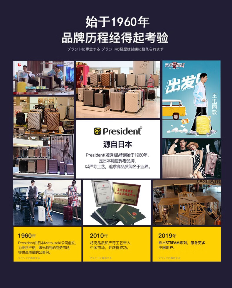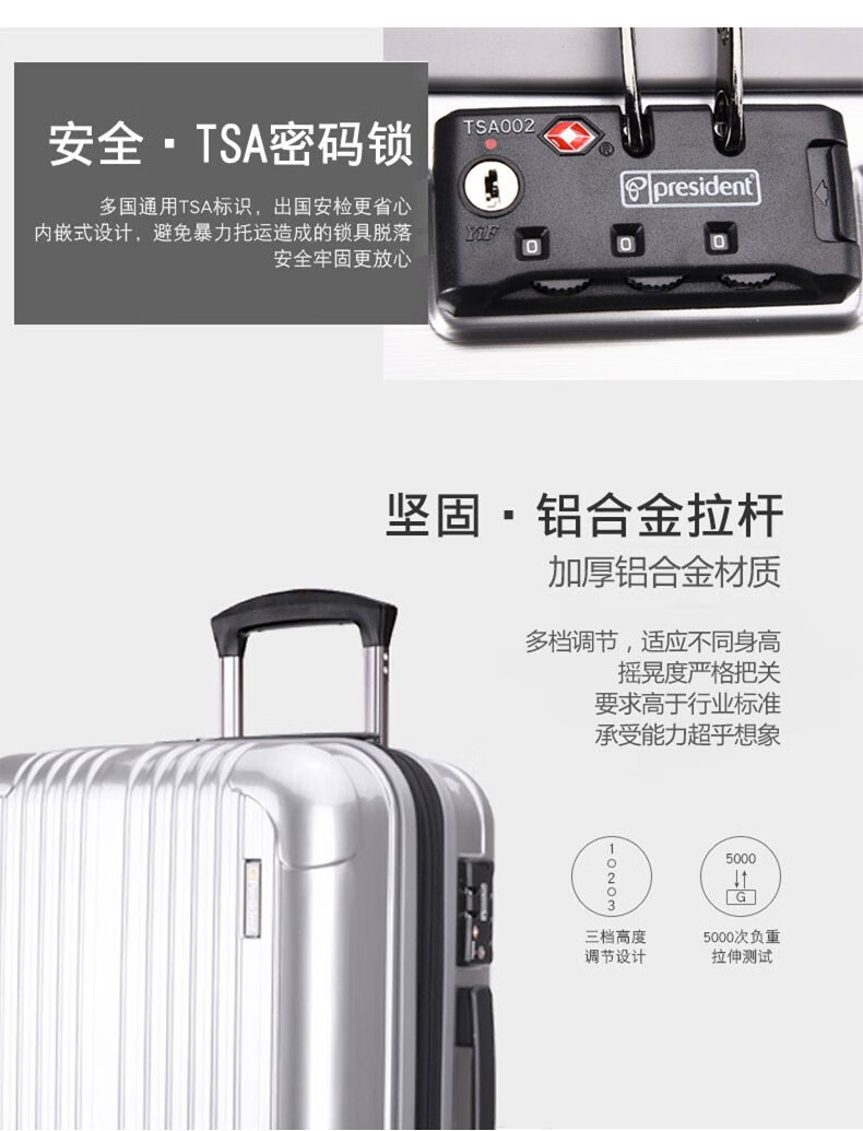 凌秀President凌秀 拉杆行李箱万向轮旅行箱子男女登机箱包密码可扩展 【可扩展】 拉链 版尊贵黑 20英寸 (登机箱5年保修)