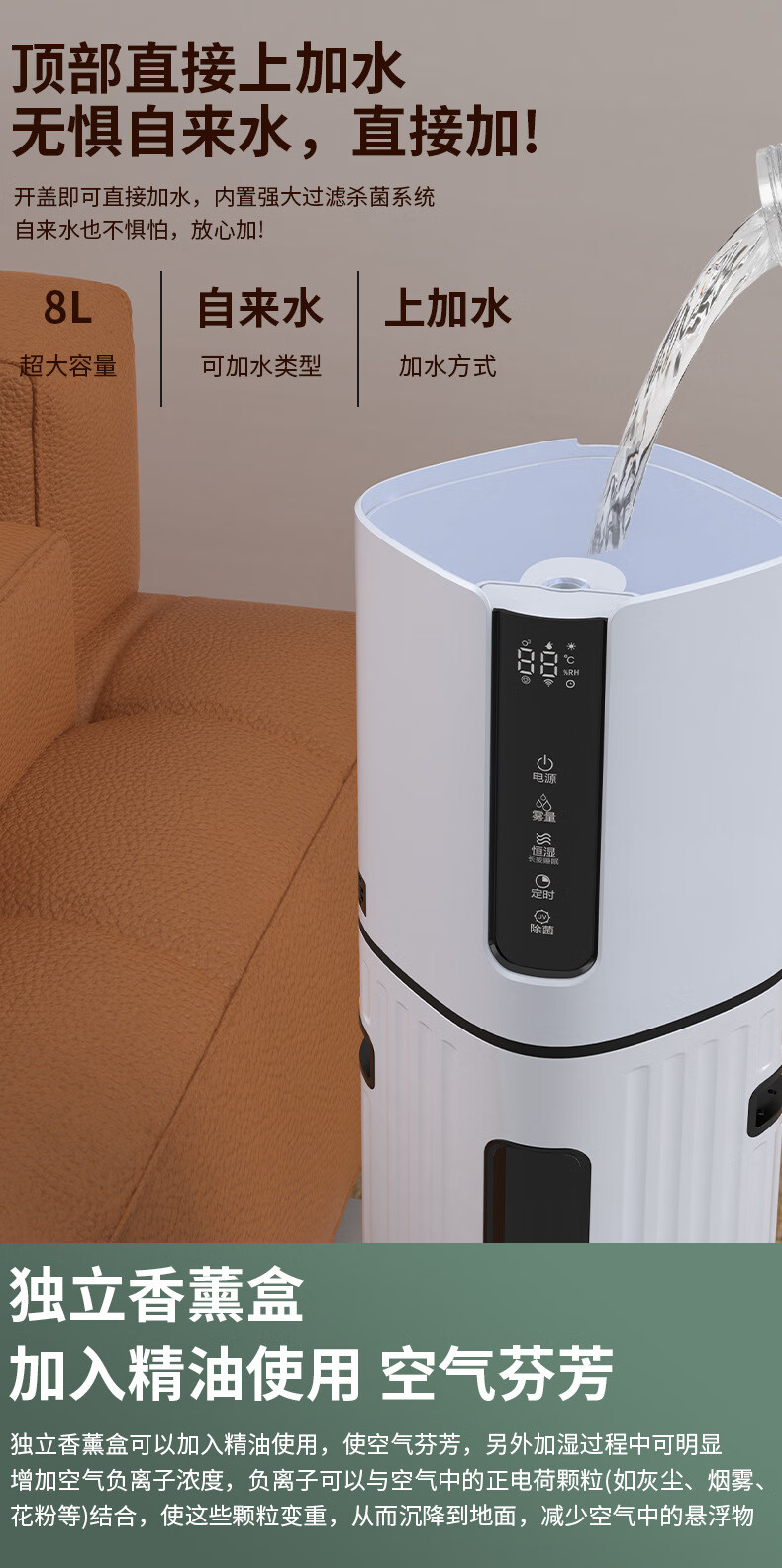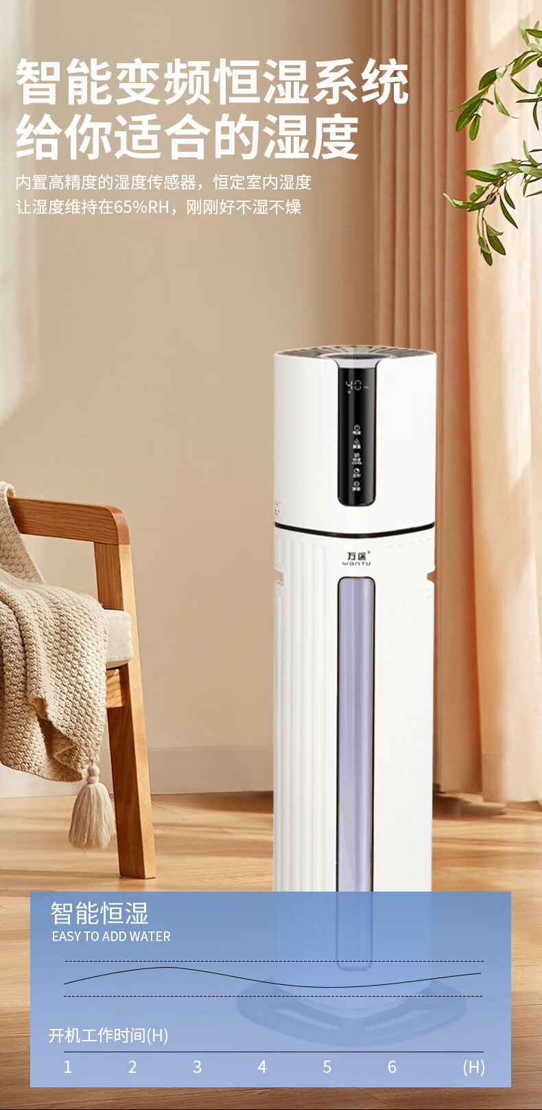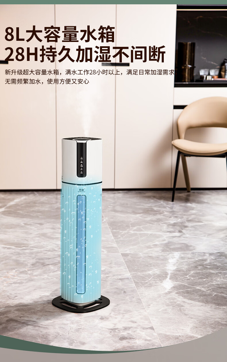 万途(WANTU)空气加湿器卧室落地式上加水立式家用除菌婴儿大容量大雾量办公室客厅空调房超声波增湿机 QT-2013触摸款8L【3档调节】