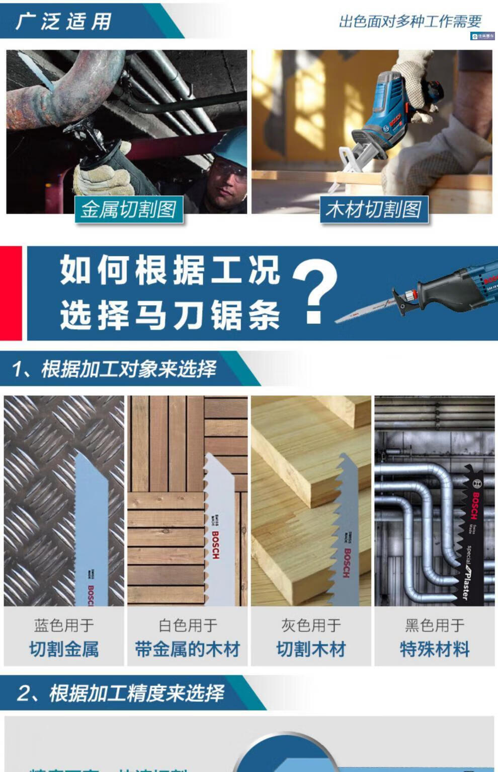 山头林村往复锯条金属切割马刀锯锯条S1122BF博士双金属木工锯片S1127BEF S922EF金属精细切割