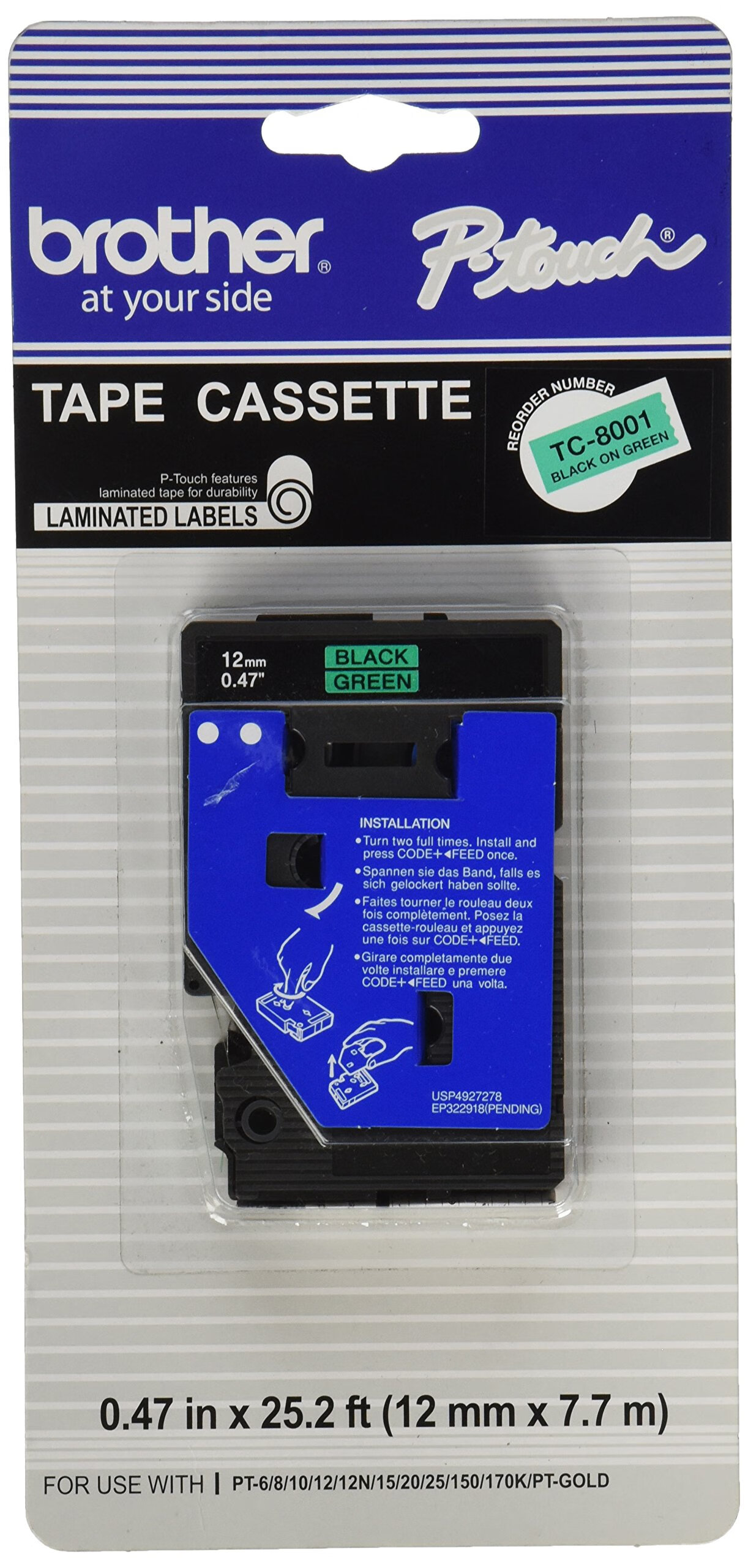 兄弟(brother) 标签打印机色带 12mm 黑绿色 办公标签 绿色
