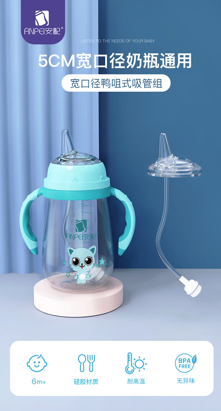 安配通用宽口径鸭嘴吸管组 奶瓶配件AP2249(适配贝亲/好孩子等奶瓶)