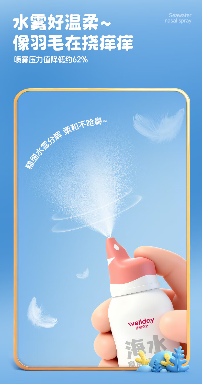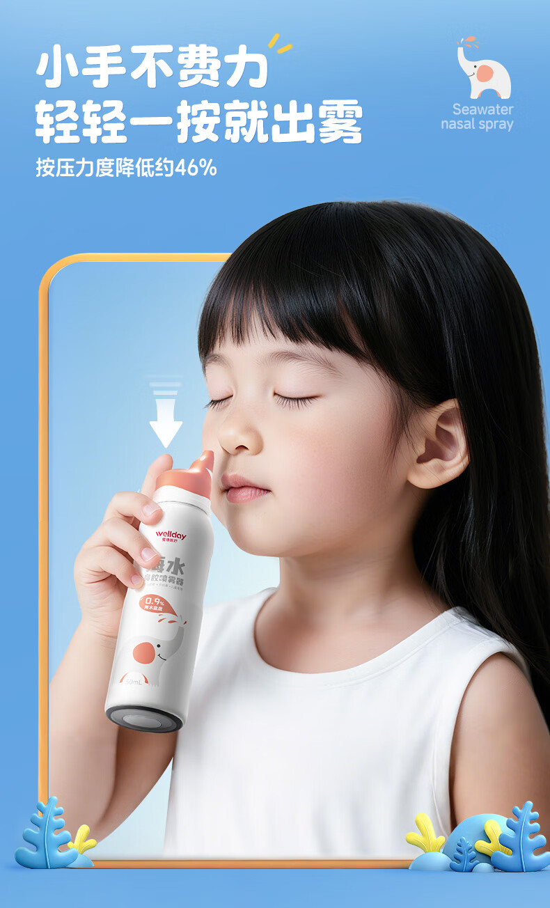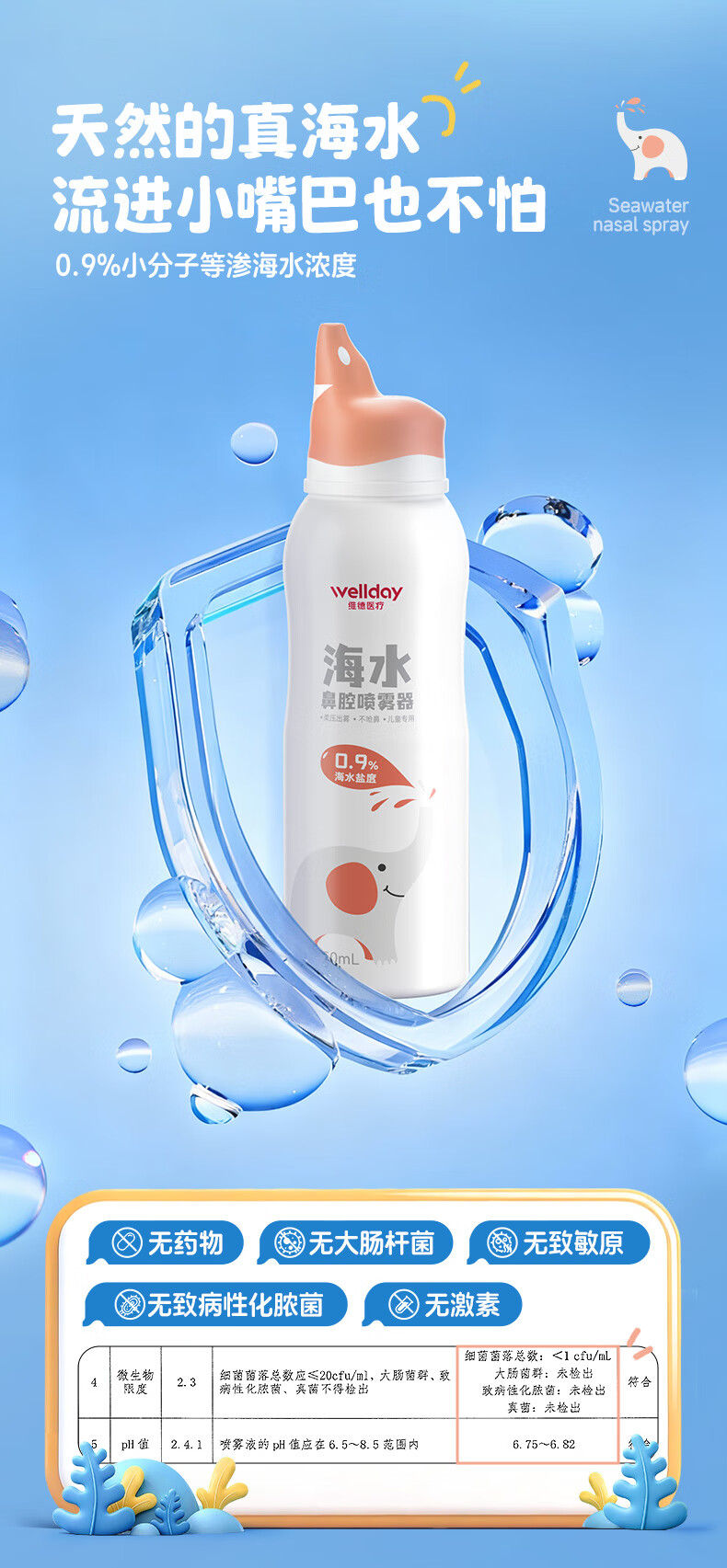 维德(WELLDAY)生理盐水洗鼻器海盐水喷鼻腔喷雾器鼻窦炎喷剂鼻塞鼻腔清洗鼻盐水 【店长强推】升级等渗100ml-儿童