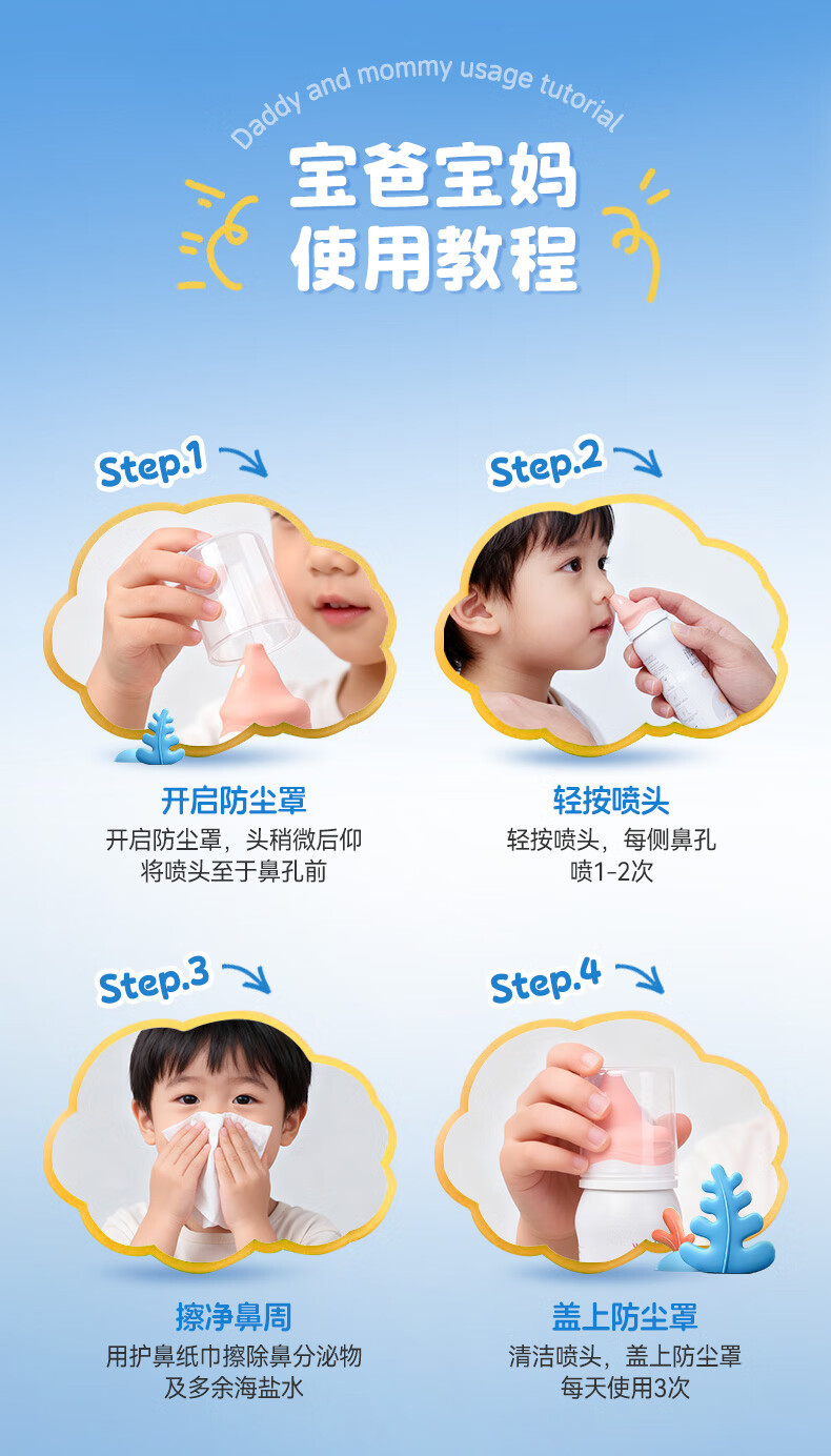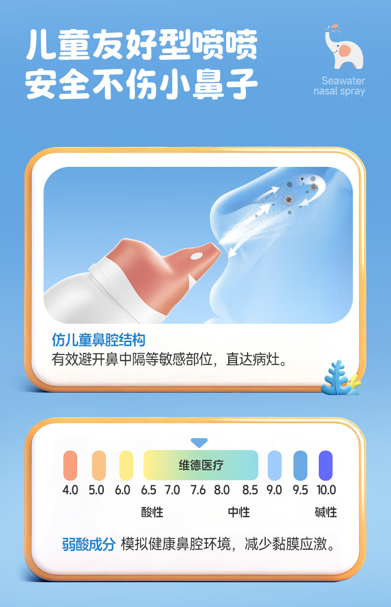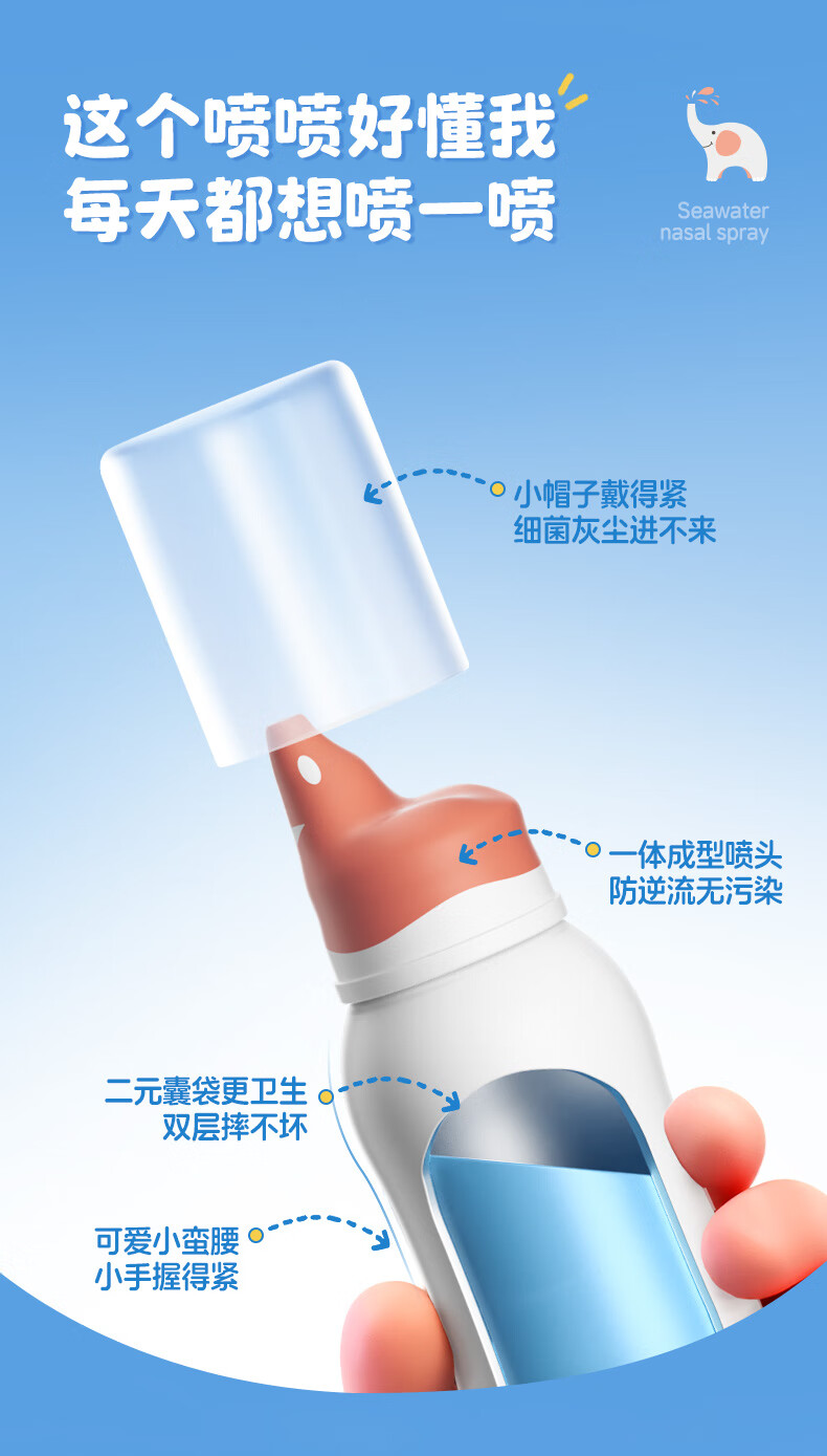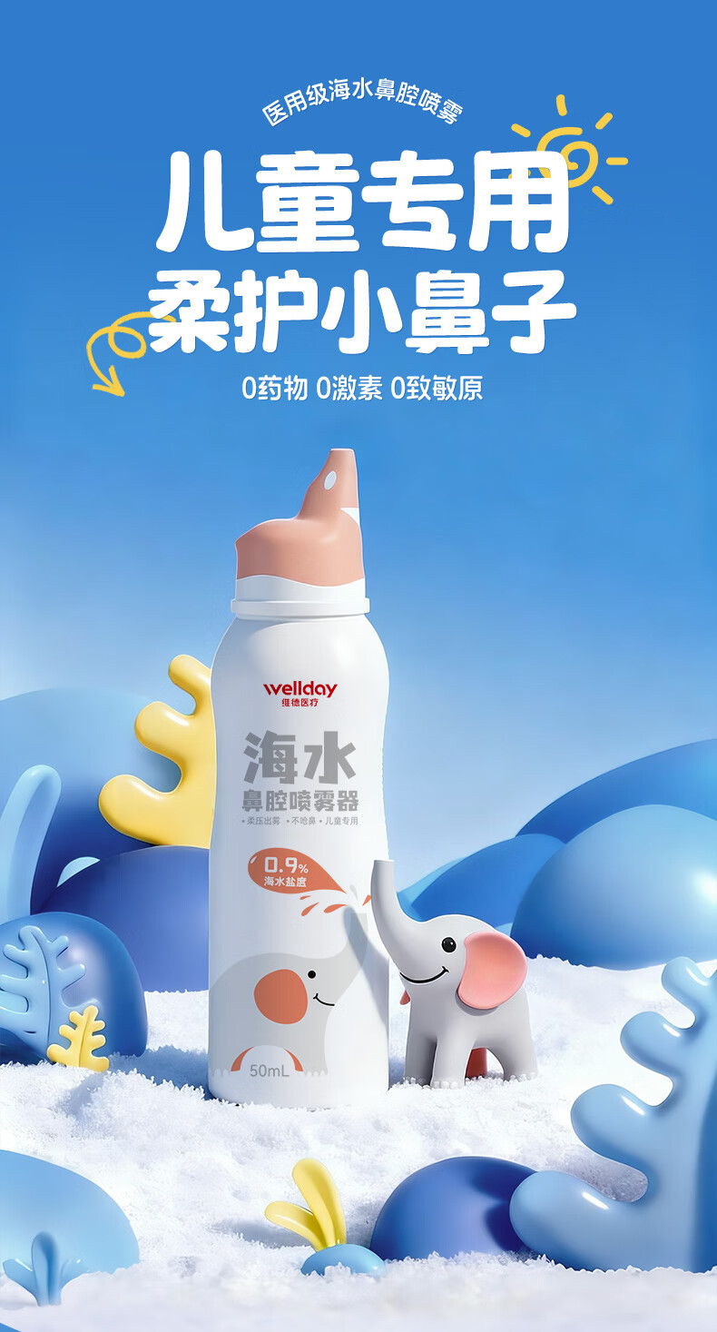 维德(WELLDAY)生理盐水洗鼻器海盐水喷鼻腔喷雾器鼻窦炎喷剂鼻塞鼻腔清洗鼻盐水 【店长强推】升级等渗100ml-儿童