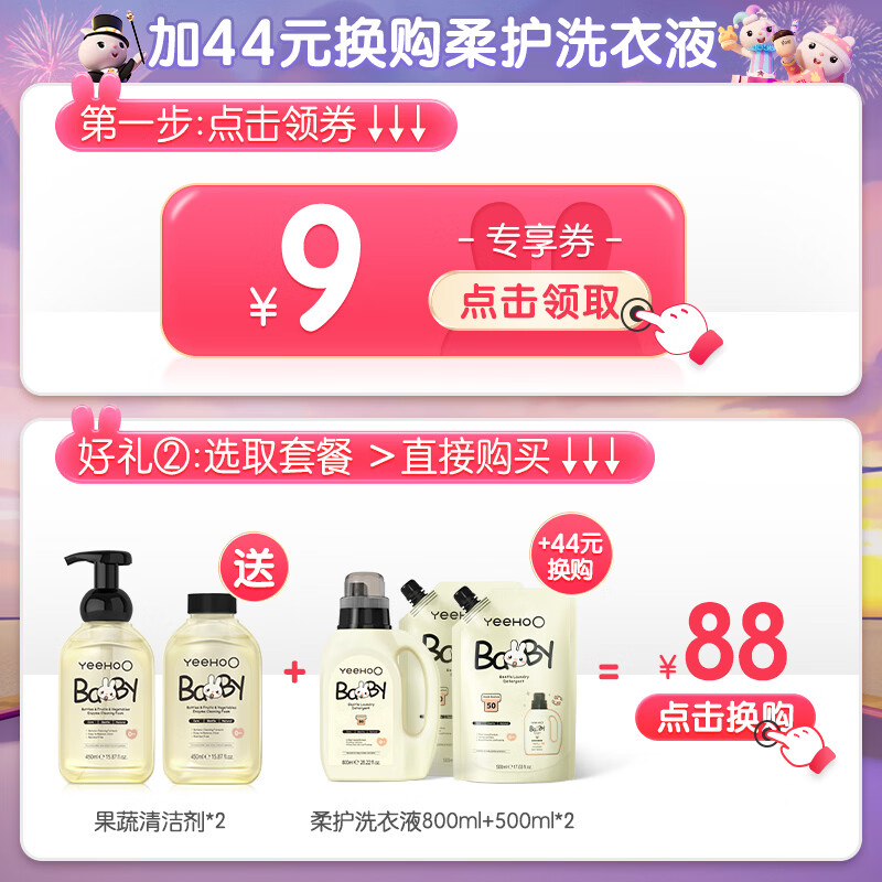 英氏(YEEHOO)奶瓶清洗剂洗奶瓶刷婴儿专用果蔬清洗液宝宝奶嘴刷子柠檬酸洗洁精 【到手2瓶】奶瓶果蔬清洗剂450ml