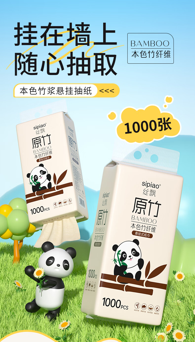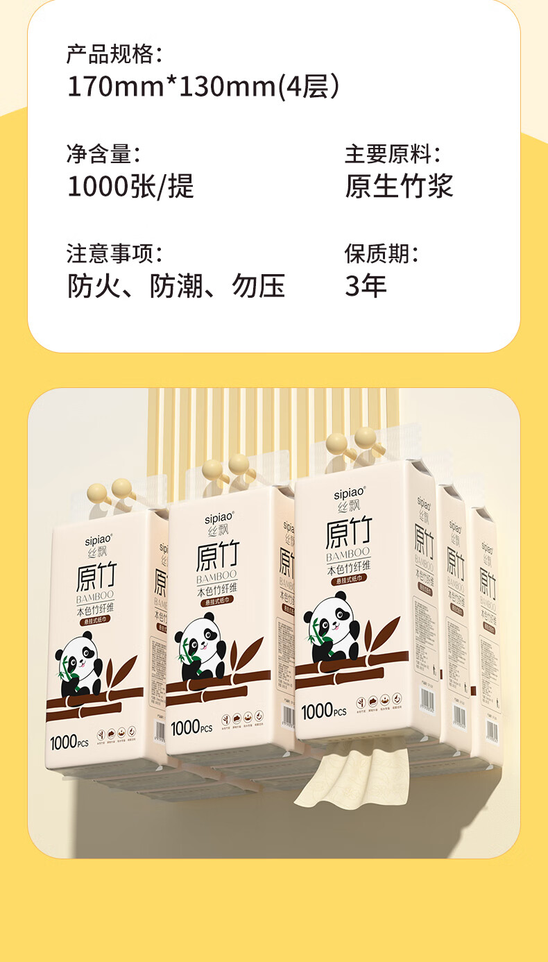 丝飘悬挂式抽纸巾餐巾纸面纸家用纸巾宿舍适用加厚4层1000张 小黄鸭系列 4层 1000张*4提