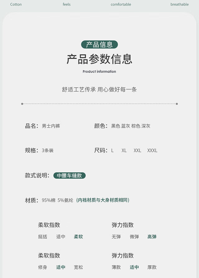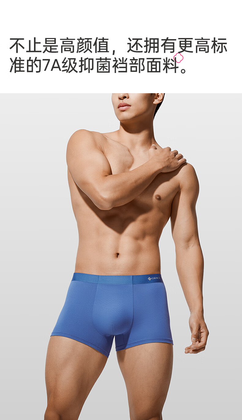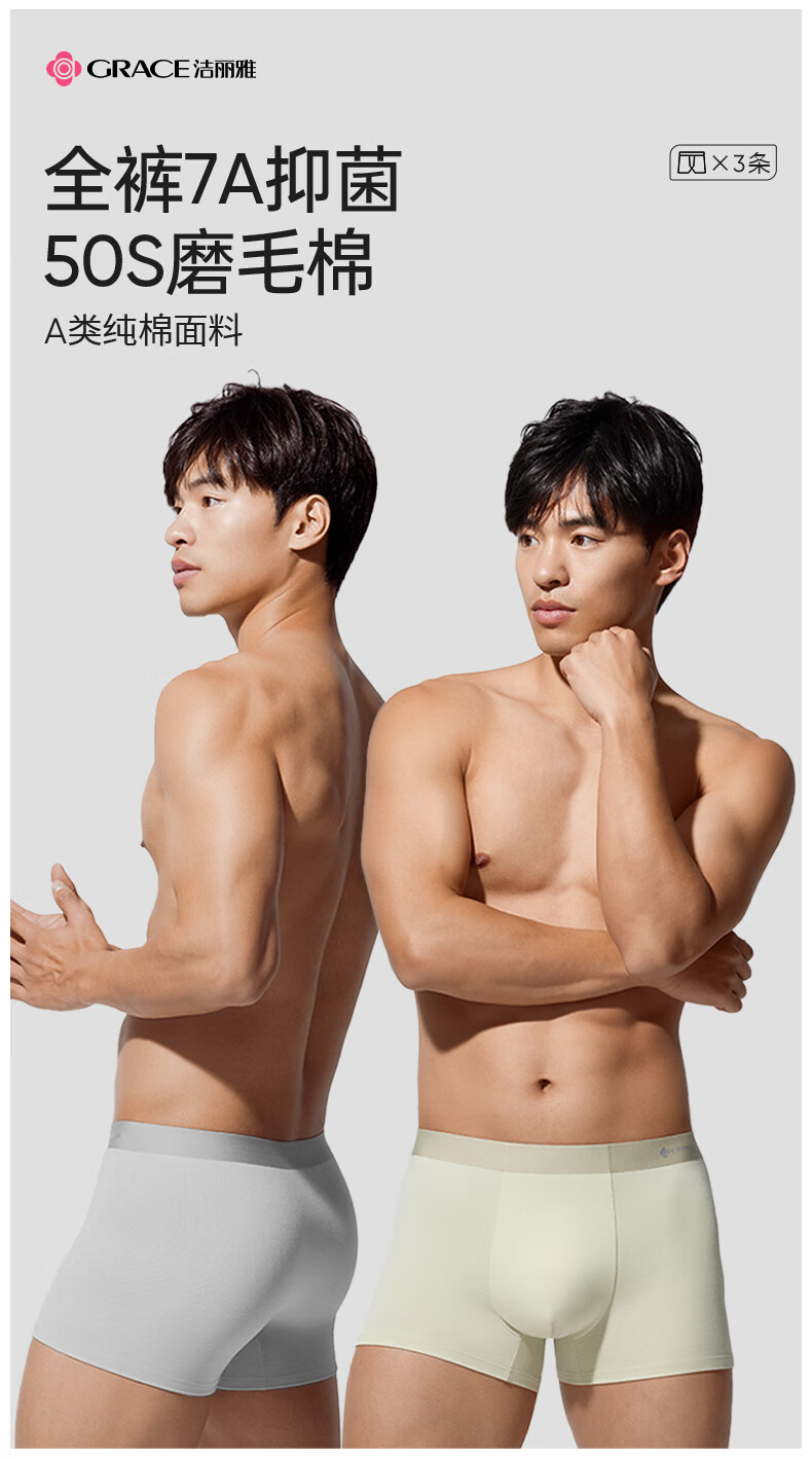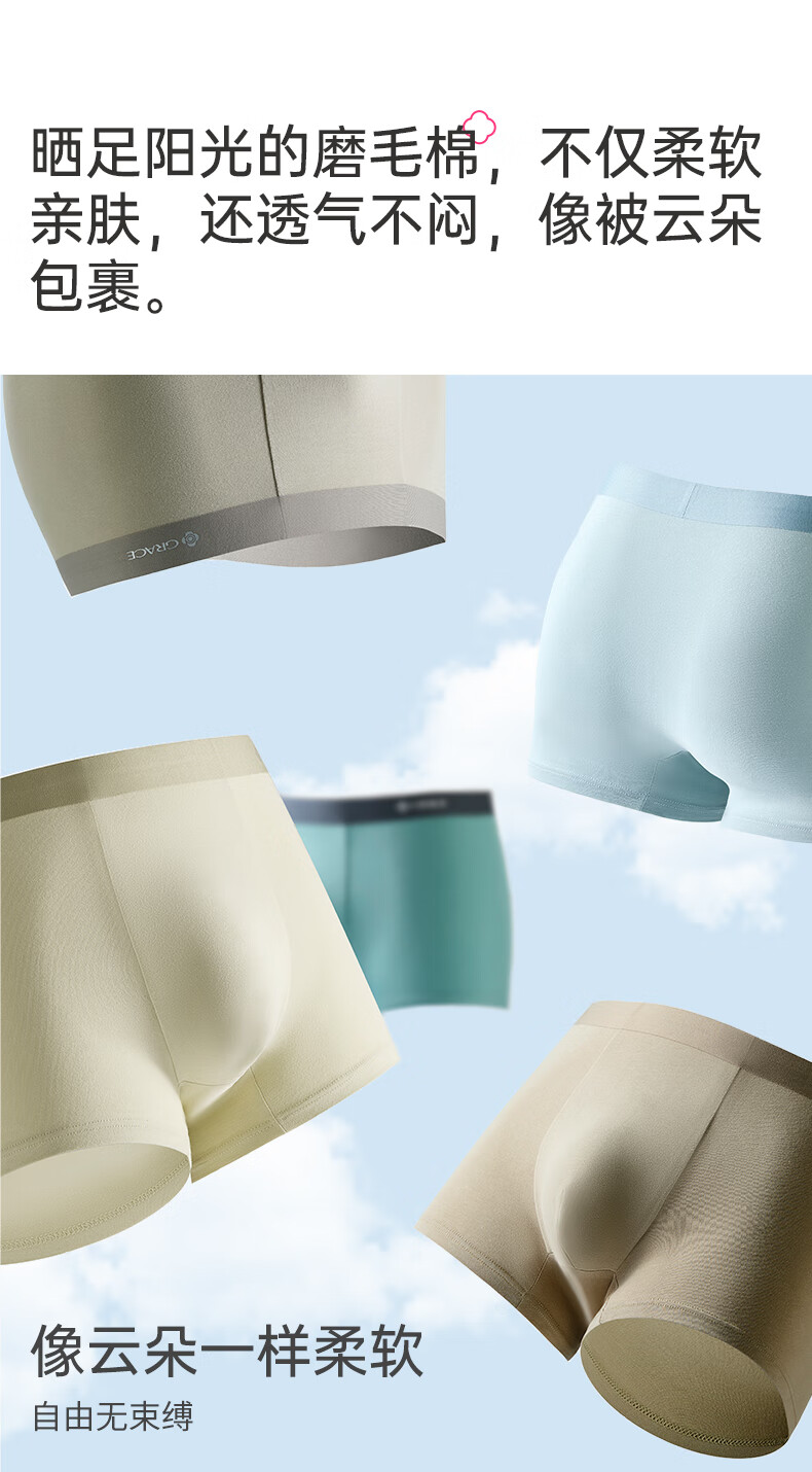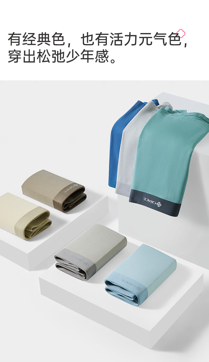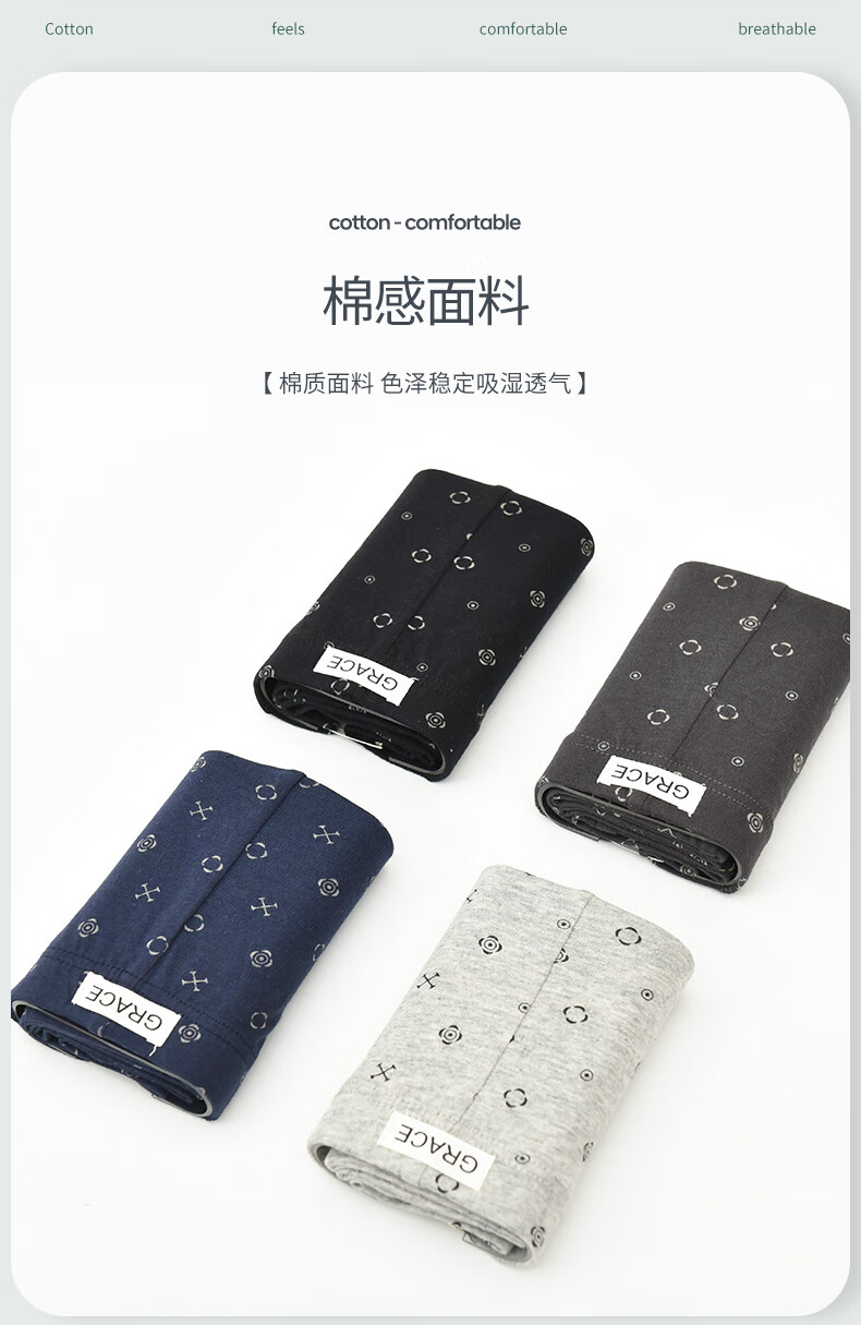 洁丽雅内裤男纯棉男士内裤抗菌透气纯棉内裤男生内裤圣诞纯棉宽松裤头 蔚蓝色+蓝柚色+卡其色 3条 L