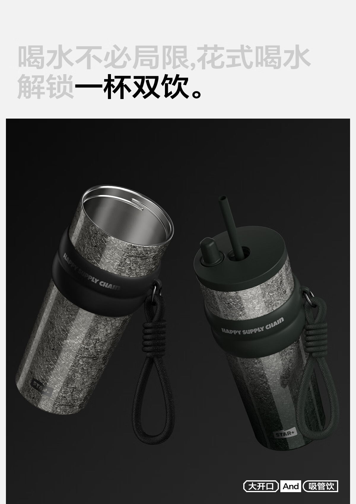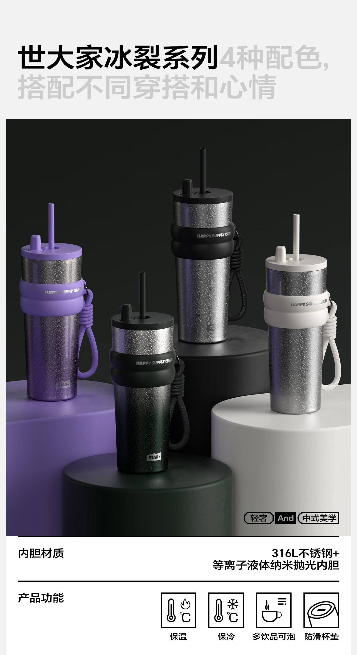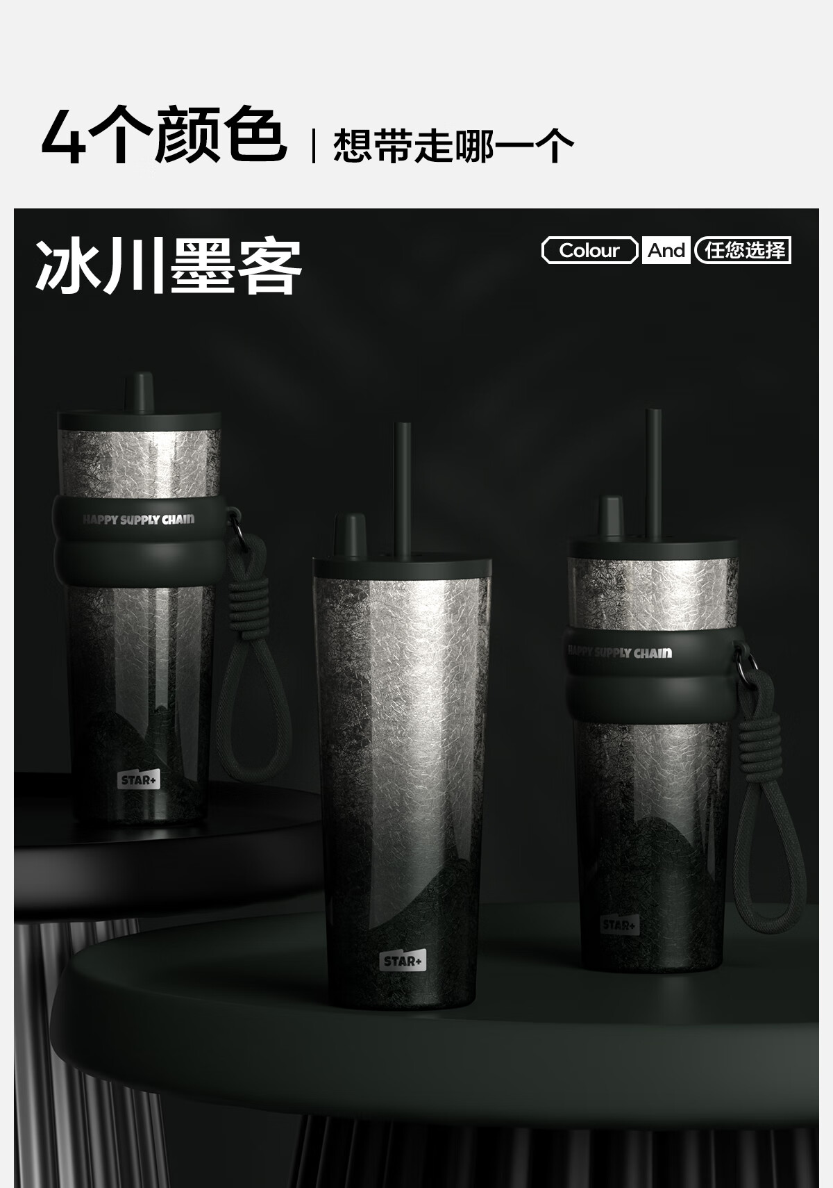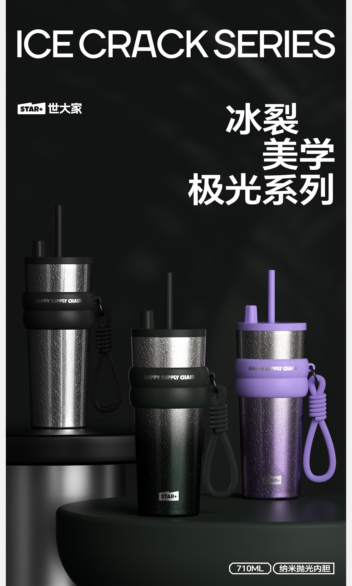 世大家冰裂纹保温杯女士高颜值2025新款水杯吸管学生车载保冷杯子 冰川墨客【纳米抛光内胆】