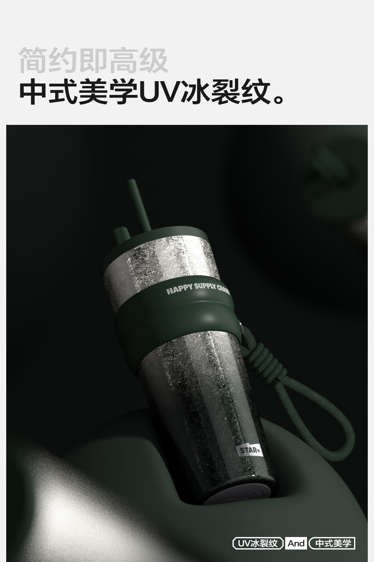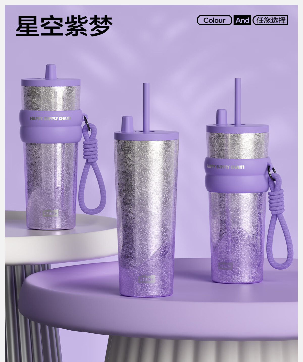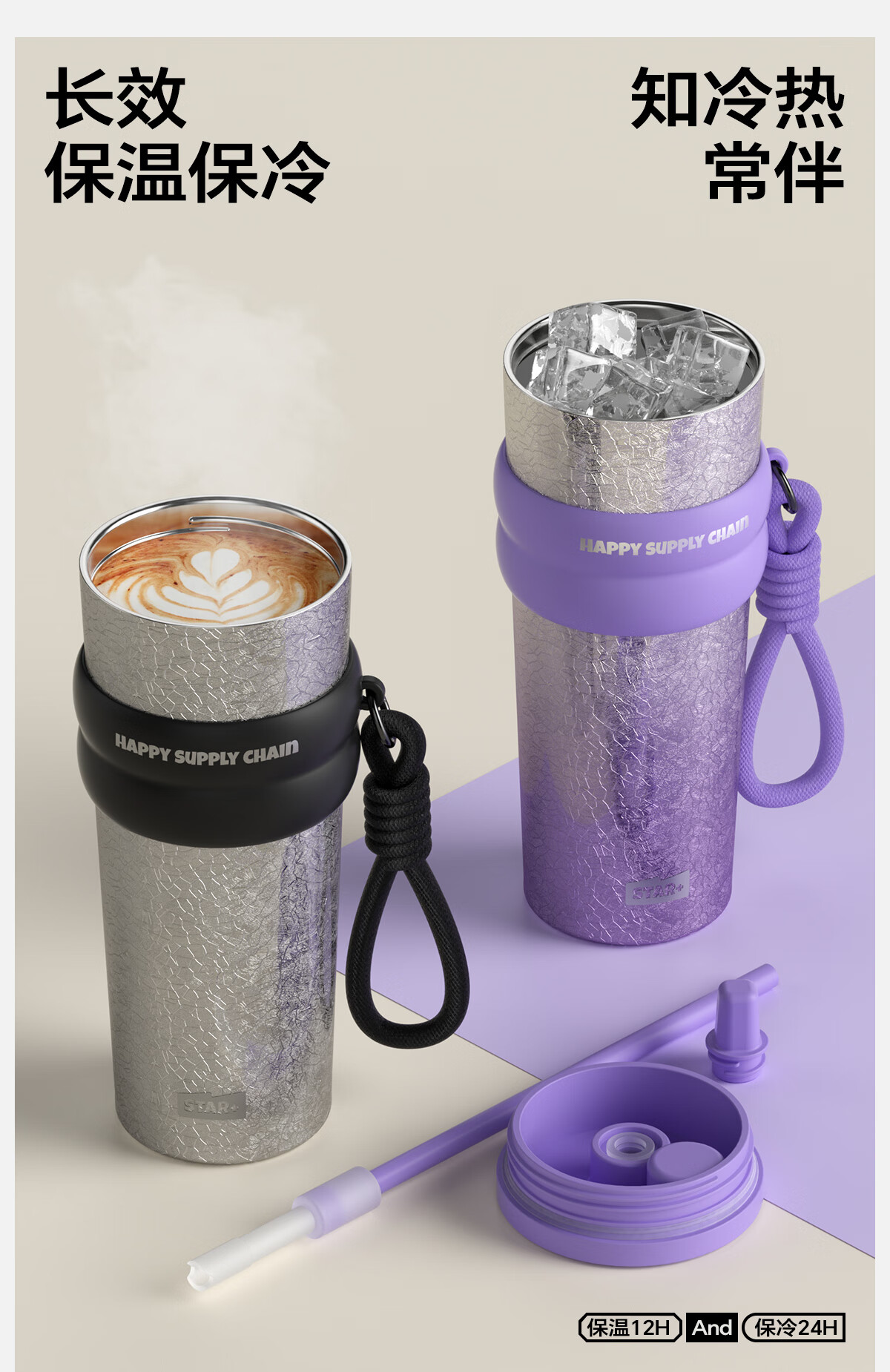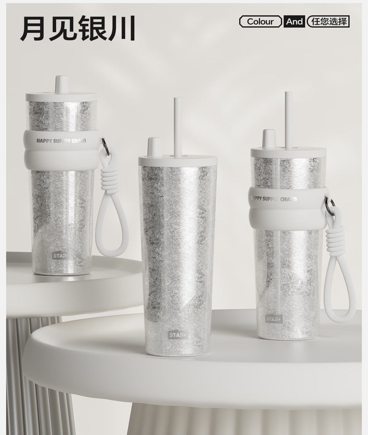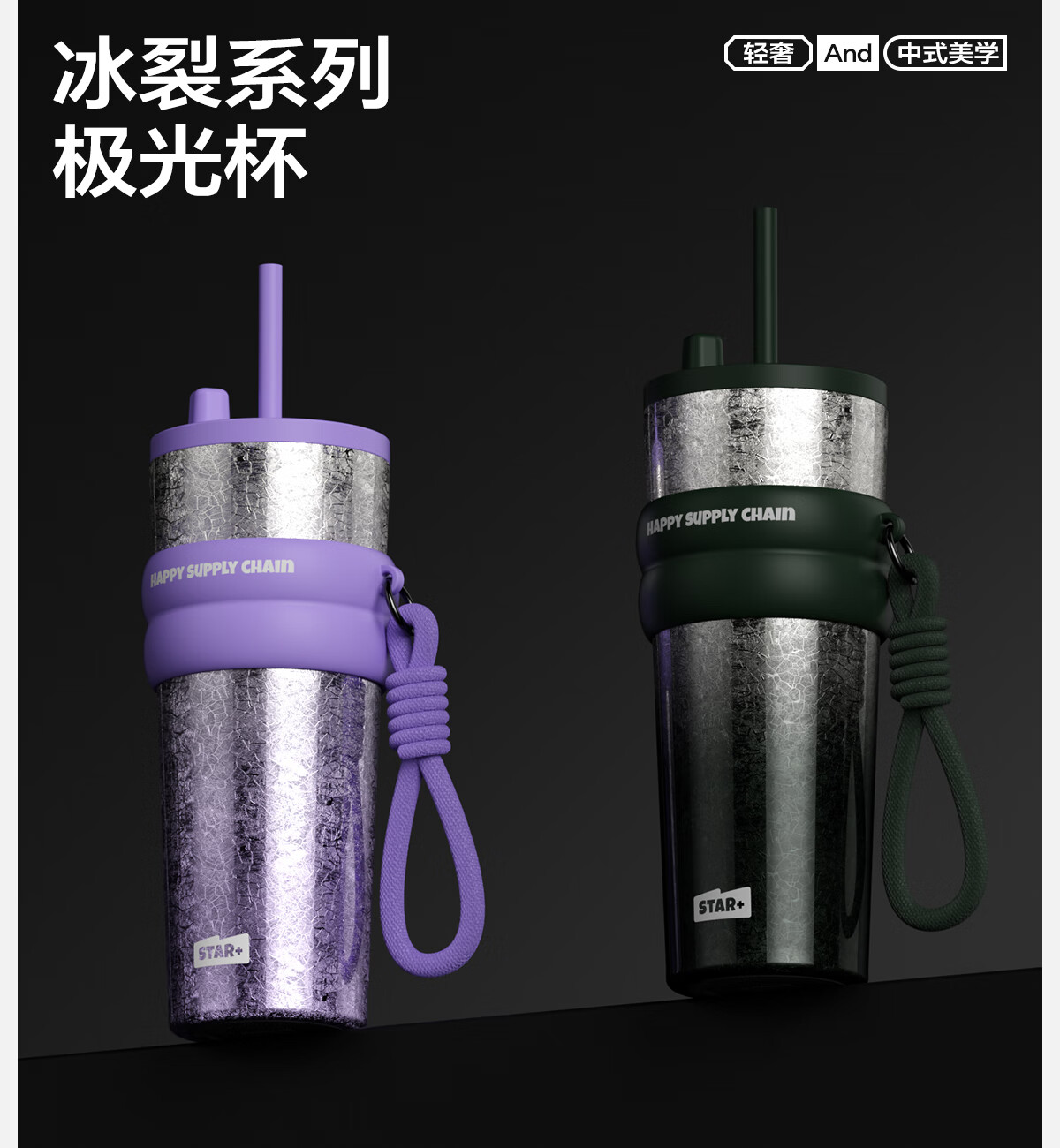 世大家冰裂纹保温杯女士高颜值2025新款水杯吸管学生车载保冷杯子 冰川墨客【纳米抛光内胆】