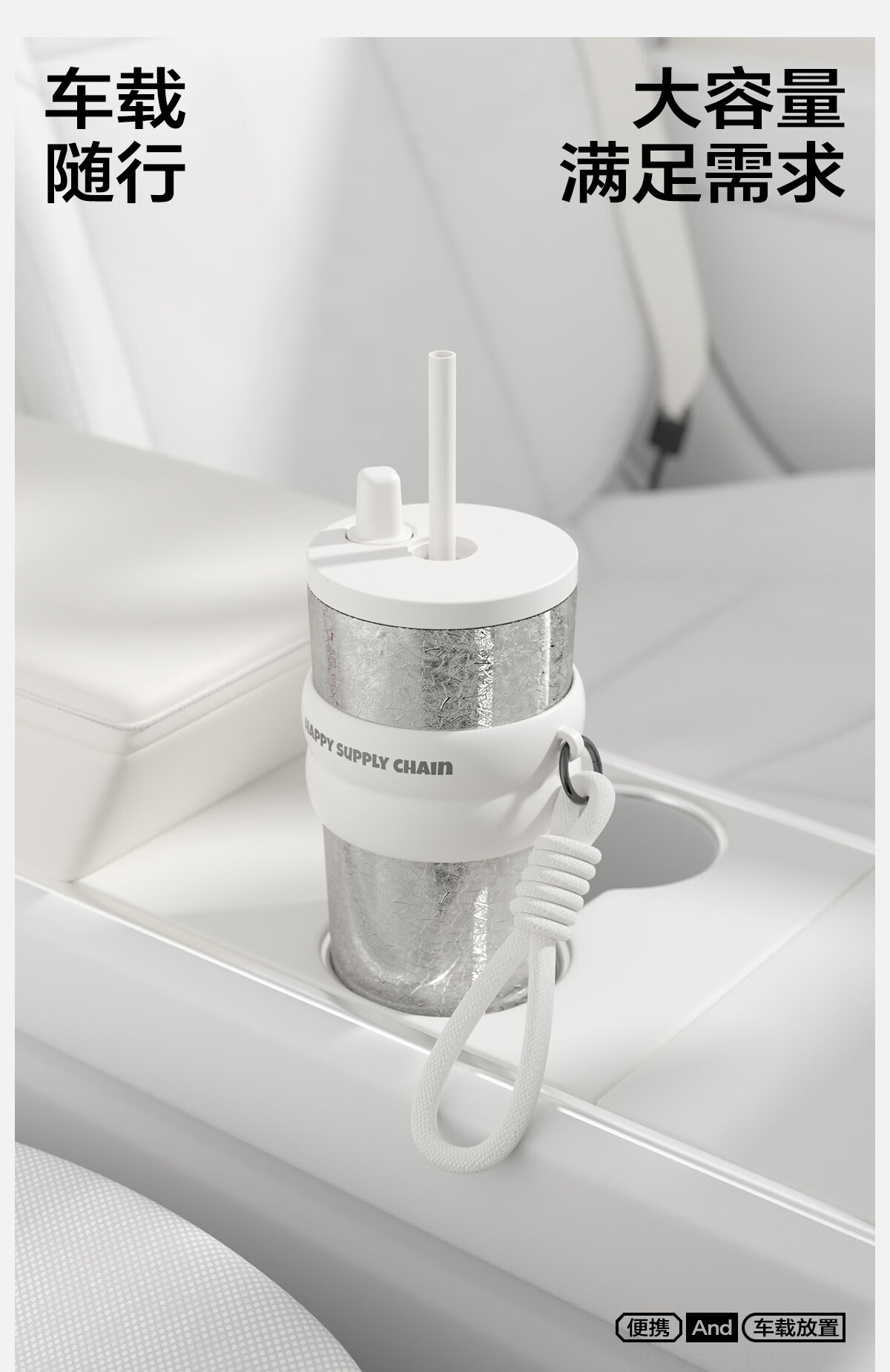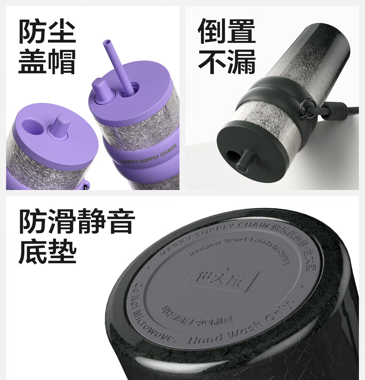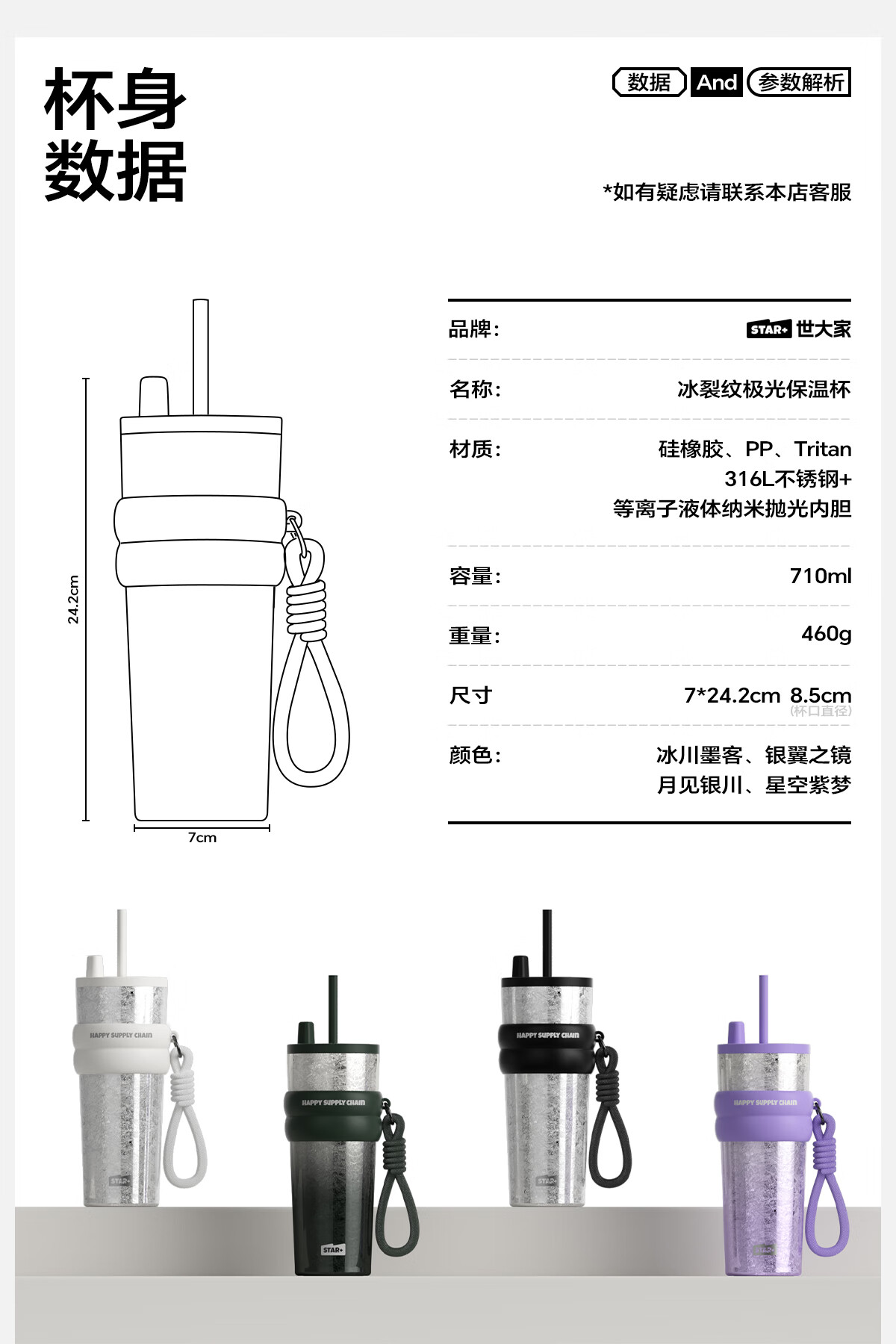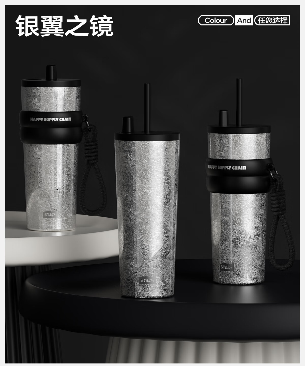 世大家冰裂纹保温杯女士高颜值2025新款水杯吸管学生车载保冷杯子 冰川墨客【纳米抛光内胆】