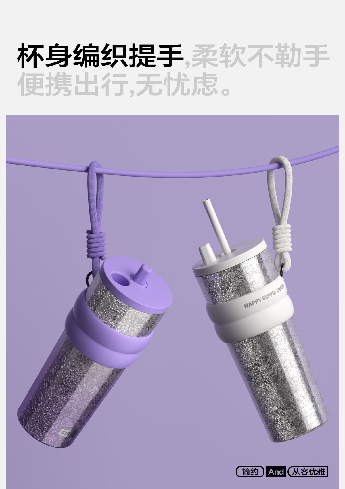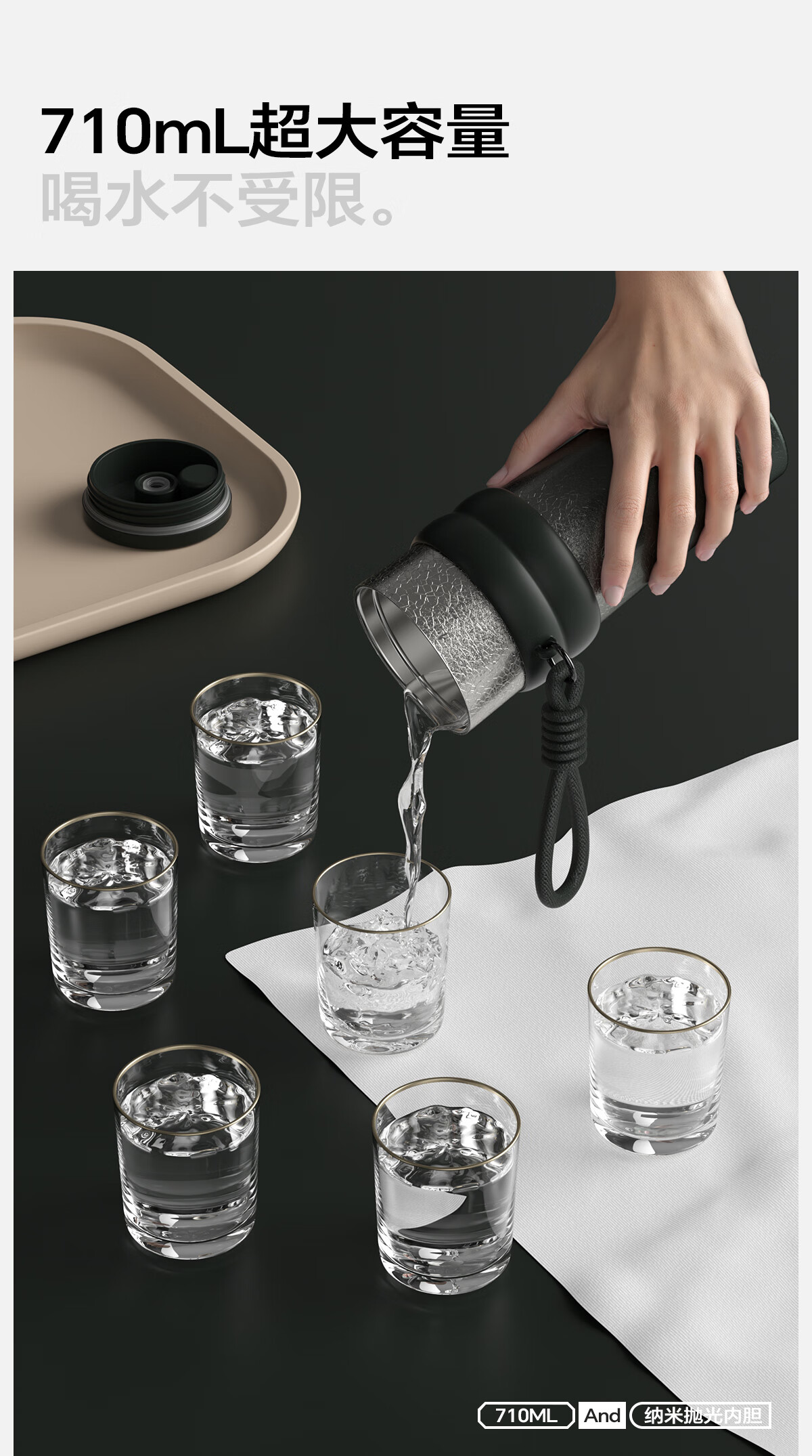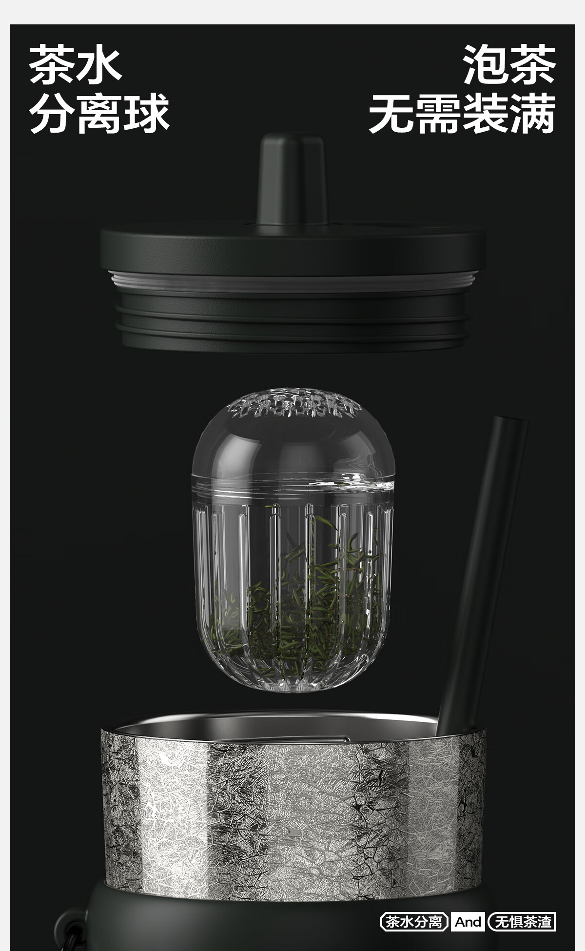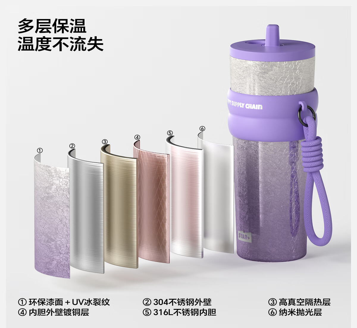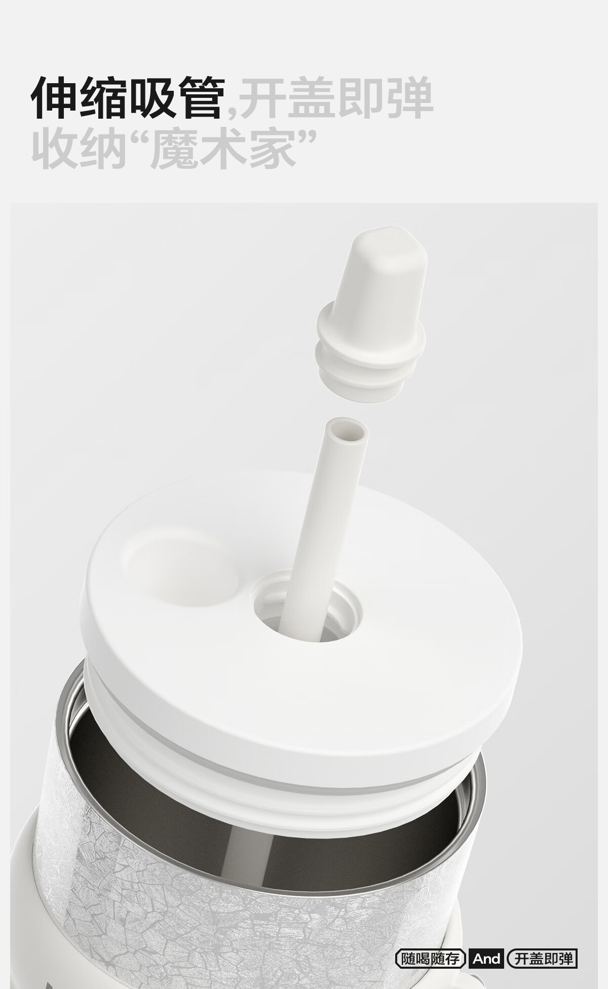 世大家冰裂纹保温杯女士高颜值2025新款水杯吸管学生车载保冷杯子 冰川墨客【纳米抛光内胆】