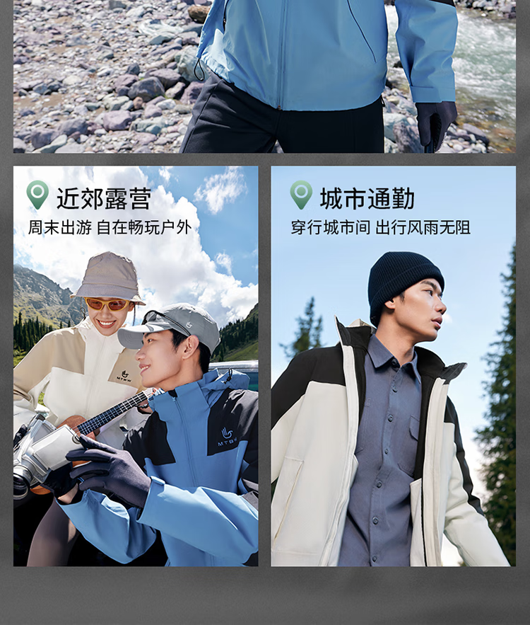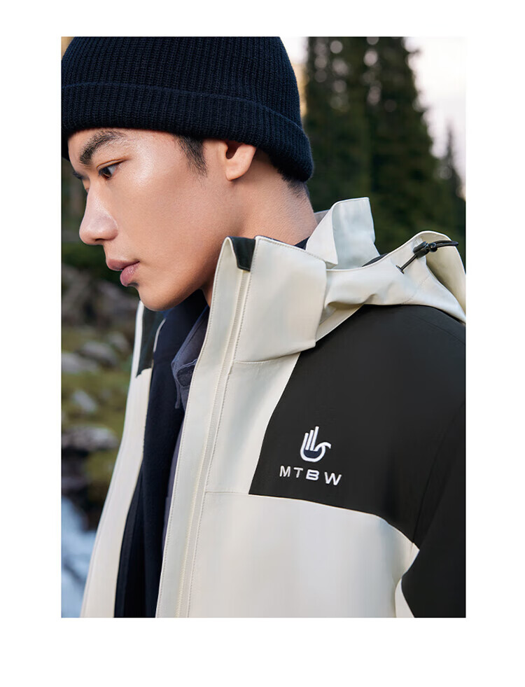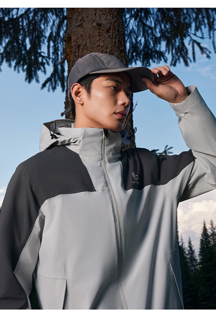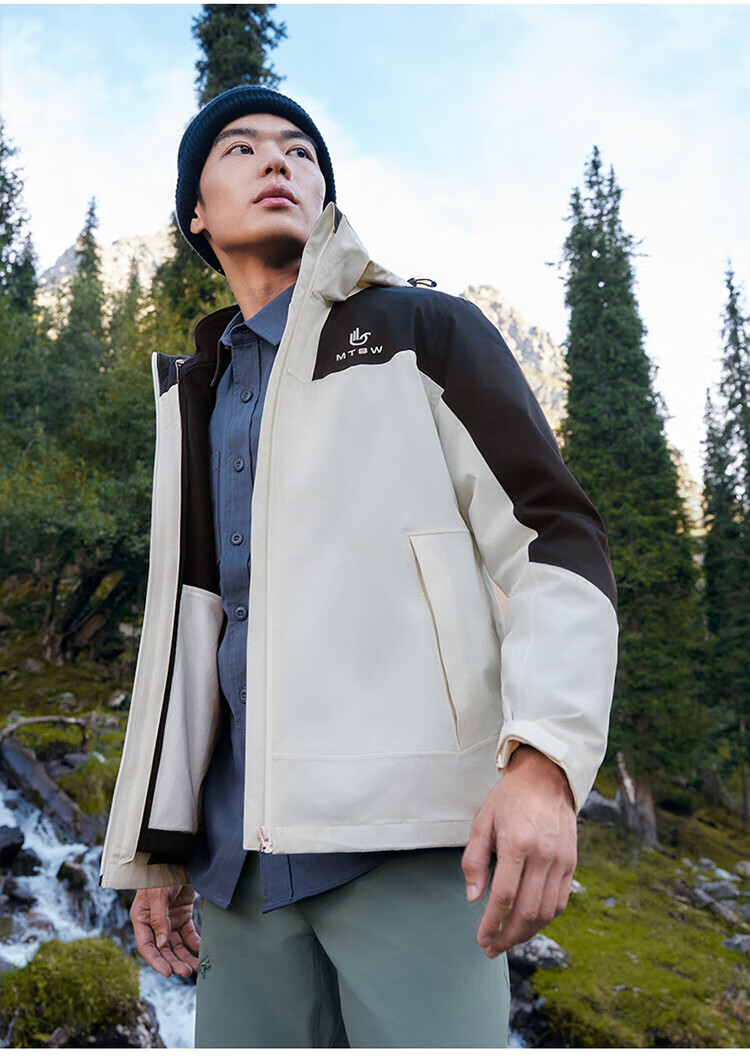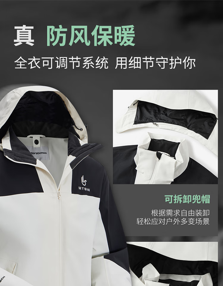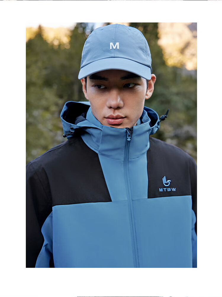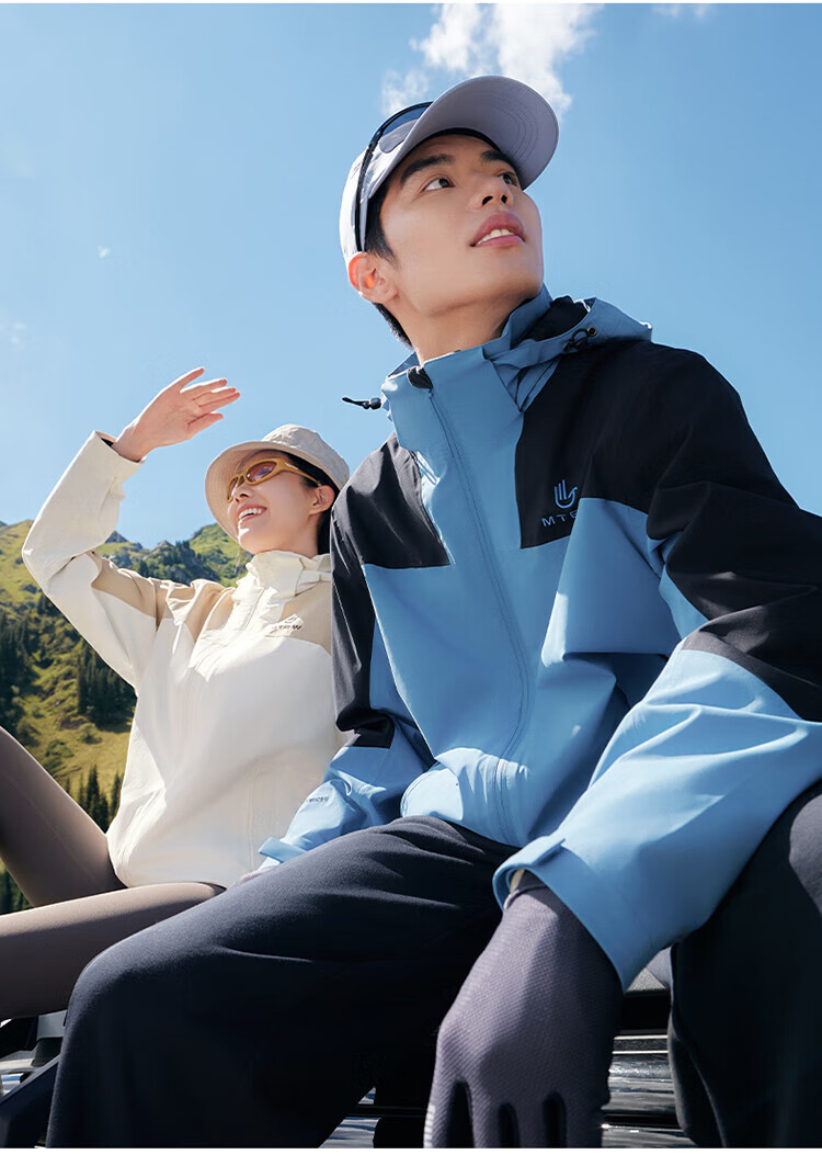 美特斯邦威(Meters Bonwe)男女拼色摇粒绒内胆冲锋衣25年春季新款时尚三防登山服 黑蓝组 单冲 M 170