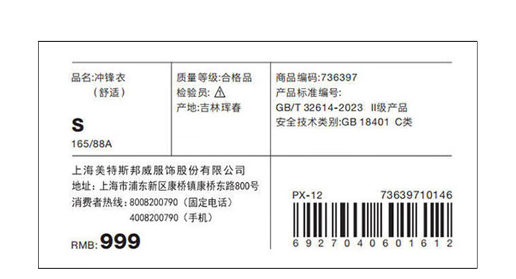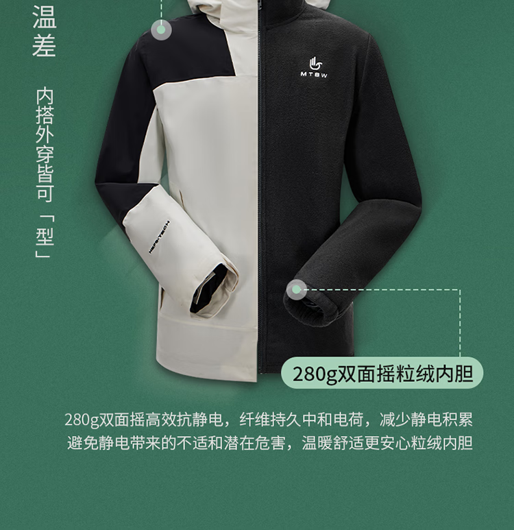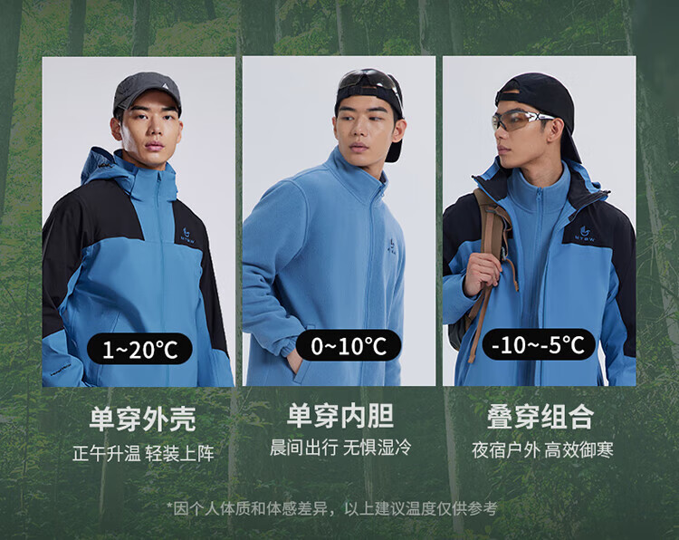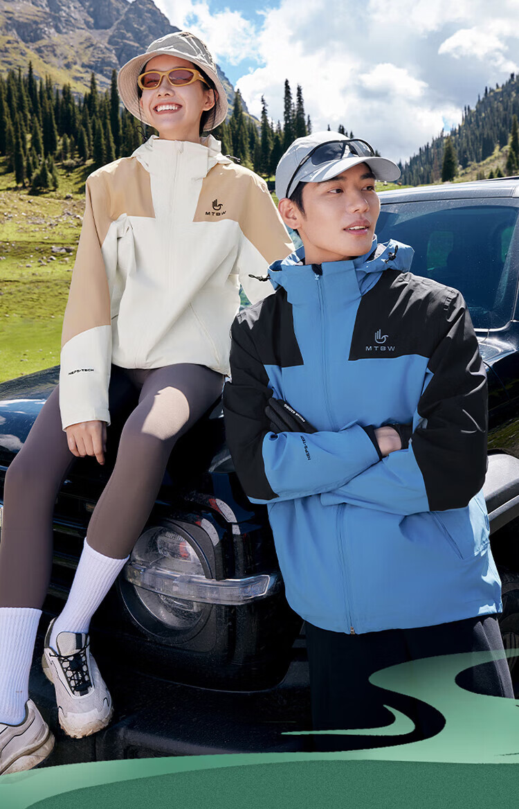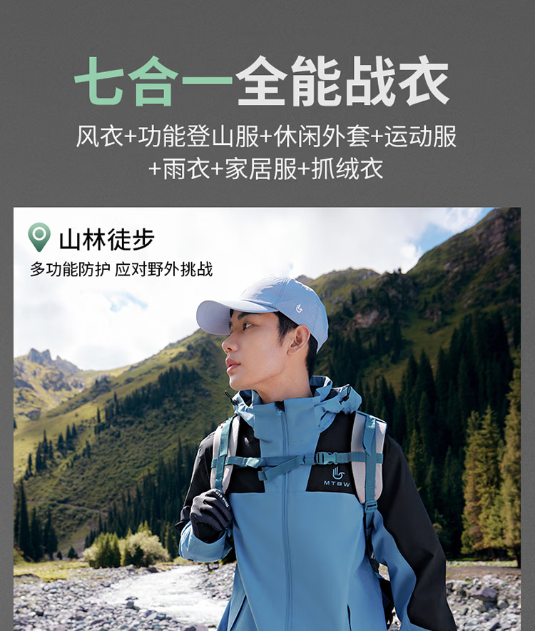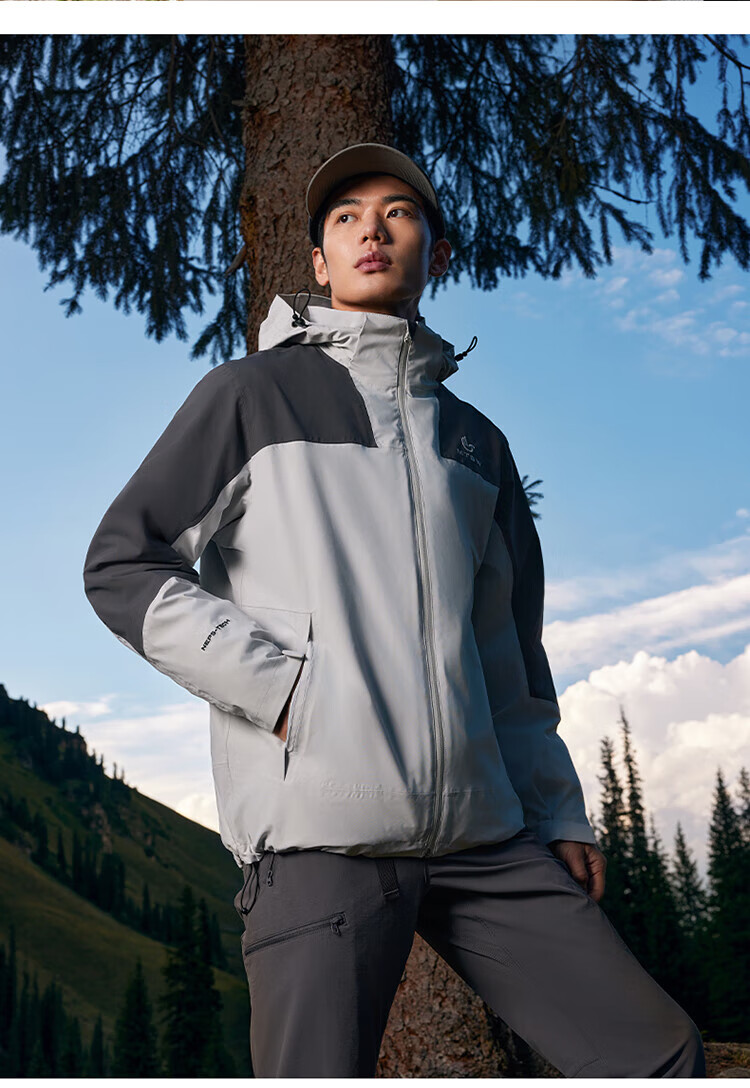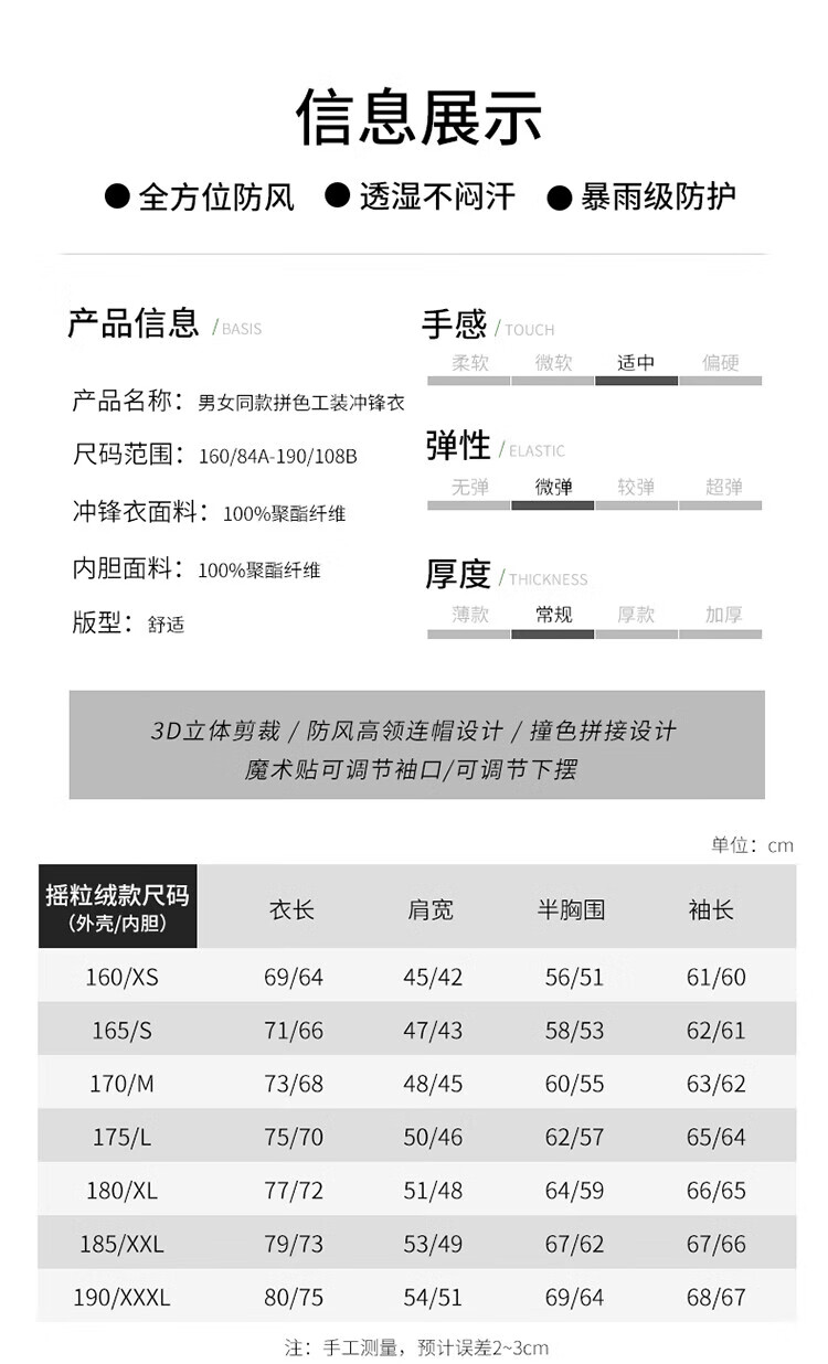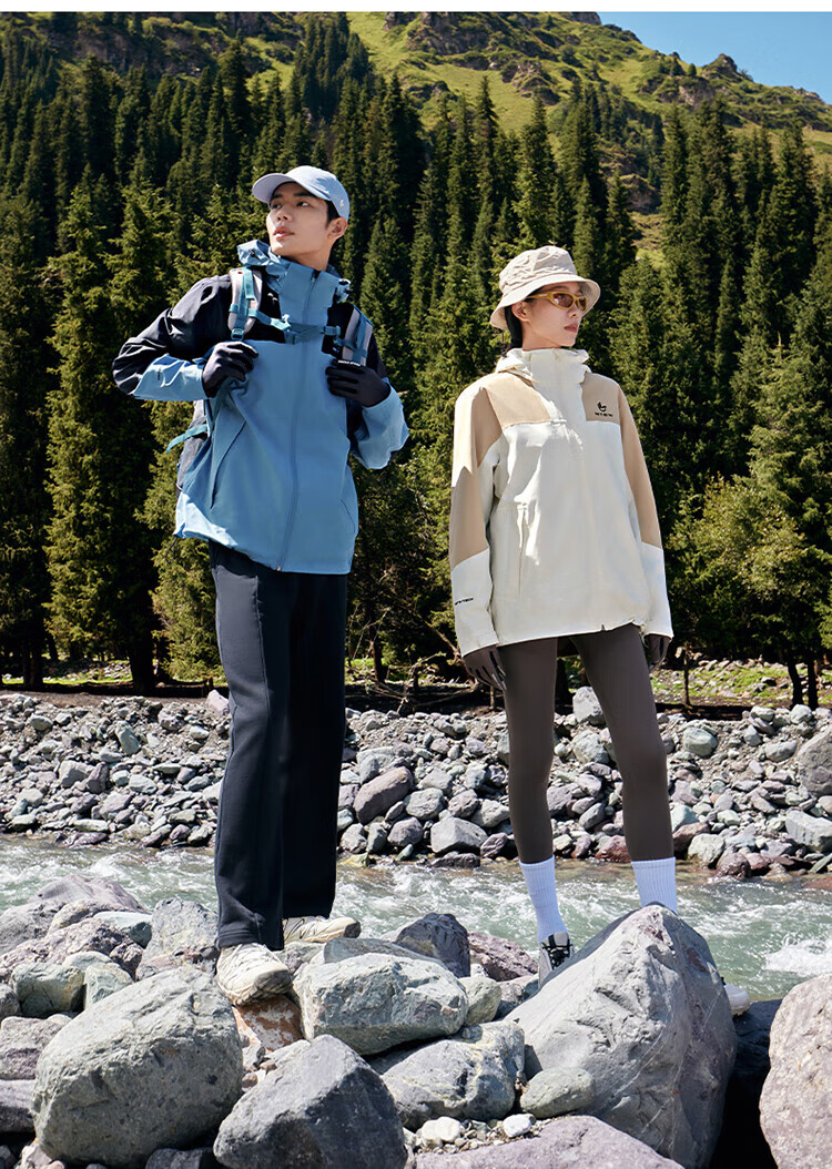 美特斯邦威(Meters Bonwe)男女拼色摇粒绒内胆冲锋衣25年春季新款时尚三防登山服 黑蓝组 单冲 M 170