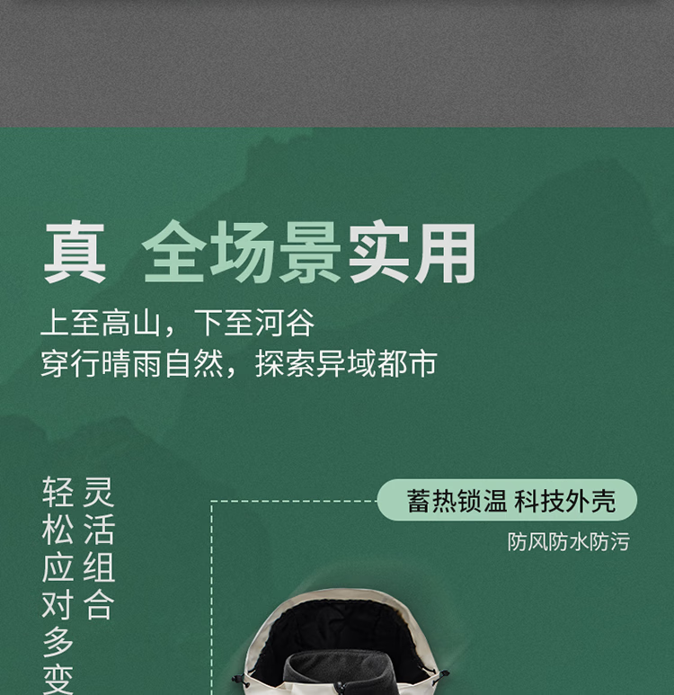 骆驼三合一羽绒服男女士秋冬季白鸭绒加厚保暖情侣外套城市轻户外 幻影黑 XL