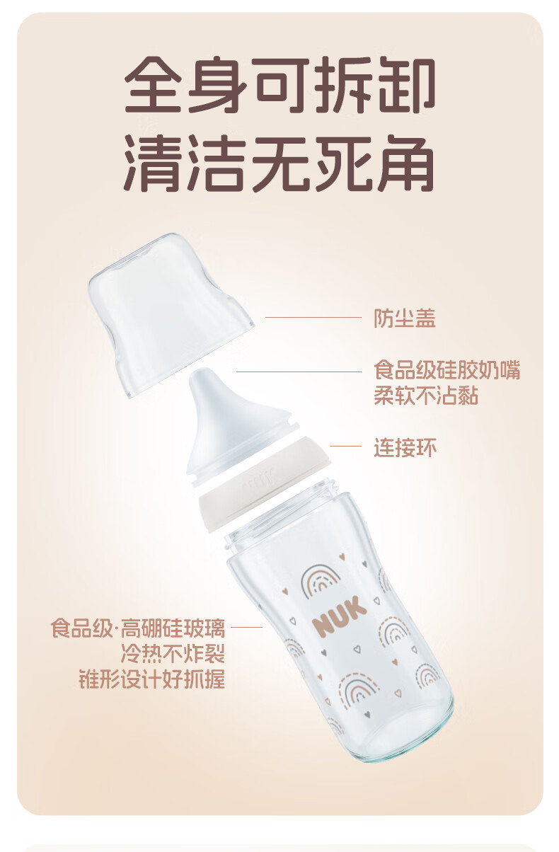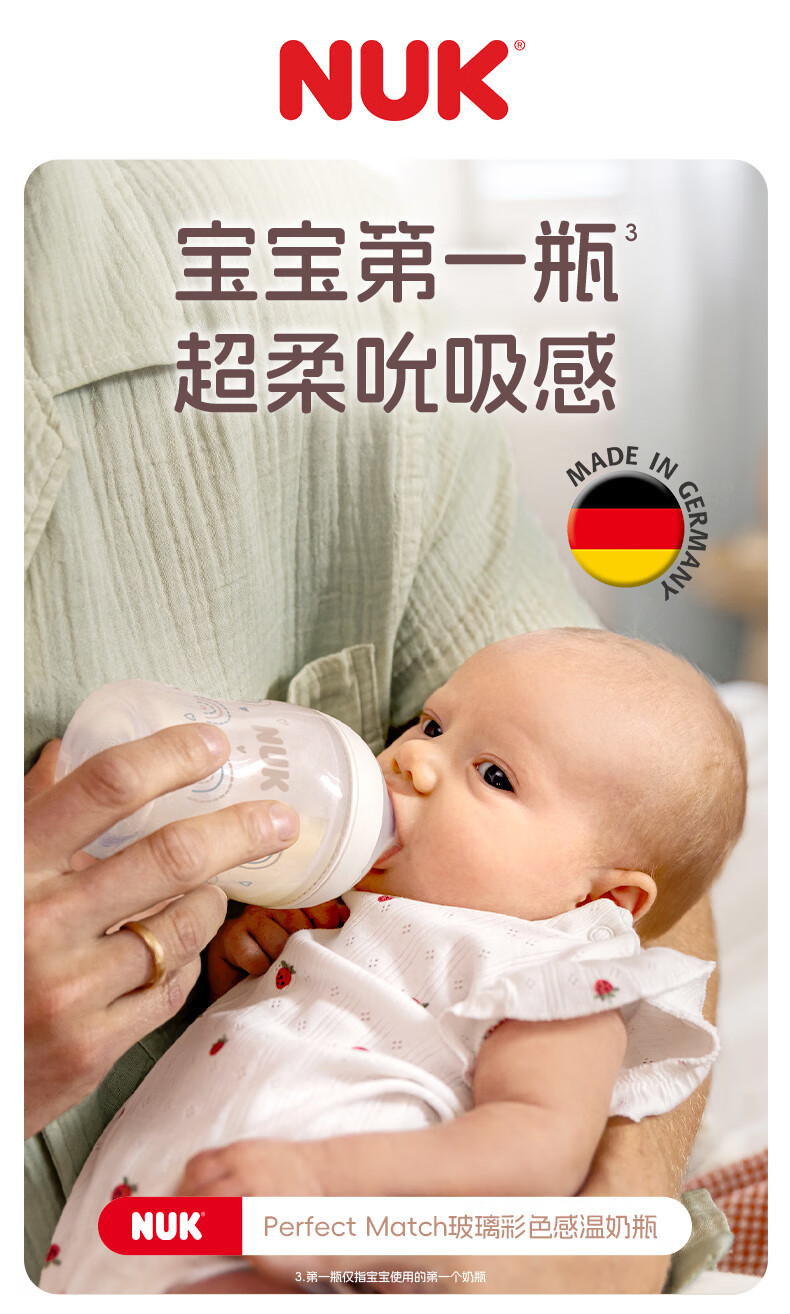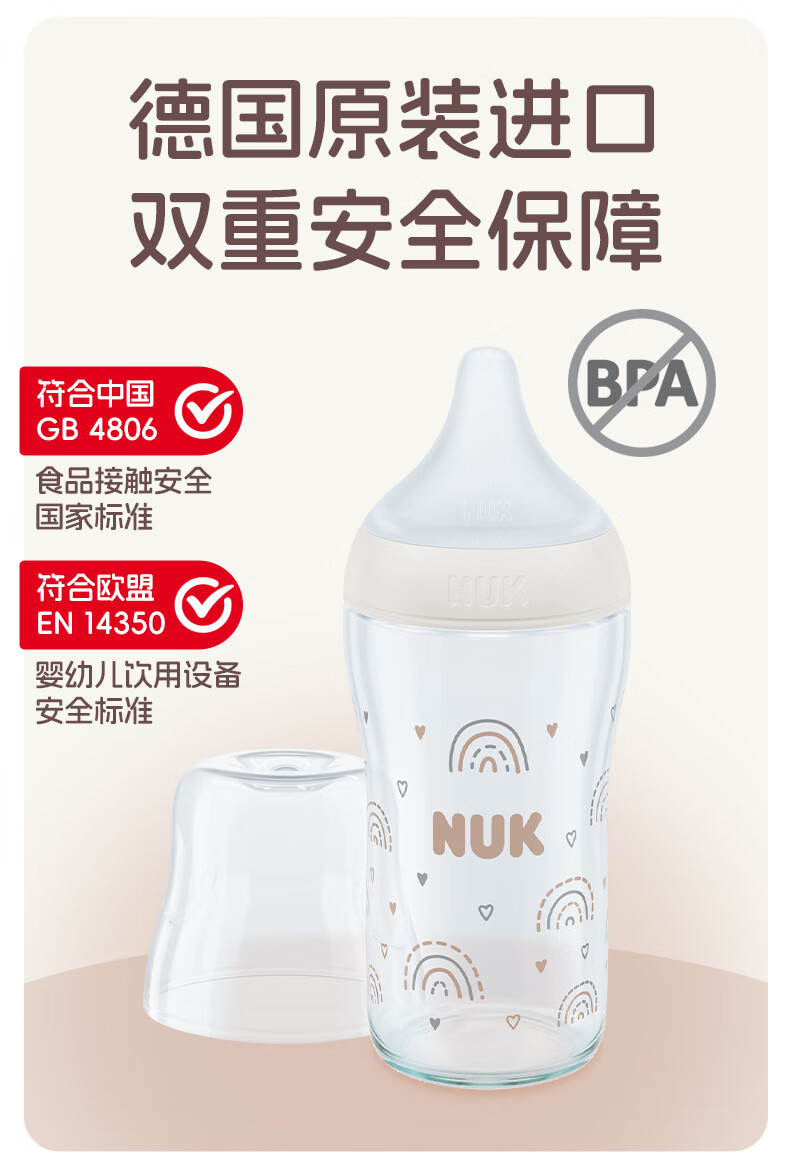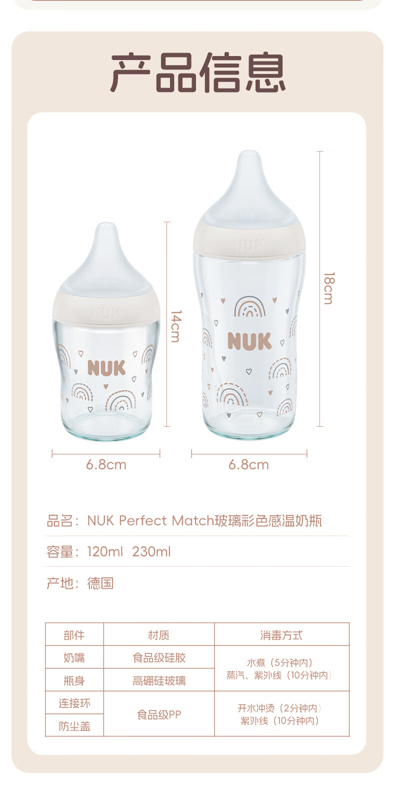 NUK进口PerfectMatch玻璃奶瓶 防呛防胀气120ml带0月龄以上奶嘴