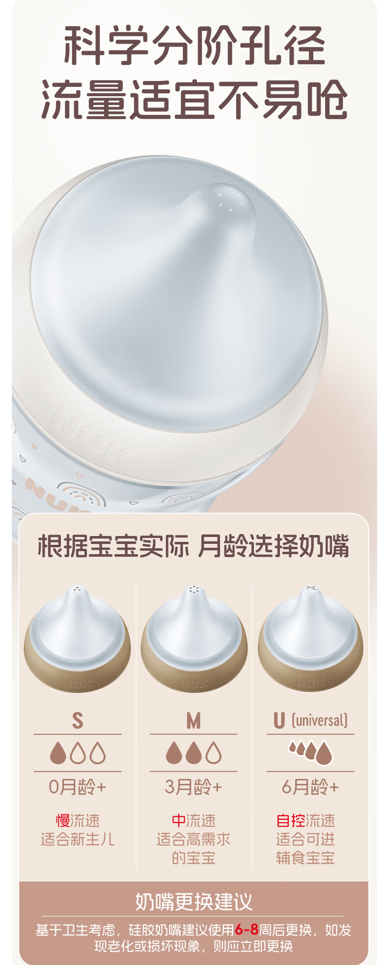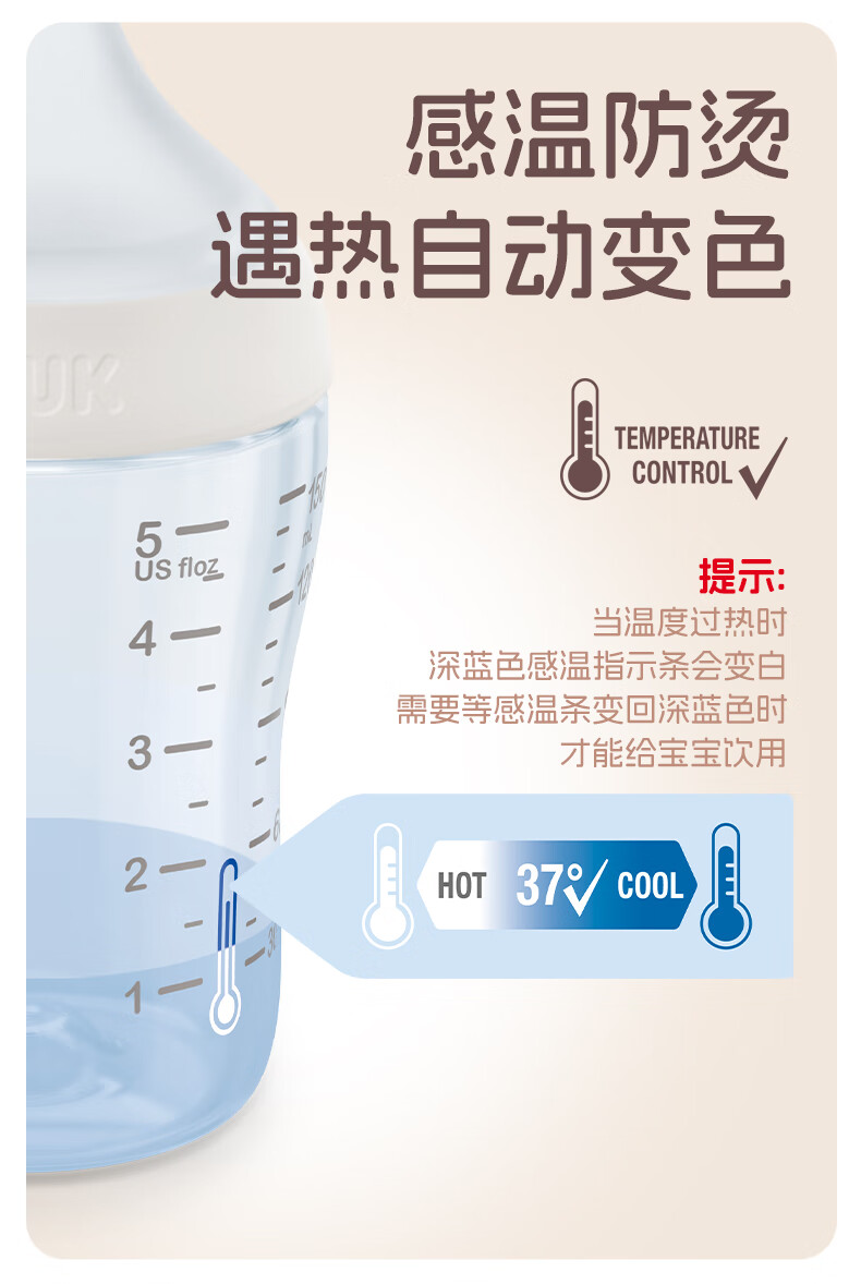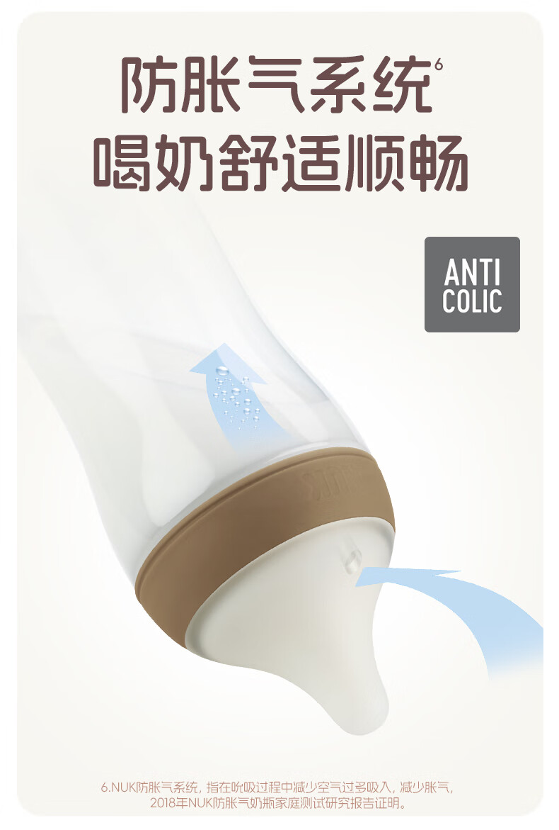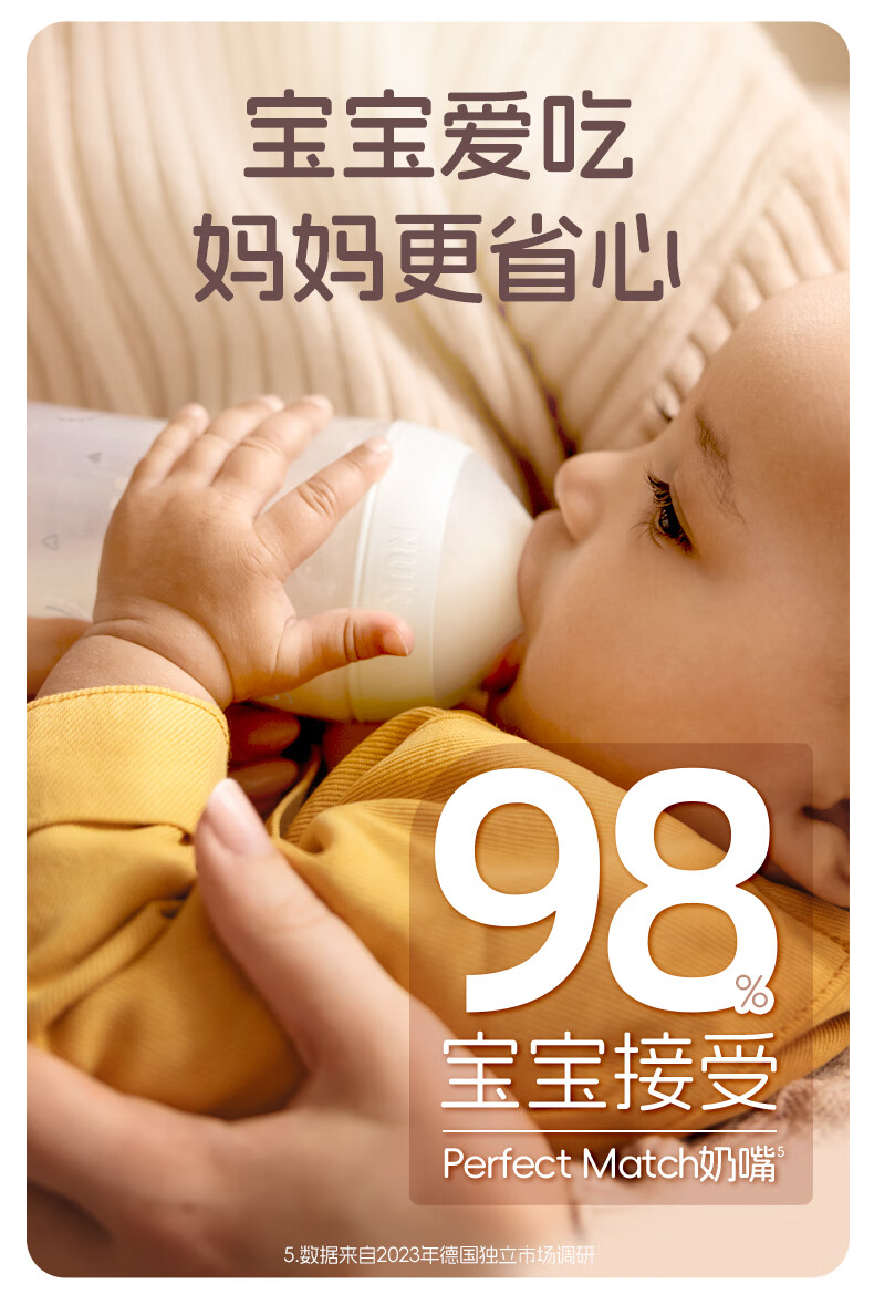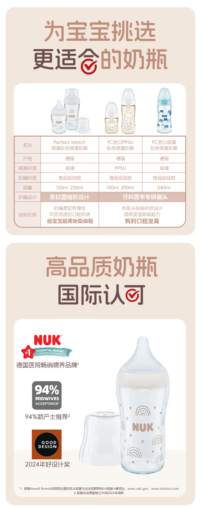 NUK进口PerfectMatch玻璃奶瓶 防呛防胀气120ml带0月龄以上奶嘴