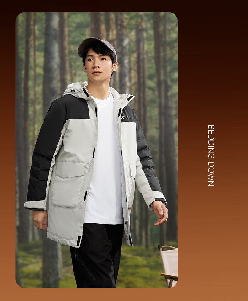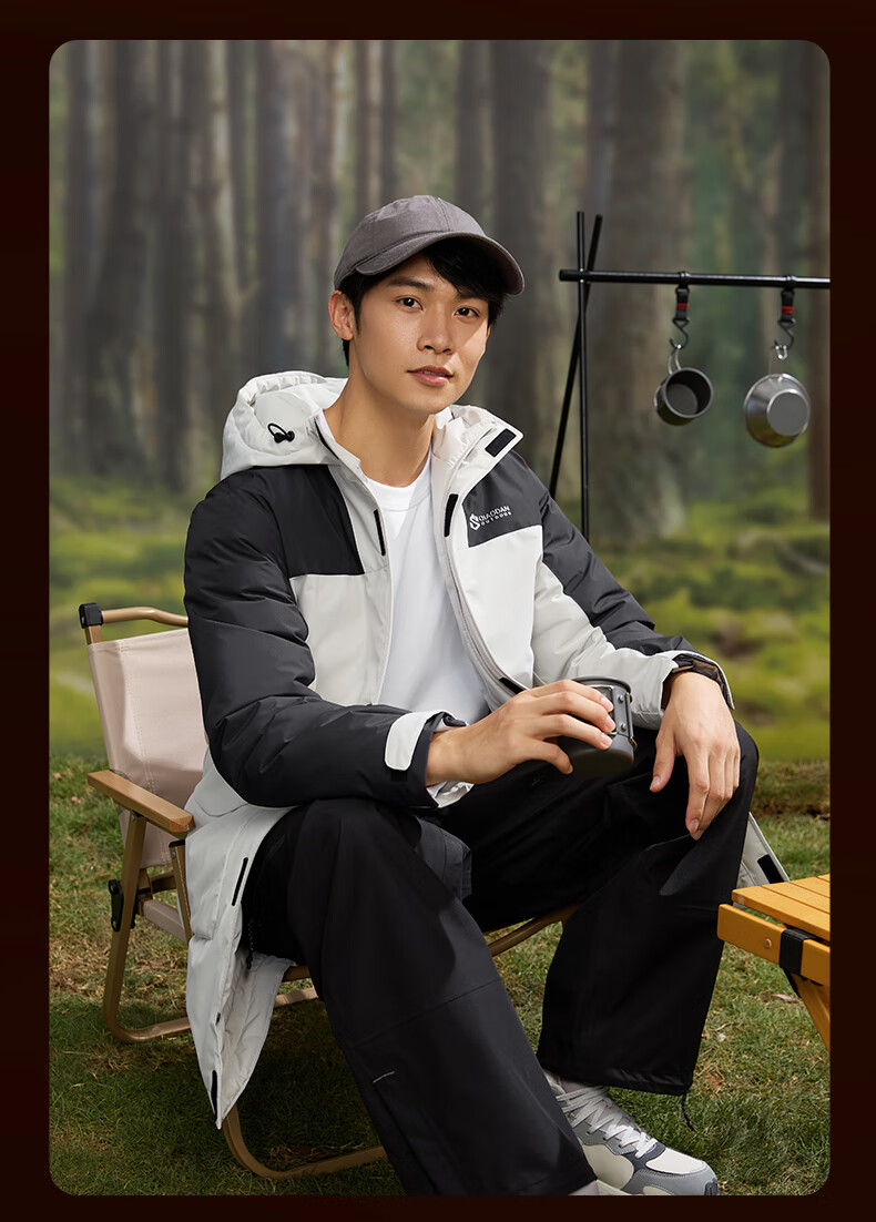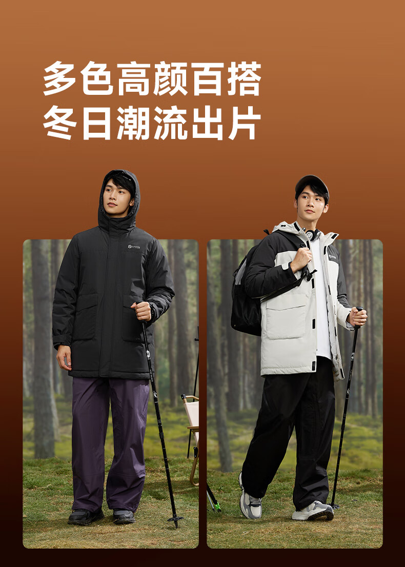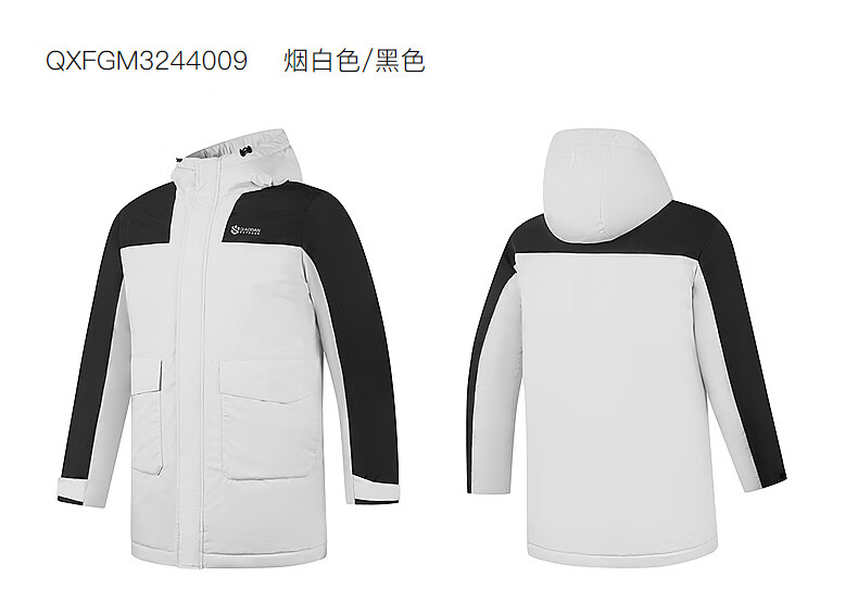 乔丹山神中长款羽绒服男外套冬季保暖防风防泼水连帽运动户外上衣 烟白色/黑色 3XL