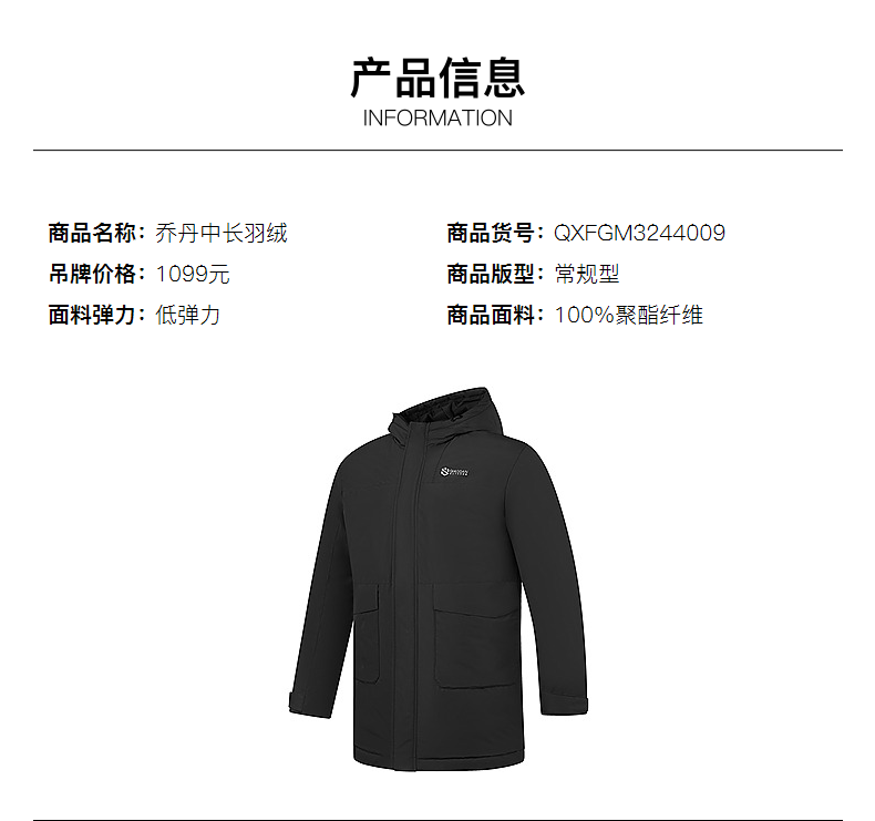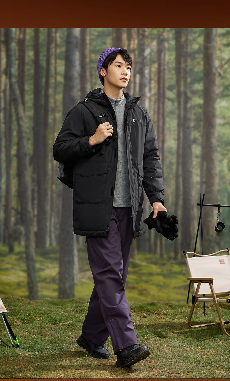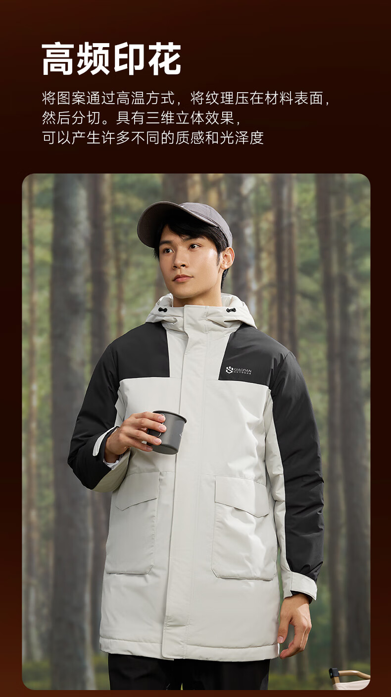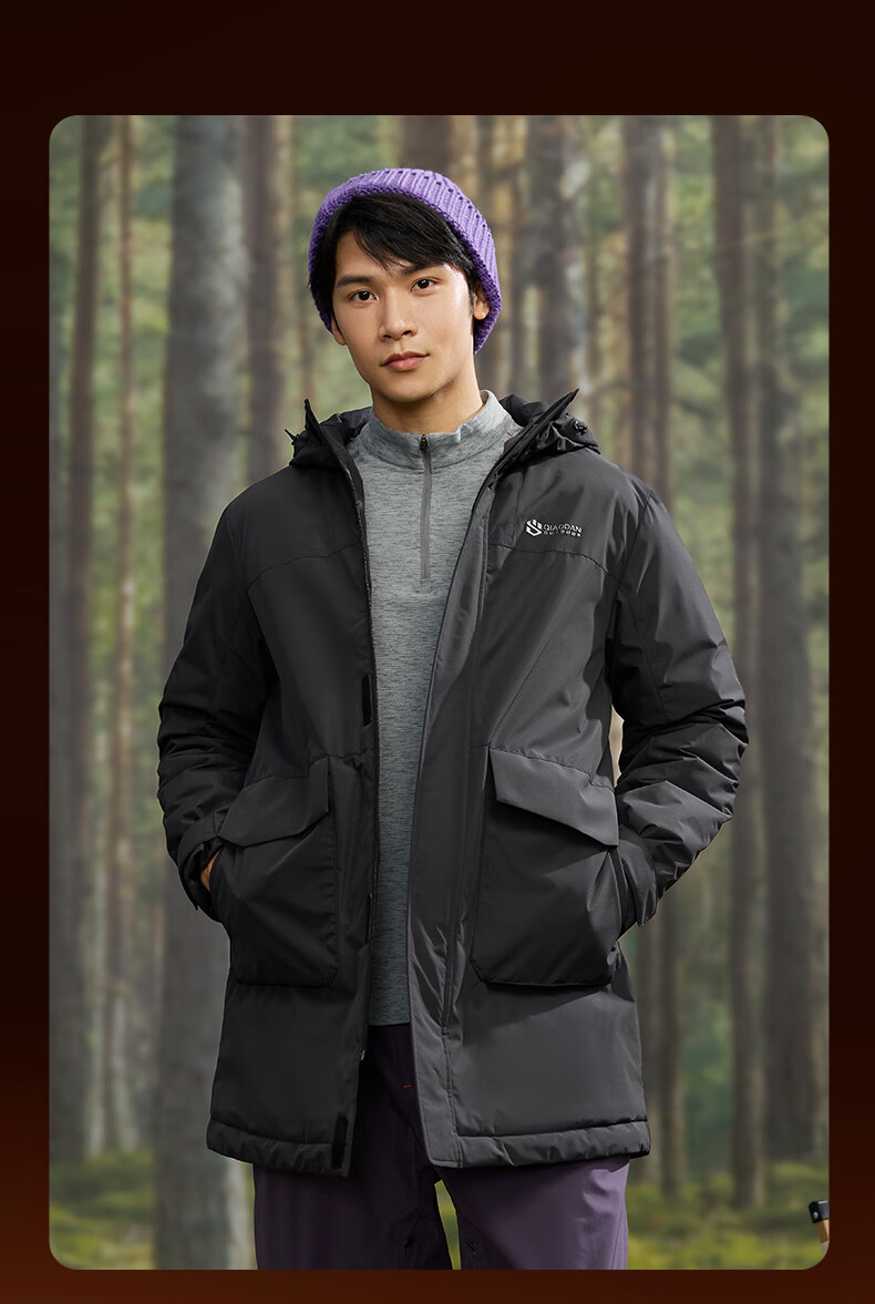 乔丹山神中长款羽绒服男外套冬季保暖防风防泼水连帽运动户外上衣 烟白色/黑色 3XL