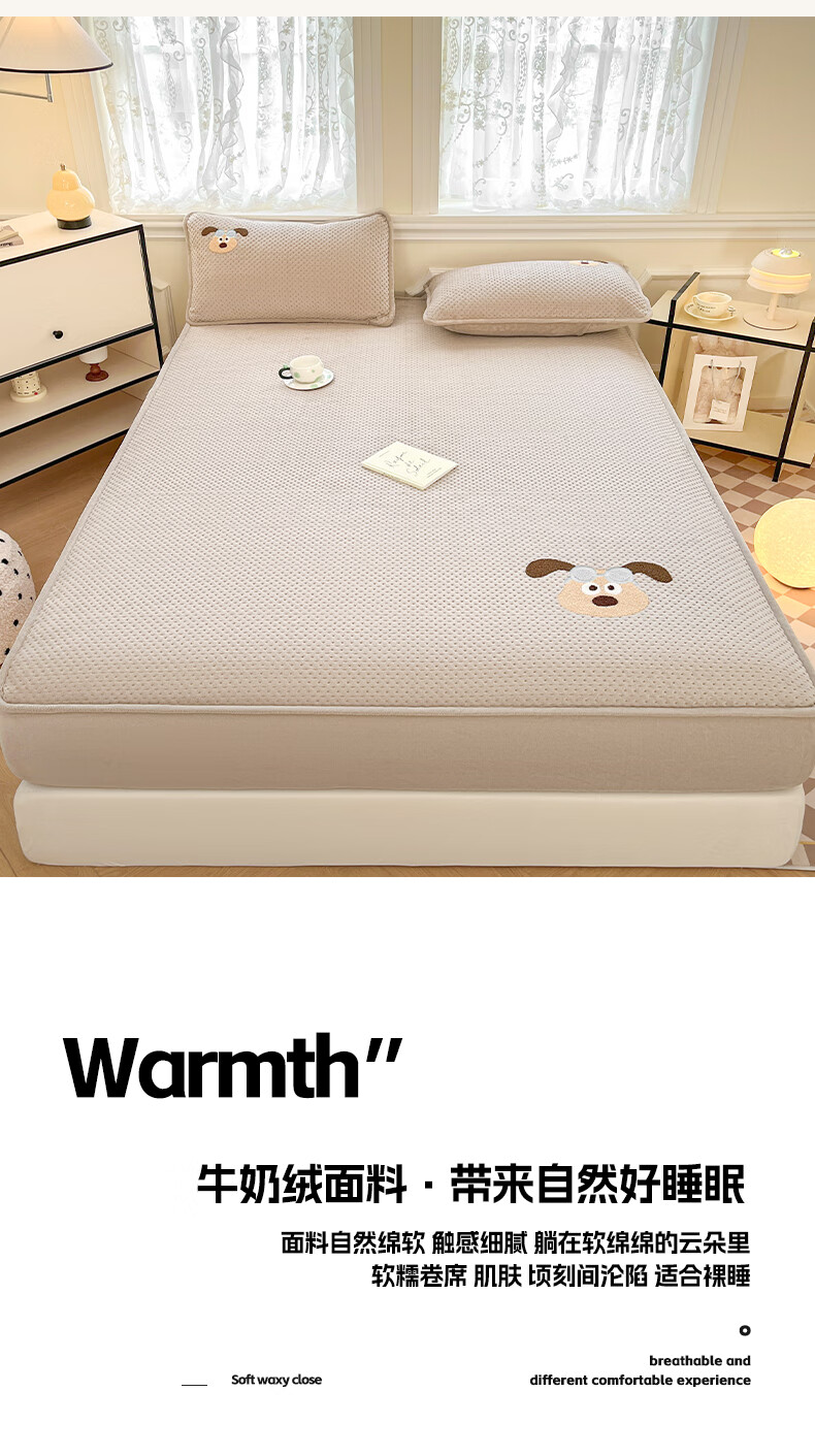 猫人冬季加厚牛奶绒夹棉床笠单件加绒床套席梦思床垫套儿童珊瑚绒床单 冰雪蓝【加厚蓄热保暖】 单床笠150x200cm【适4-28cm床垫】
