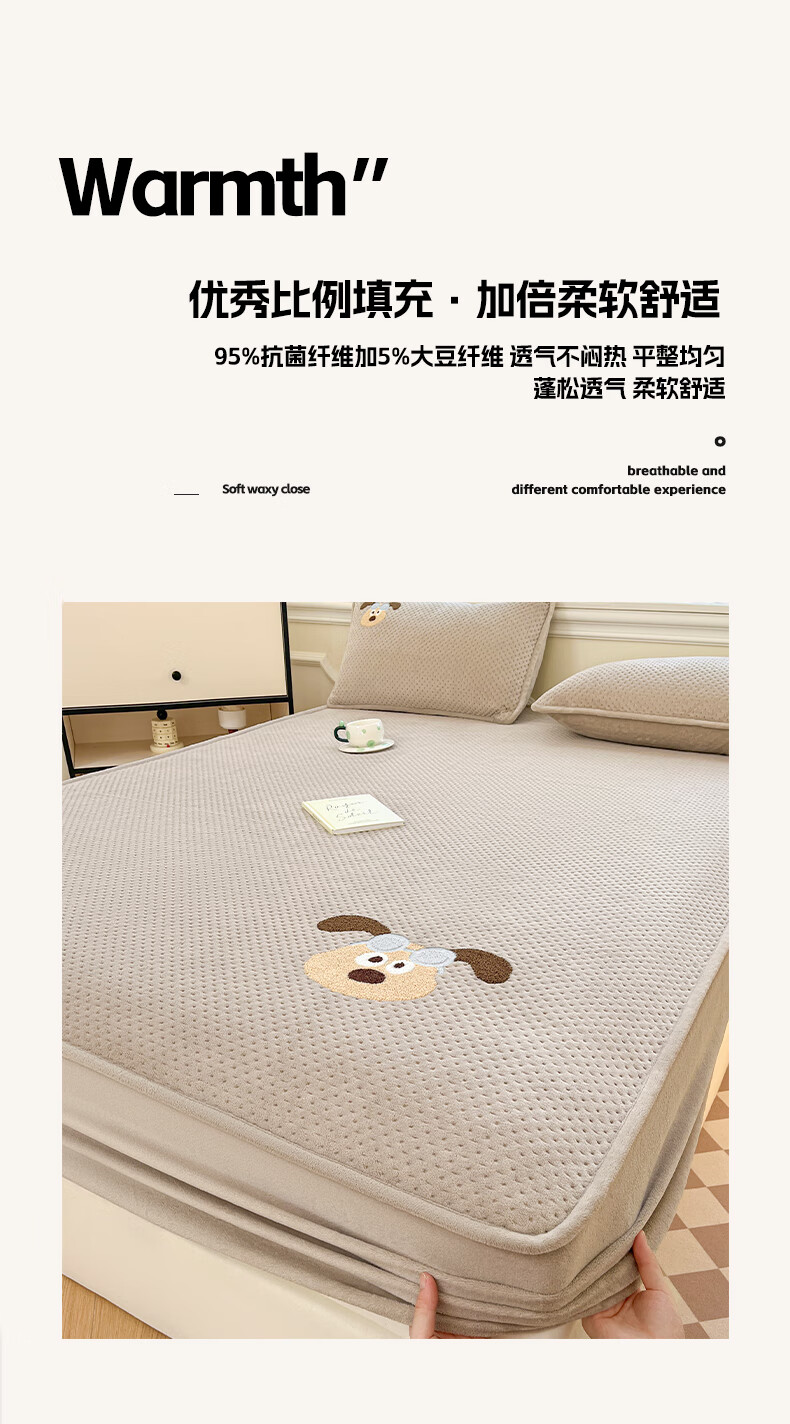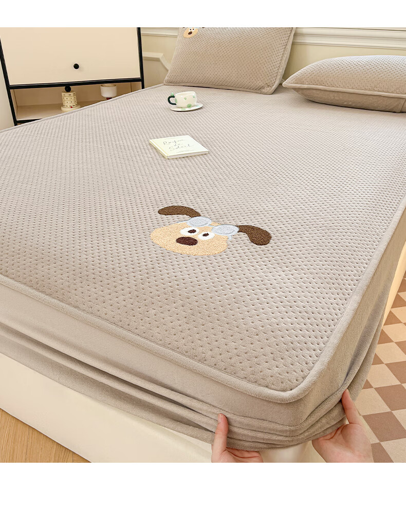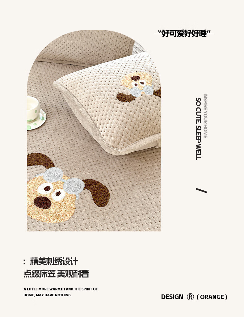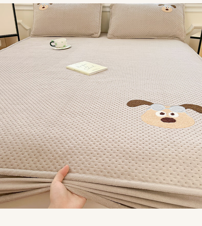 软贝小清新牛奶绒床上四件套保暖毛绒床单被套学生宿舍秋冬款三件套 咔咔小熊 床单款 2.0m 被套200*230cm 四件套