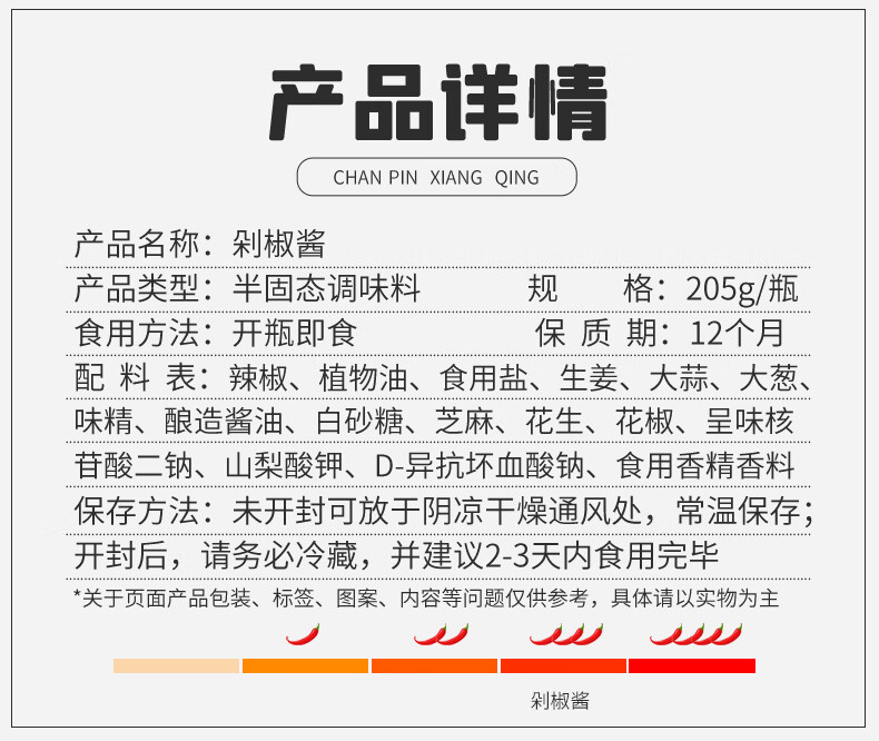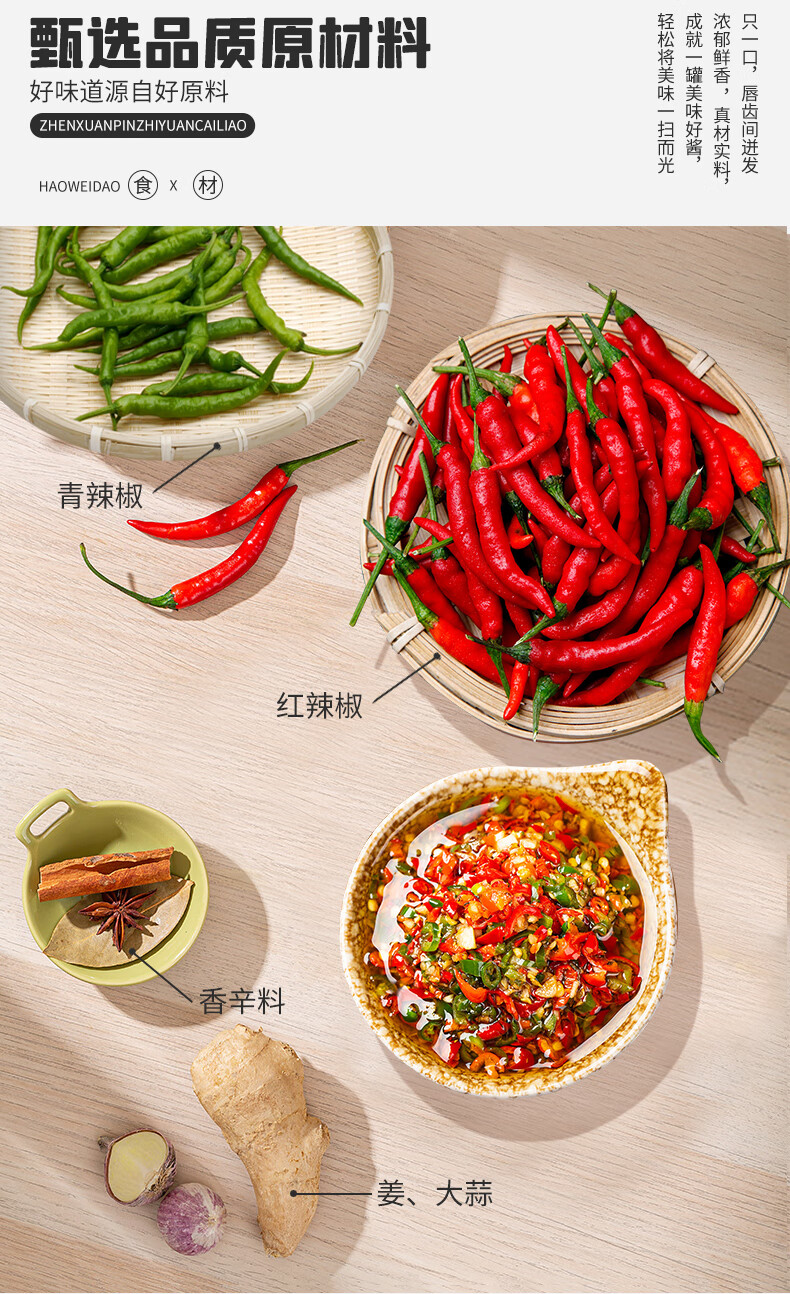 饭扫光辣椒酱 剁椒酱205g 下饭菜榨菜 香辣咸菜泡菜 拌饭拌面调味料