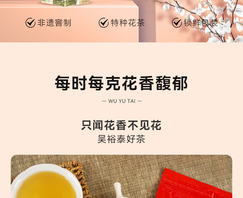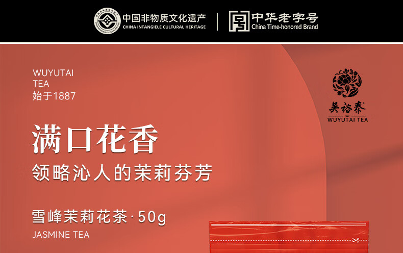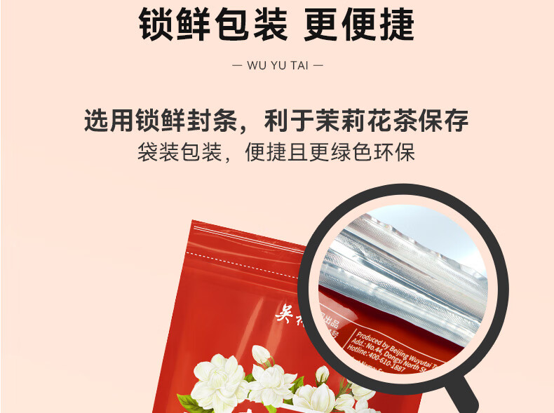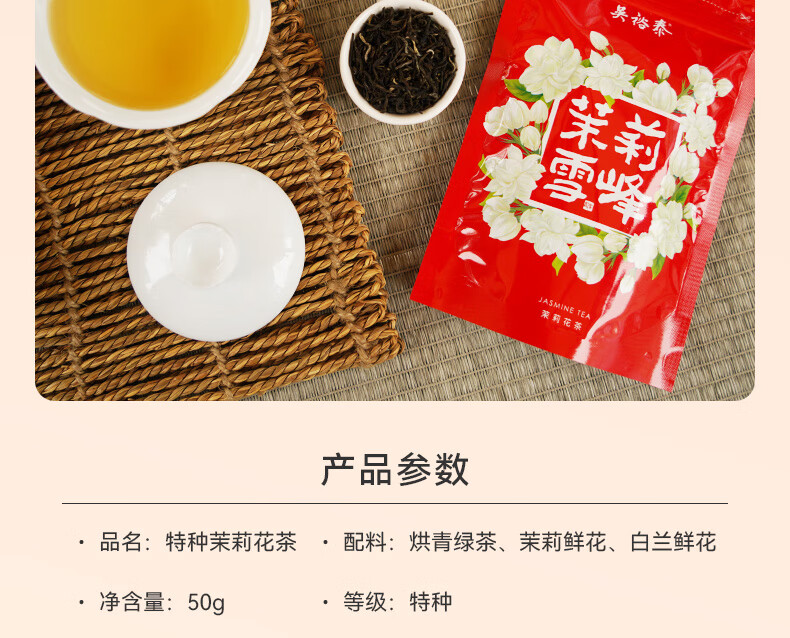 吴裕泰茶叶茉莉花茶特种浓香口粮茶 雪峰2袋+金尖2袋 共200g组合