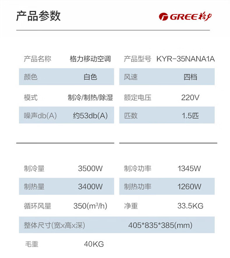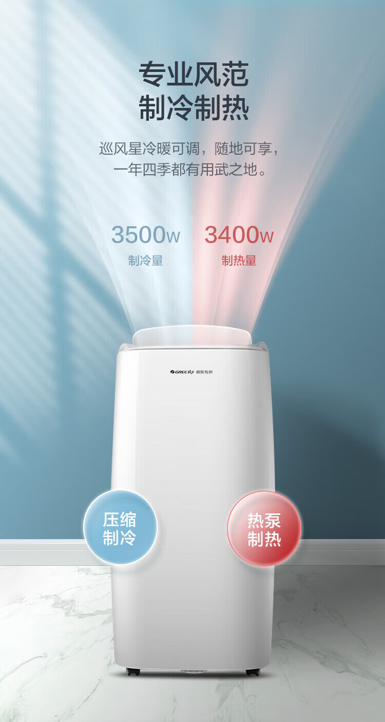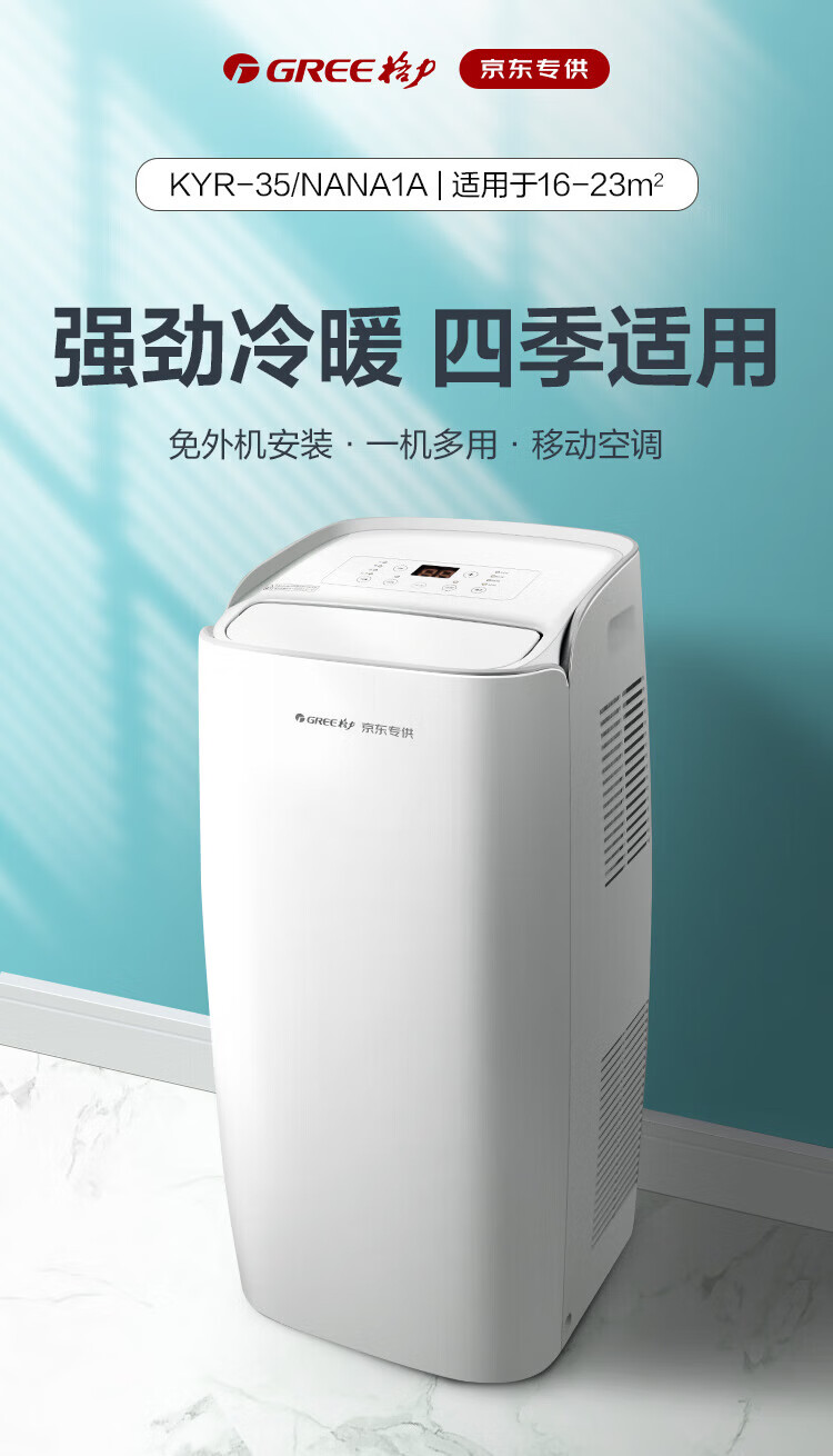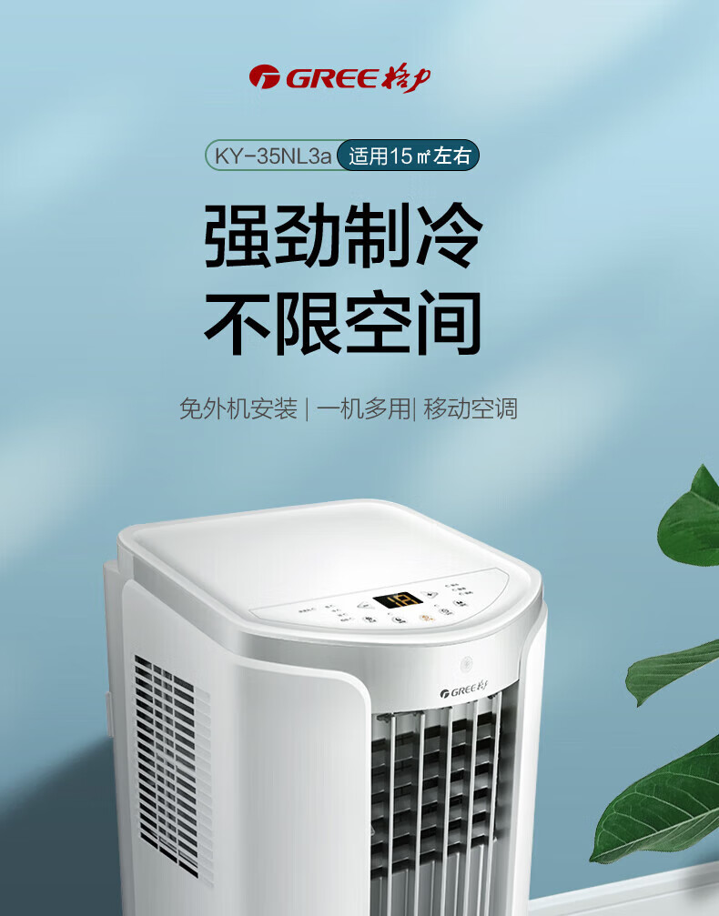 格力(GREE)移动空调冷暖1.5匹 无外机空调一体机可移动便携式除湿立式小空调卧室客厅厨房空调 冷暖/单冷 1.5匹 单冷 KY-35NL3a