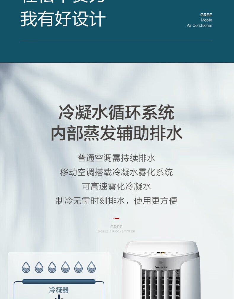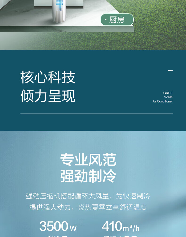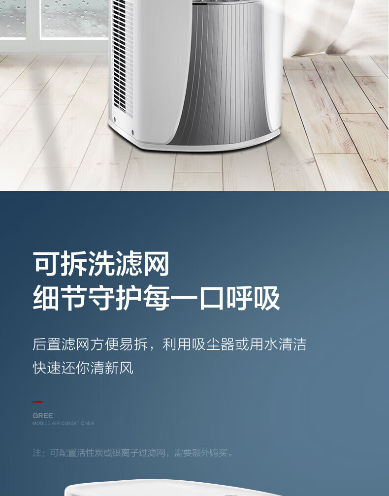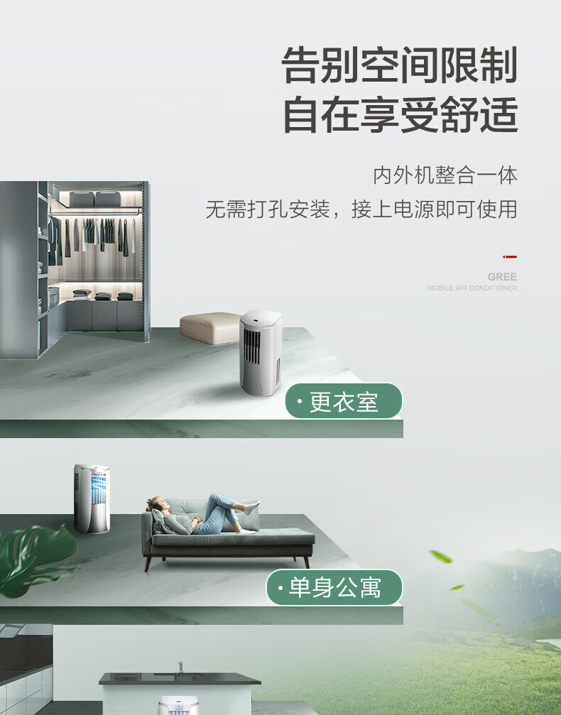格力(GREE)移动空调冷暖1.5匹 无外机空调一体机可移动便携式除湿立式小空调卧室客厅厨房空调 冷暖/单冷 1.5匹 单冷 KY-35NL3a