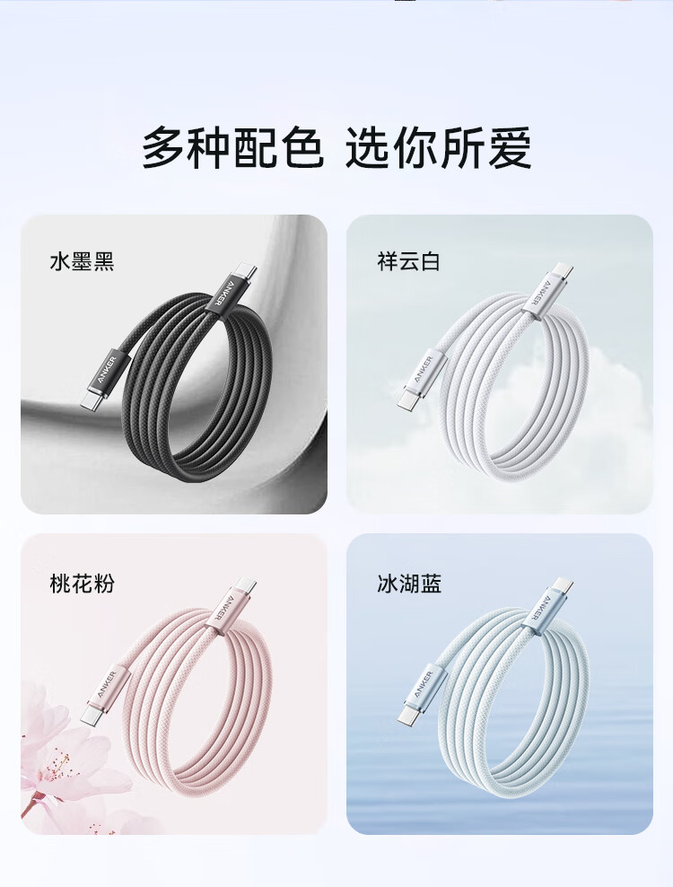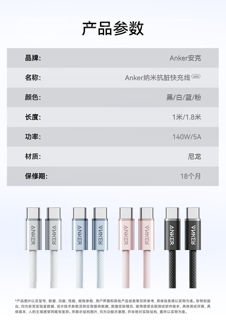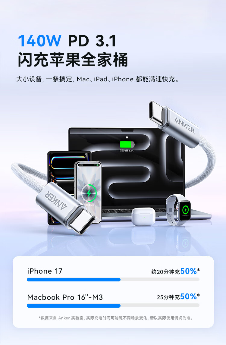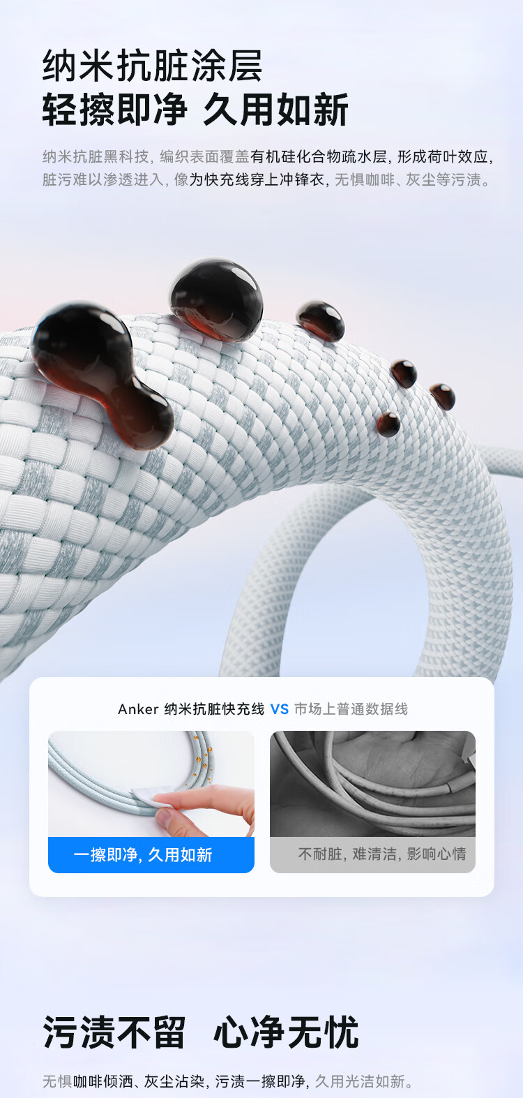 ANKER安克抗脏线【苹果17/iPhone16适用】140W双type-c充电器PD快充USB-IF认证数据线华为vivo平板电脑 【苹果17-15全系】莱茵抗脏认证|防污编织|白色 1.8米