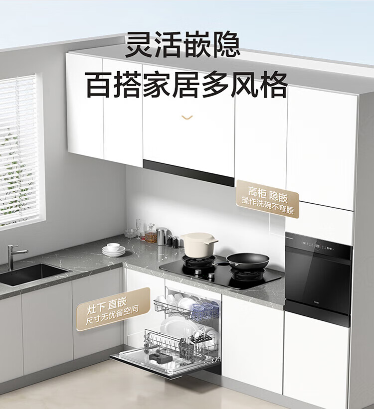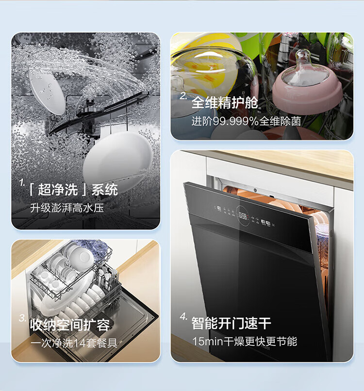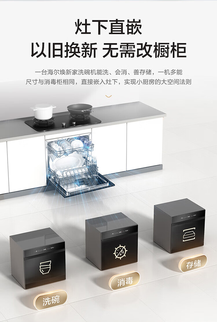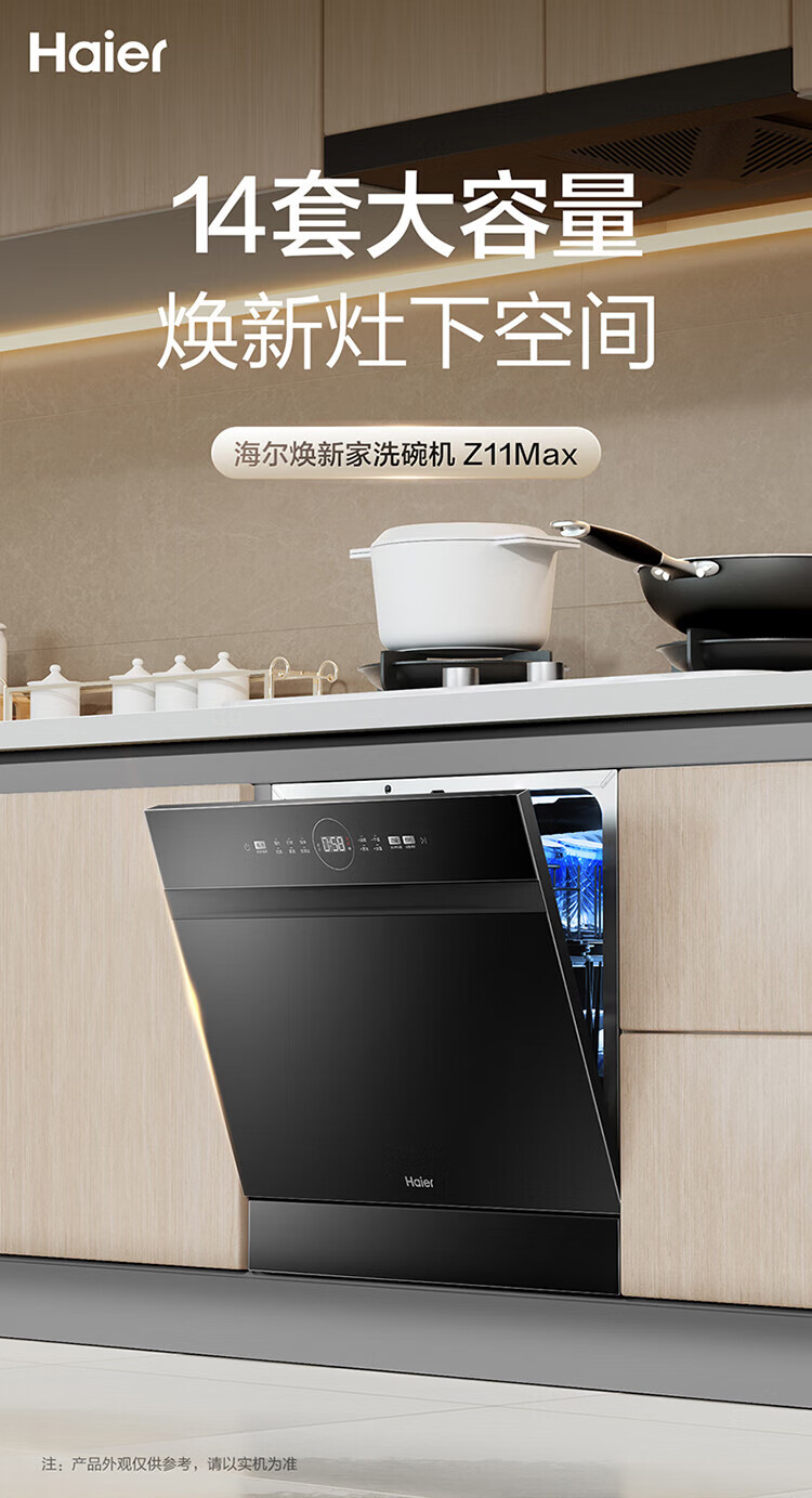 海尔(Haier)【Z11Max】灶下14套嵌入式小型家用洗碗机洗消存一体双80℃消杀一级水效变频智能开门速干7天存储 【新品 灶下双重除菌】EBW1458GH 钢琴黑