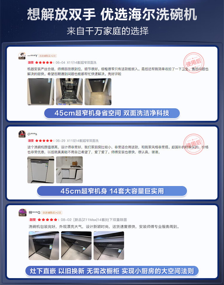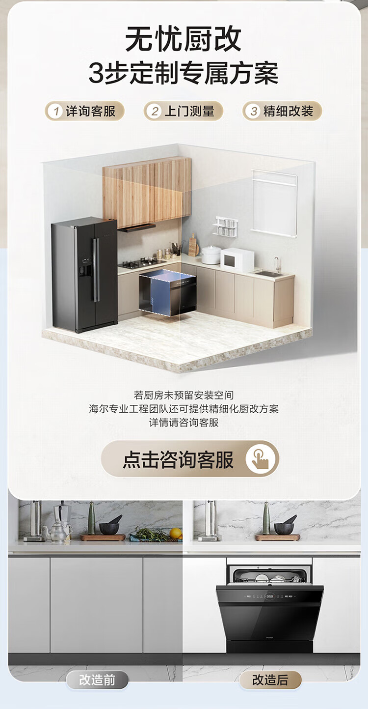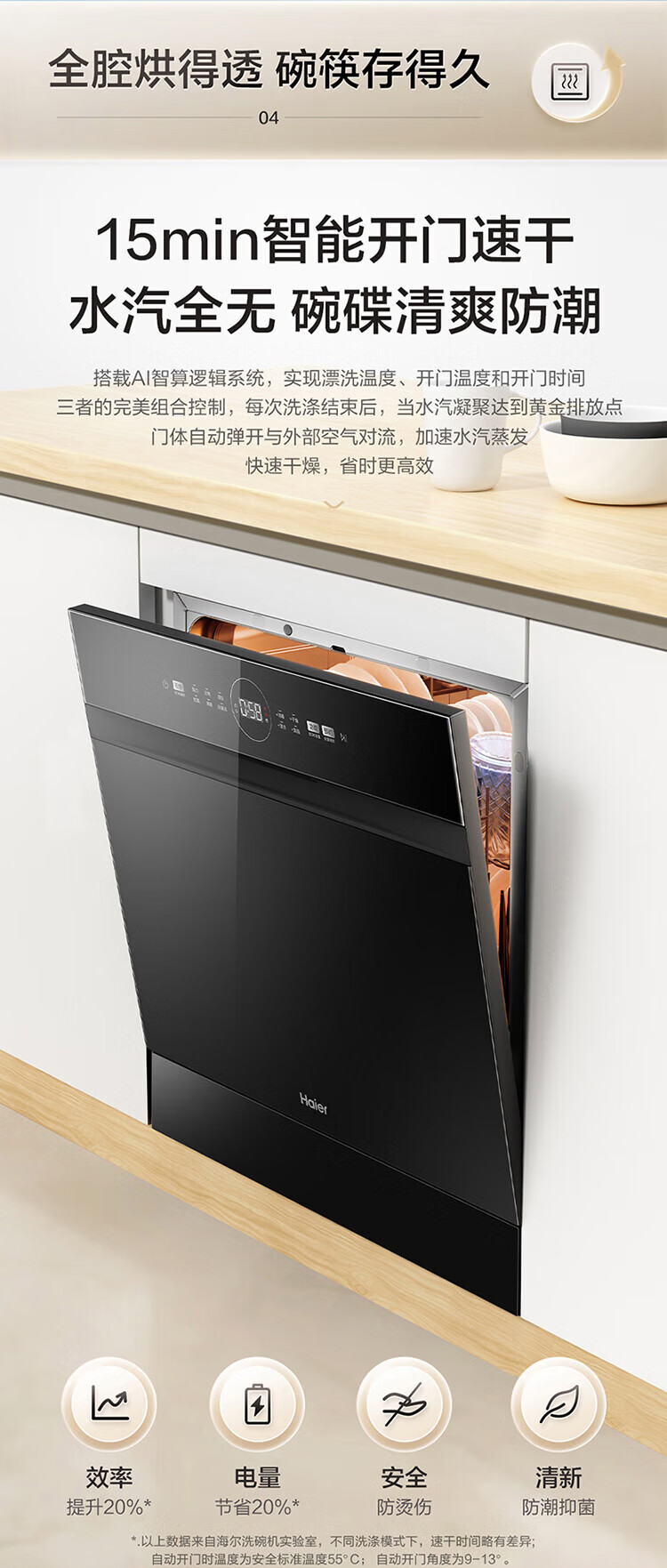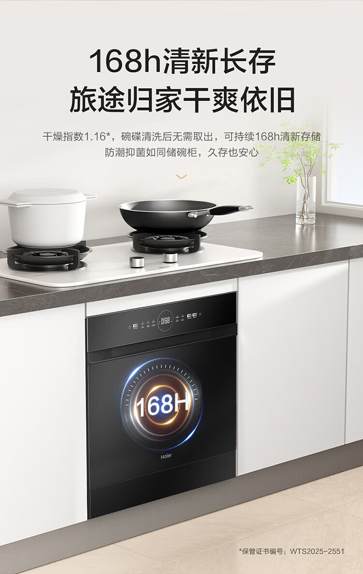 海尔(Haier)【Z11Max】灶下14套嵌入式小型家用洗碗机洗消存一体双80℃消杀一级水效变频智能开门速干7天存储 【新品 灶下双重除菌】EBW1458GH 钢琴黑
