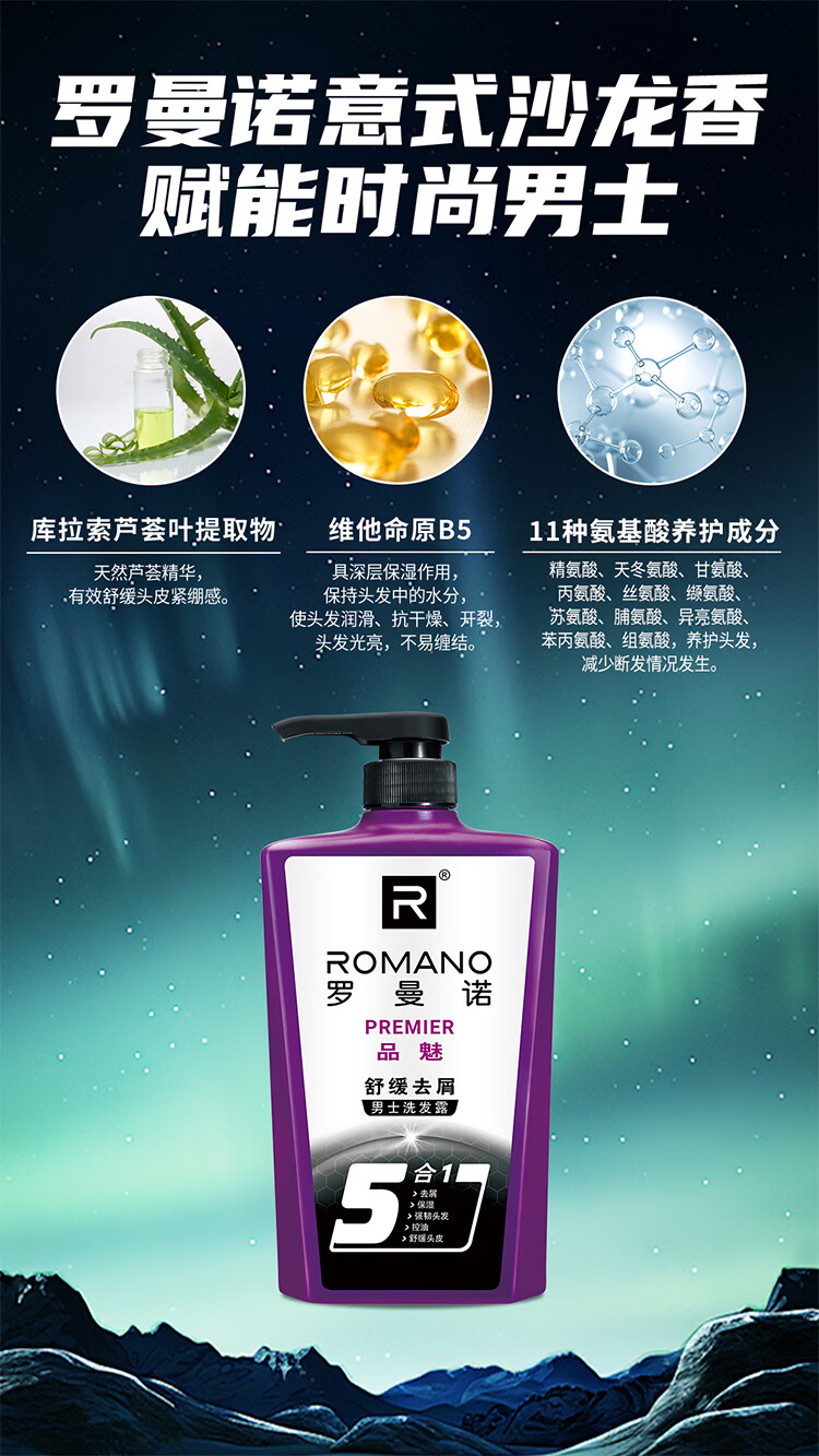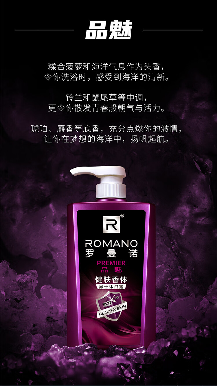 罗曼诺(ROMANO)男士沐浴露洗发水品魅健肤洗护套装 去屑控油清爽留香 送旅行装