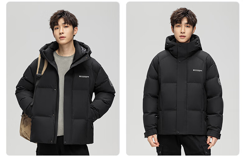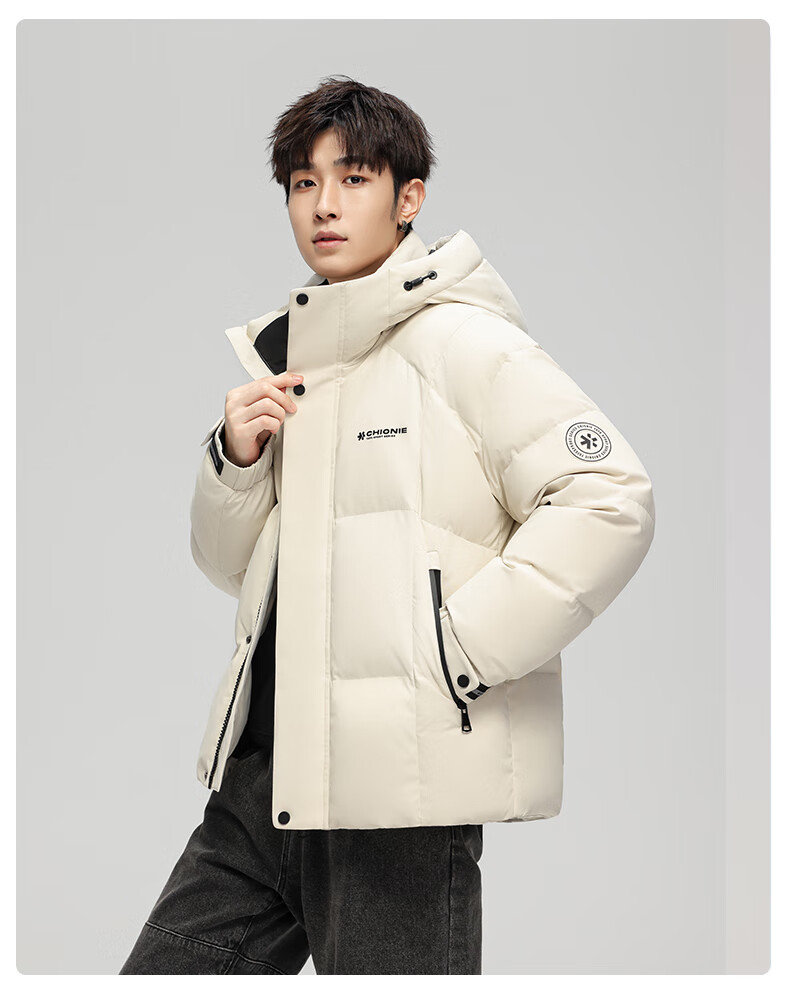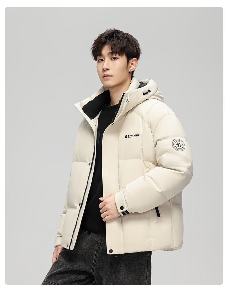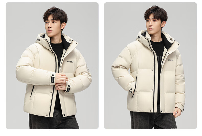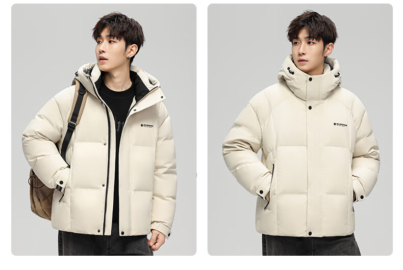 啄木鸟(TUCANO)羽绒服男款外套冬季加厚保暖防寒休闲连帽面包服上衣 灰白 XL