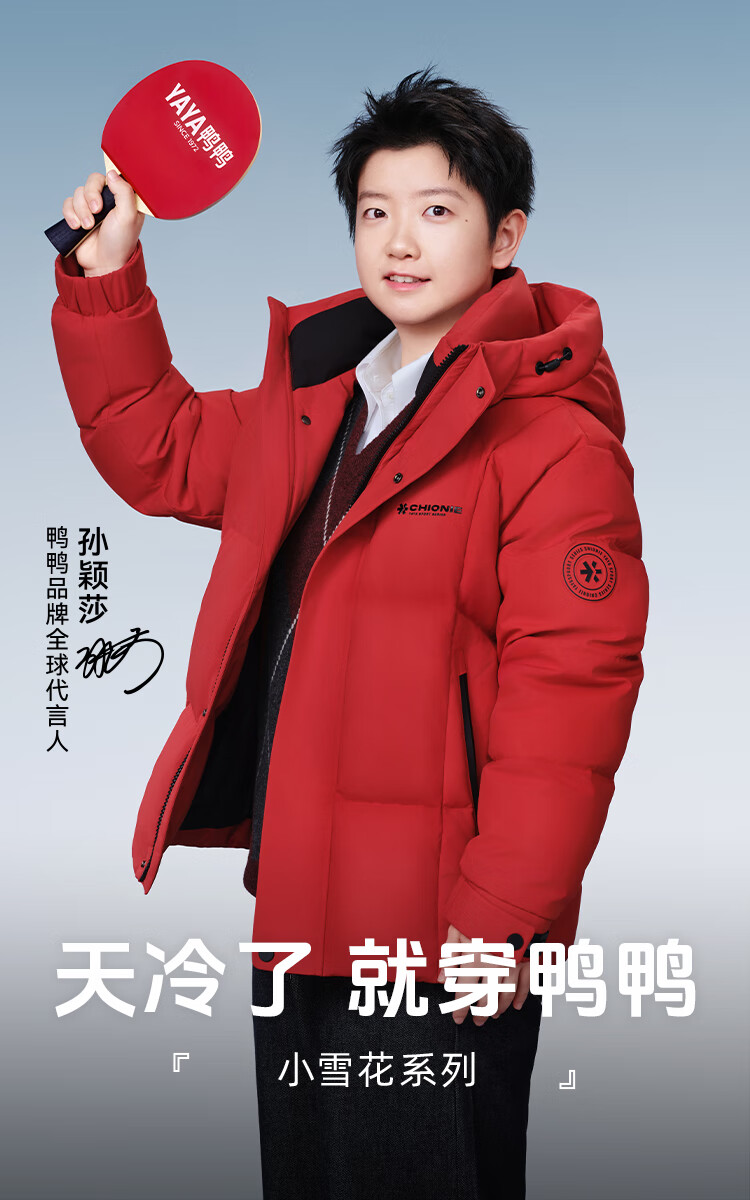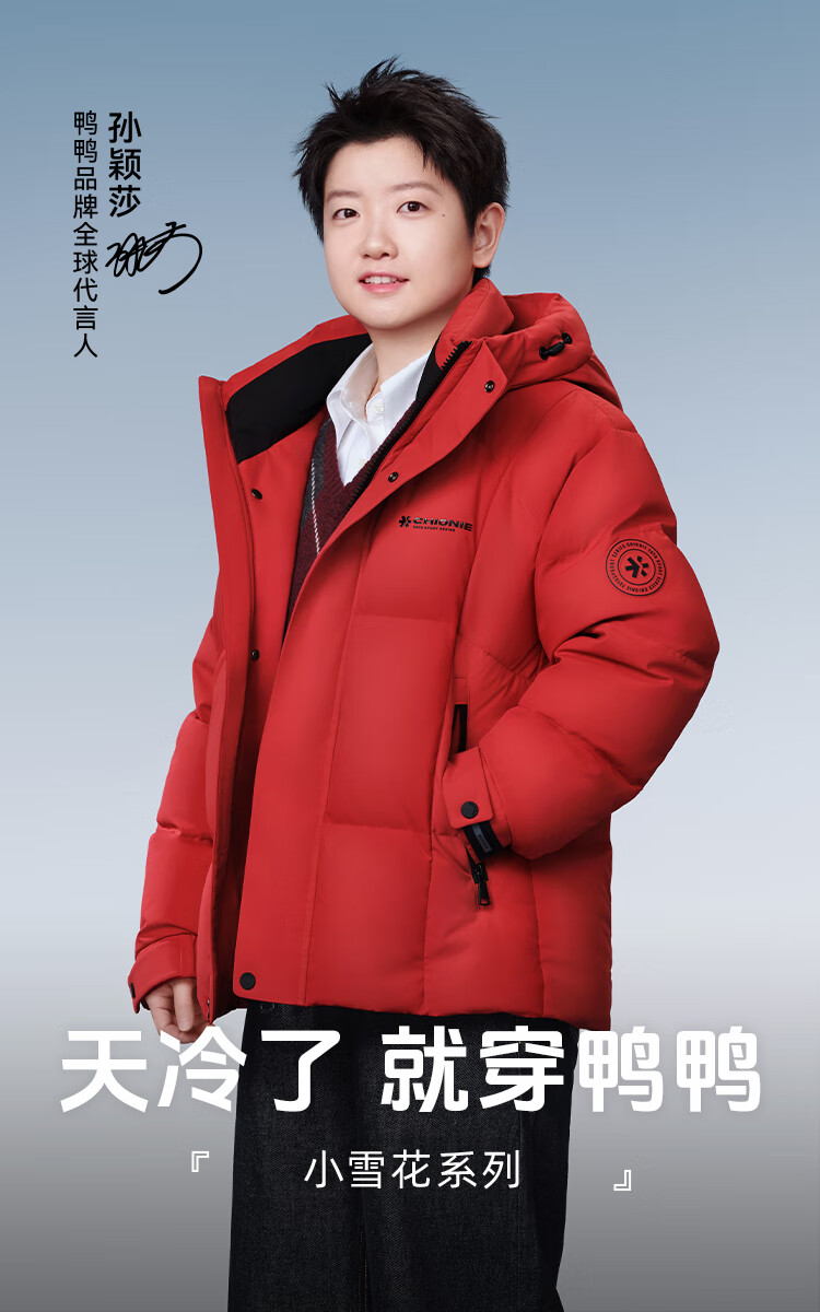 鸭鸭孙颖莎同款2025冬季新款男连帽羽绒服休闲90圣诞保暖男女同款外套