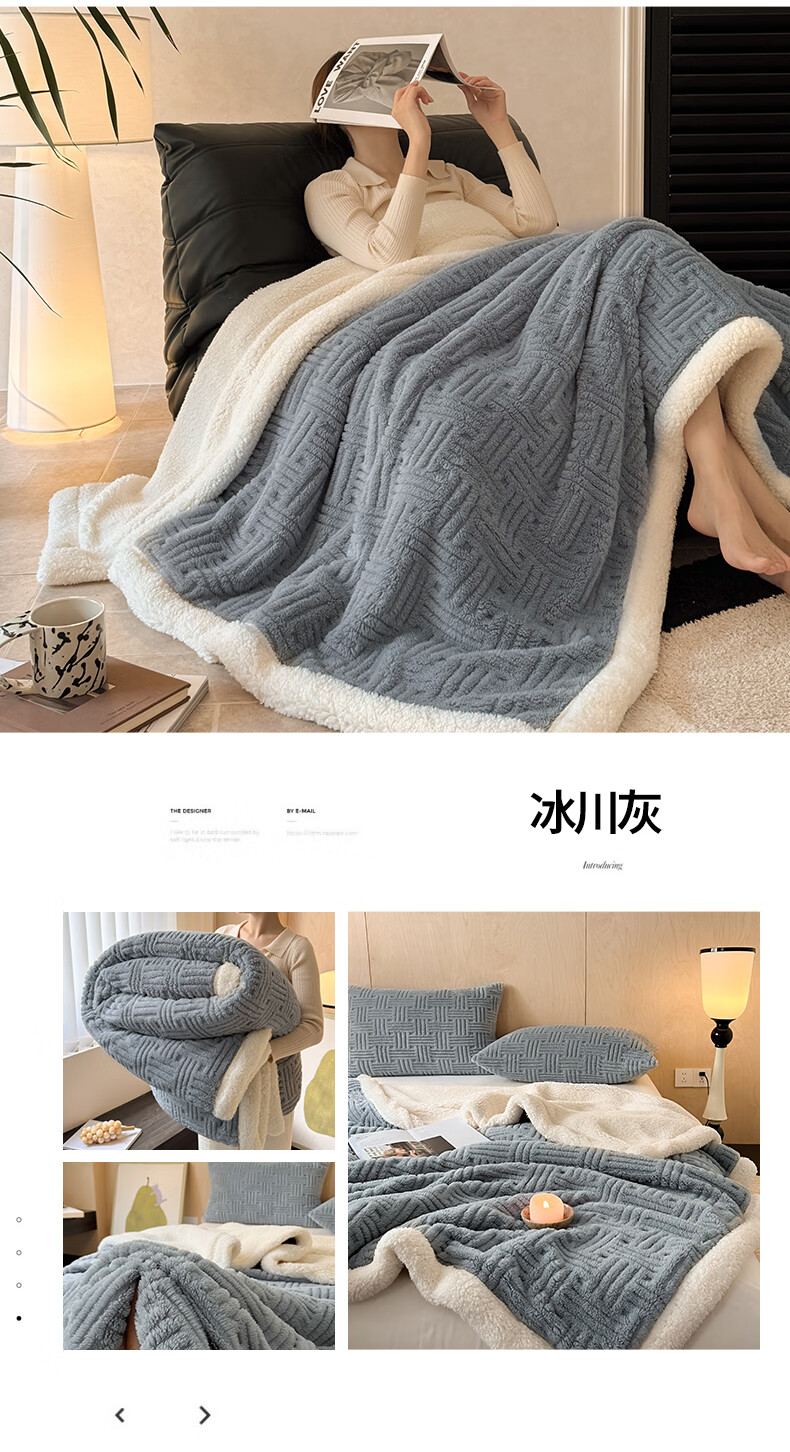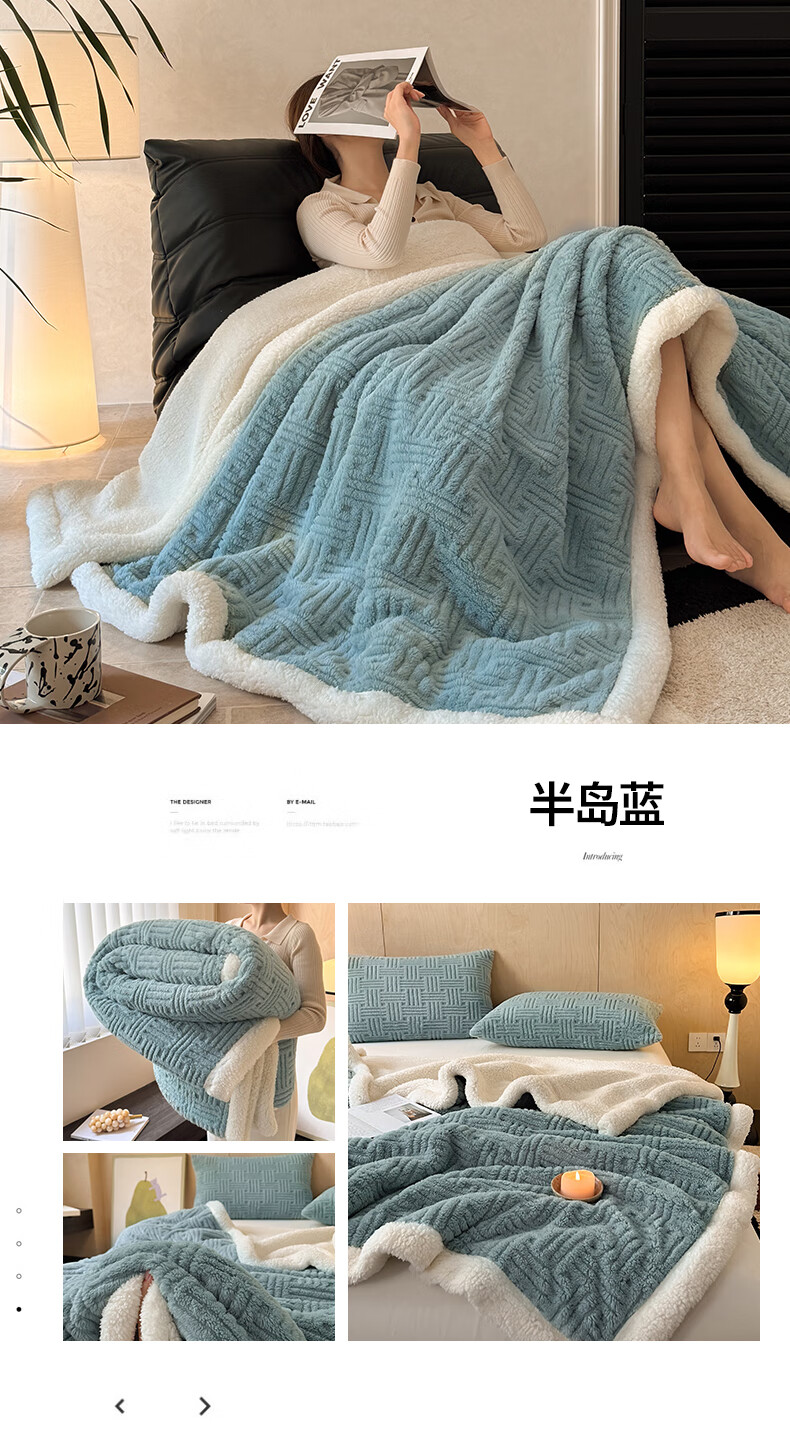 元族2025秋冬新款提花舒棉绒羊羔绒毛毯绒毯子跨境供货 贵族蓝 120cm*200cm